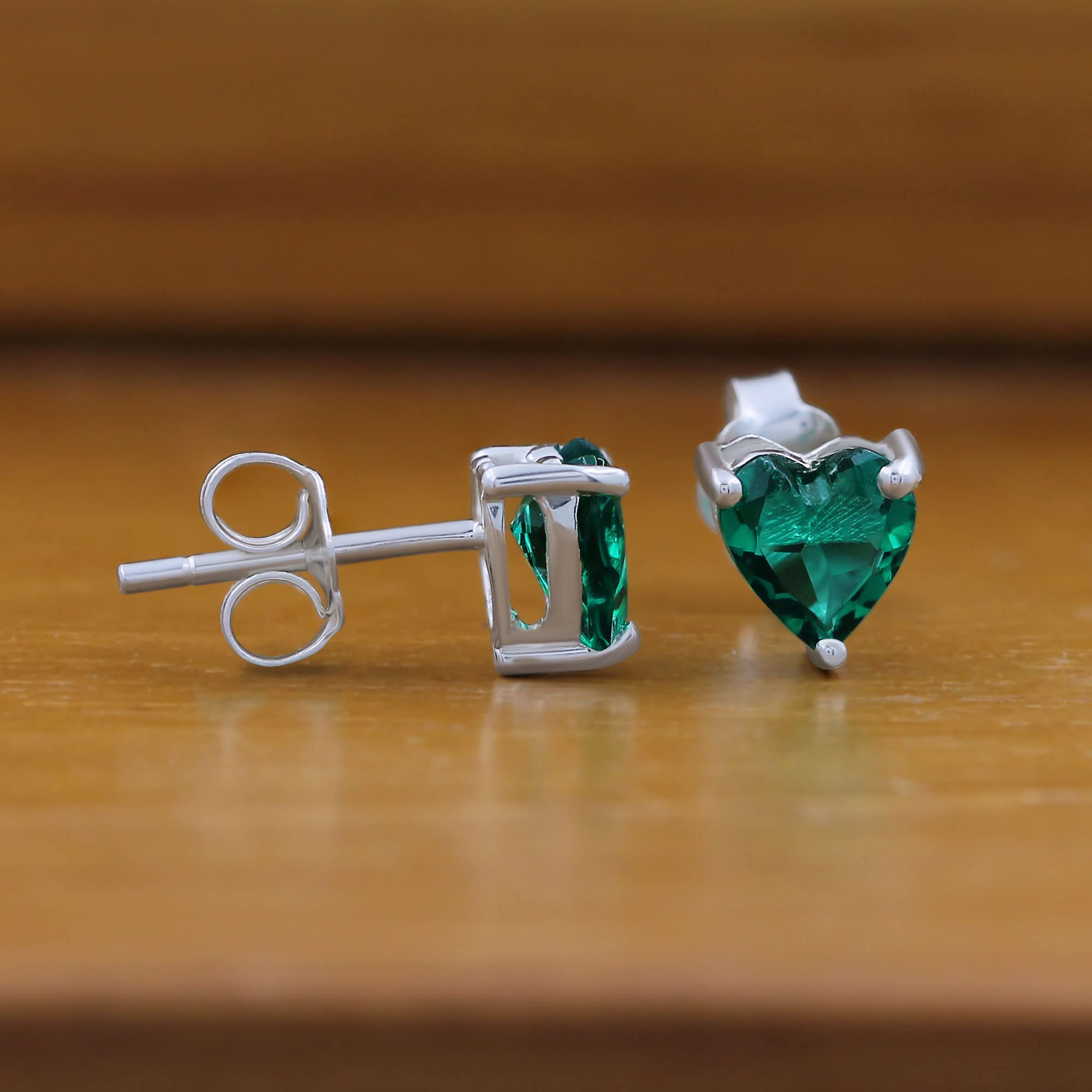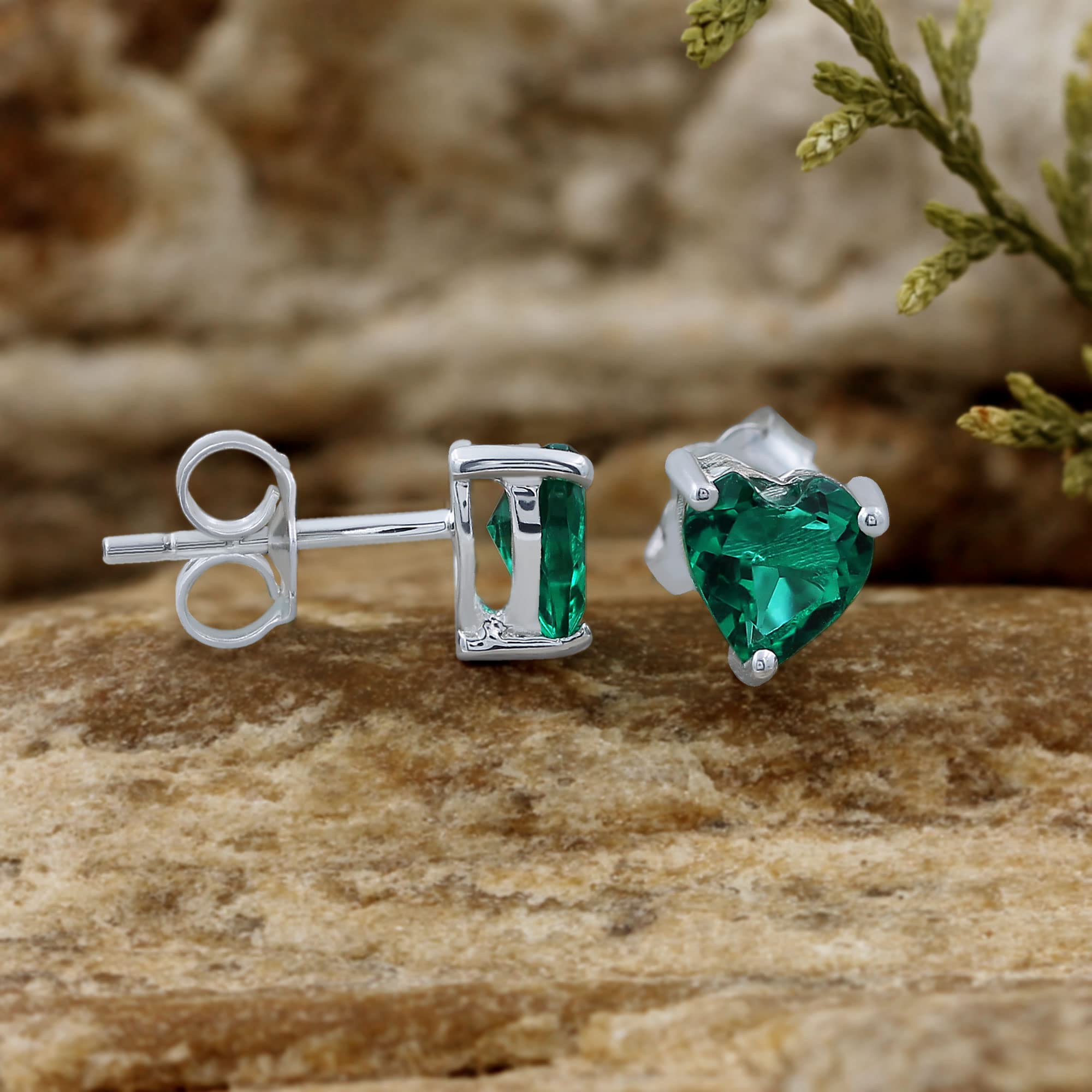 •Featured/Specifications Metal: Solid 925 Sterling Silver (925/1000) | Finish: Rhodium Plated Over Silver | Stone: Simulated Emerald, | Stone Size: 6x6mm Heart
