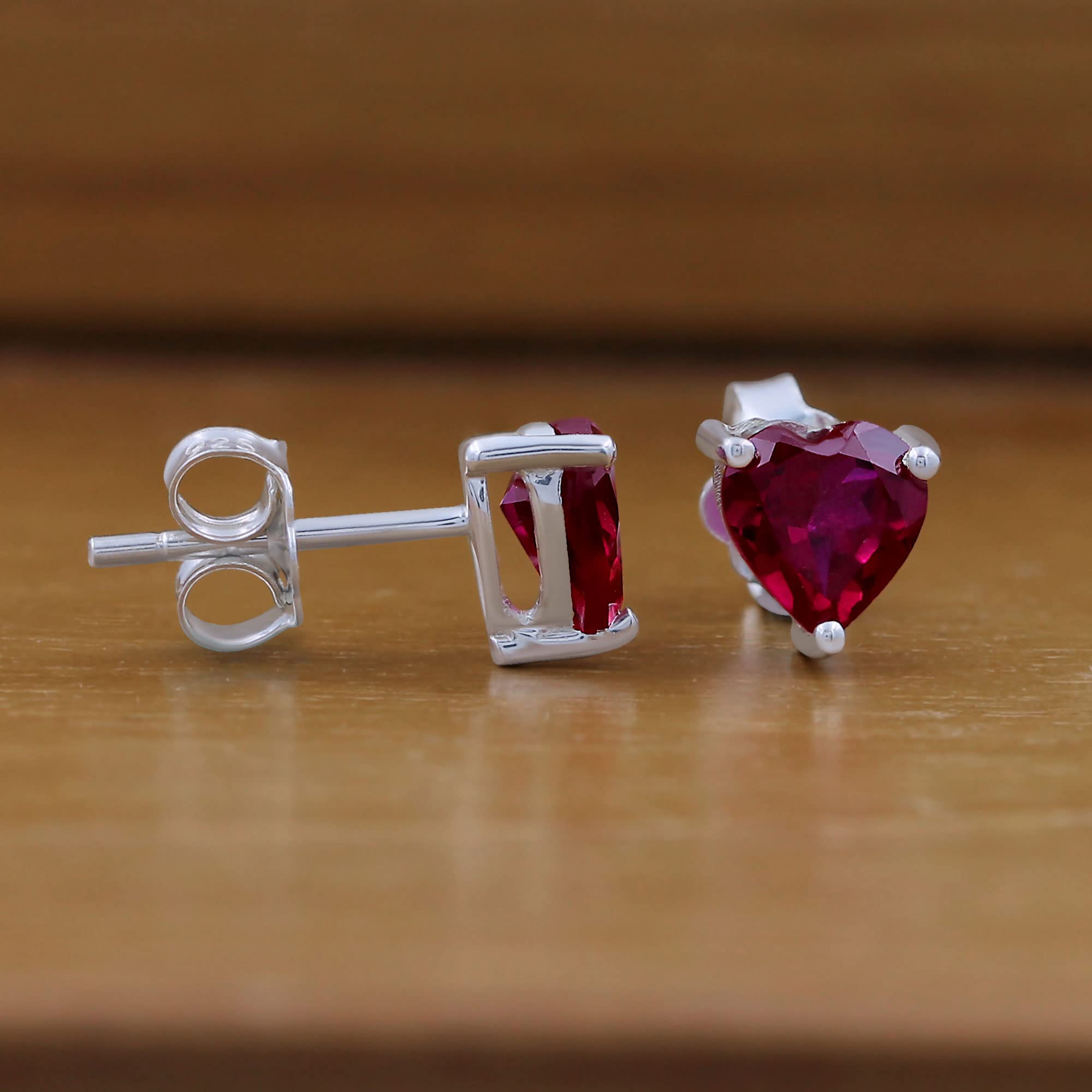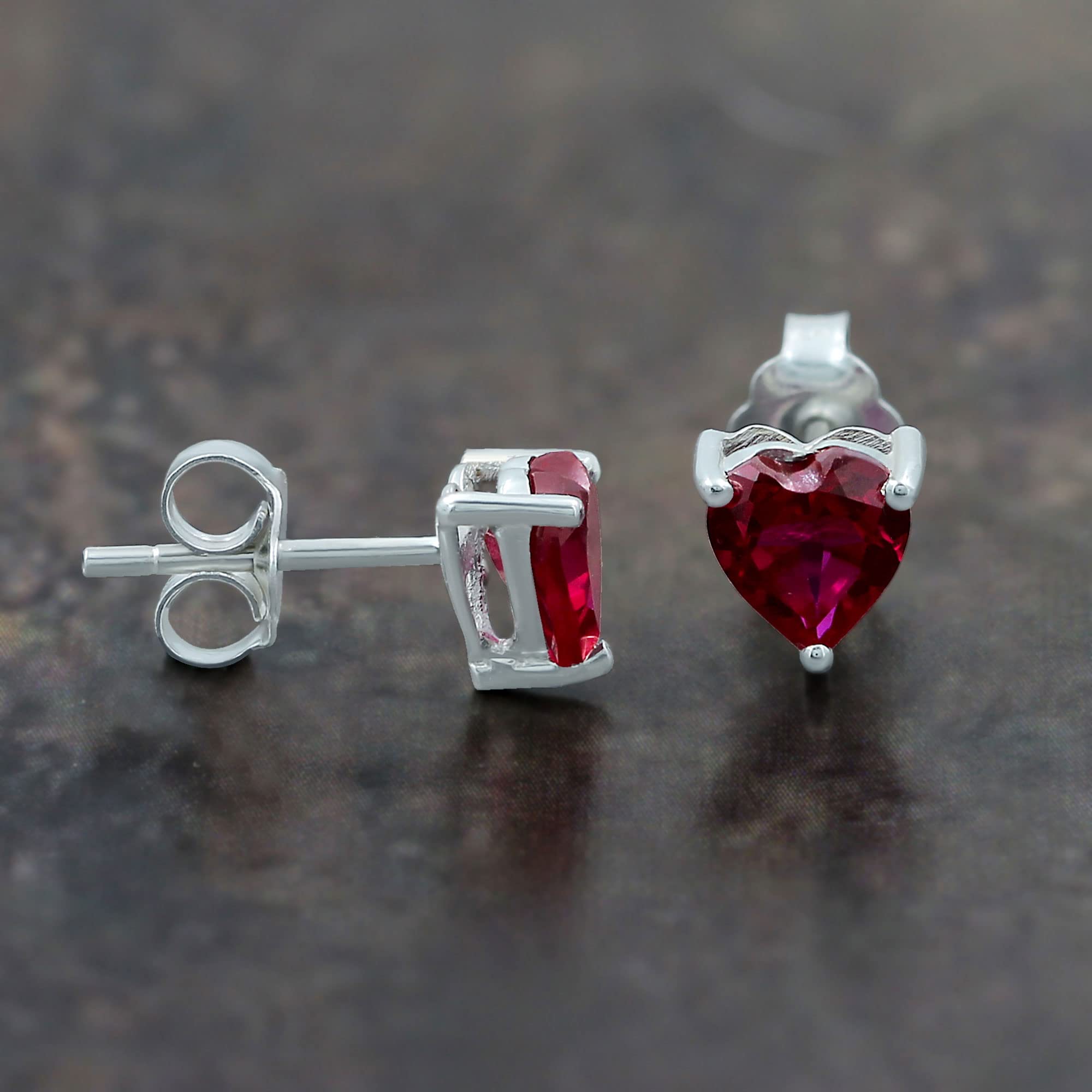 • Featured/Specifications Metal: Solid 925 Sterling Silver (925/1000) | Finish: Rhodium Plated Over Silver | Stone: Simulated Ruby, | Stone Size: 6x6mm Heart