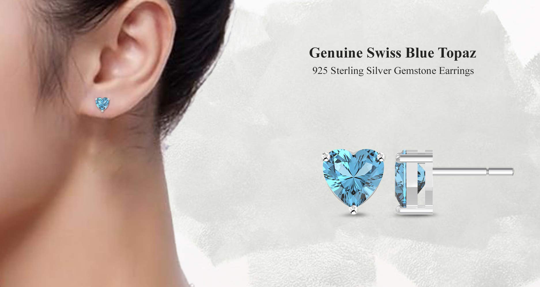• Featured/Specifications Metal: Solid 925 Sterling Silver (925/1000) | Finish: Rhodium Plated Over Silver | Stone: Natural Swiss Blue Topaz, | Stone Size: 6x6mm Heart