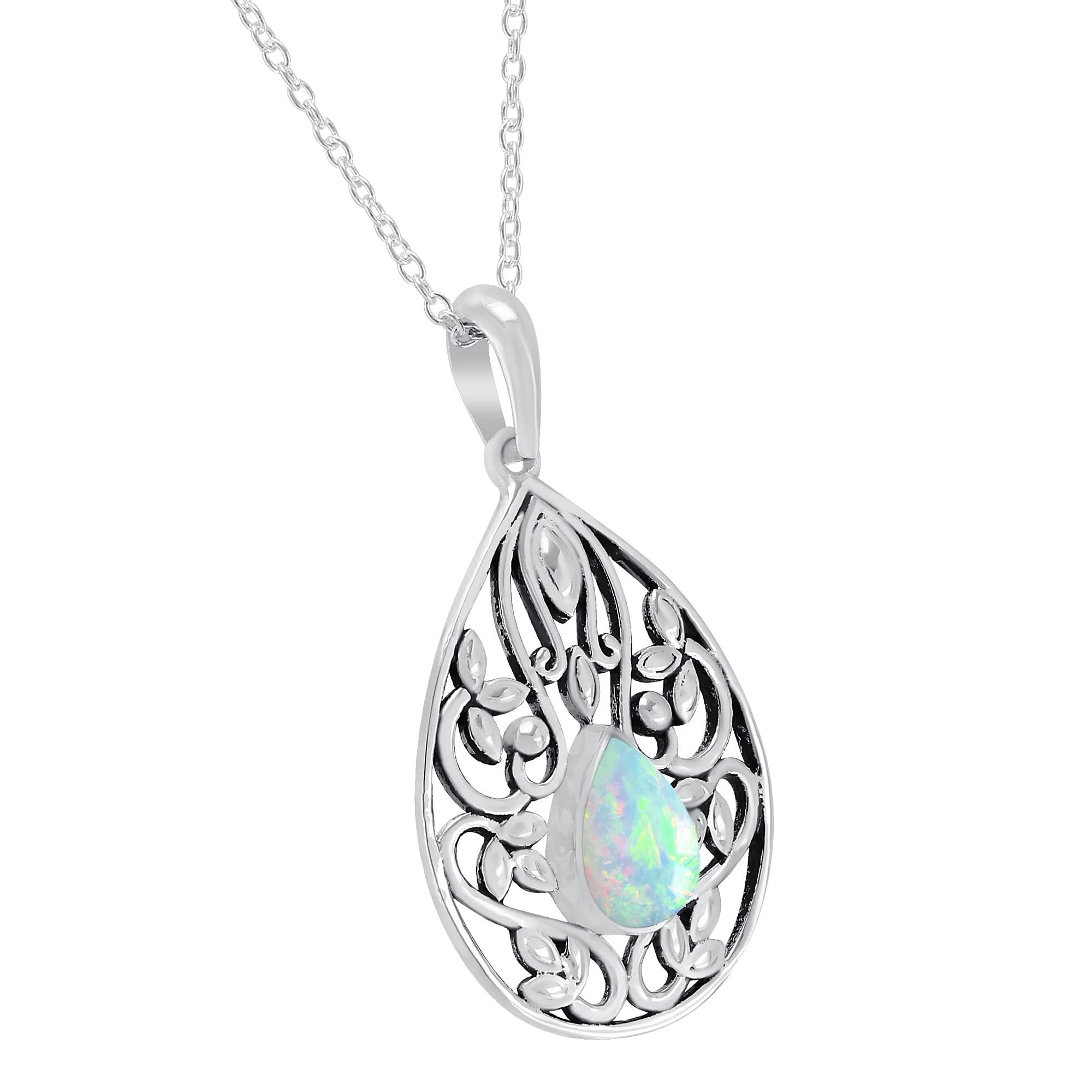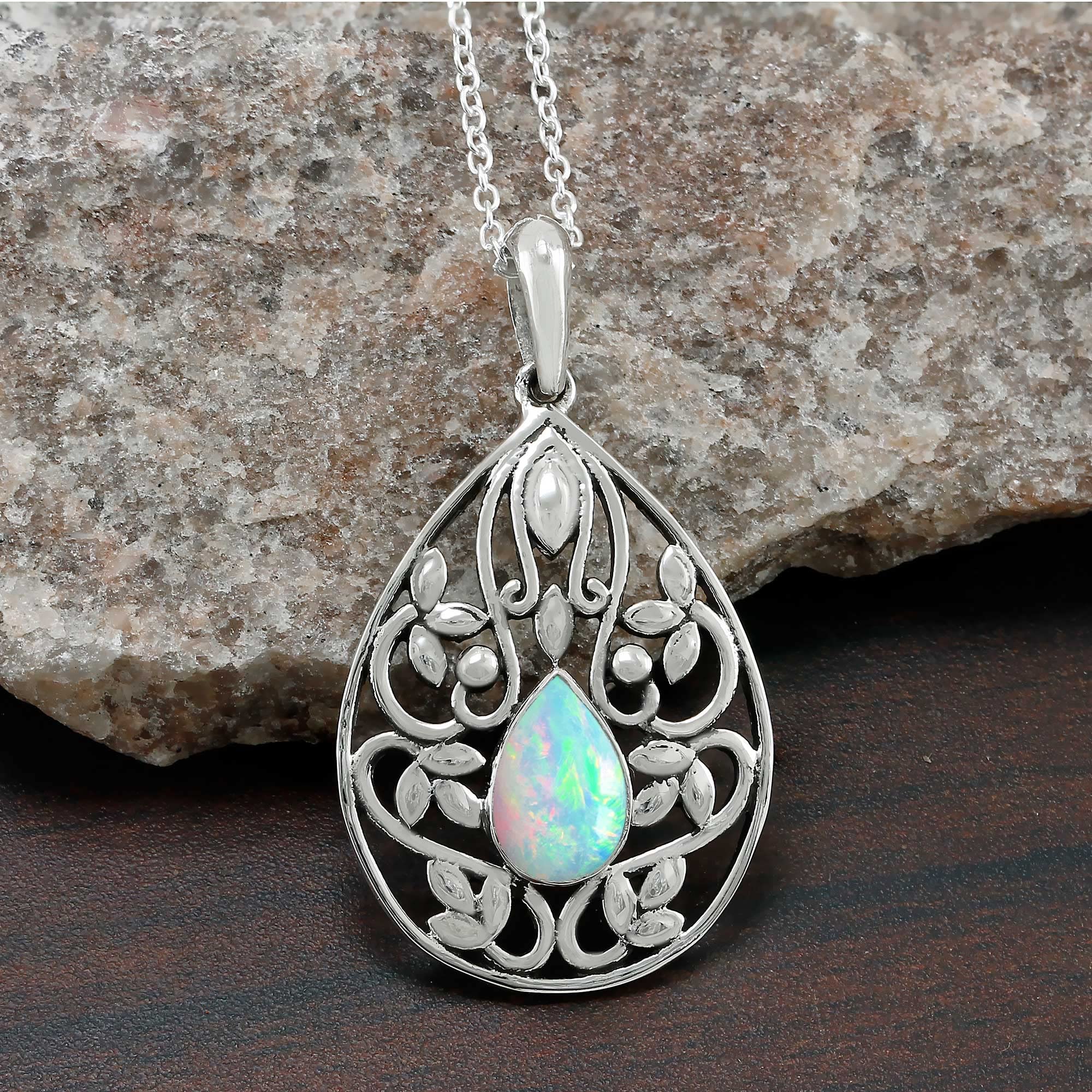 • Featured/Specifications Dimension of Pendant: 36mm x 20mm | Metal: Solid 925 Sterling Silver (925/1000) | Finish: High Polish | Stone: Natural Ethiopian Opal, | Stone Size: 6x9mm Pear