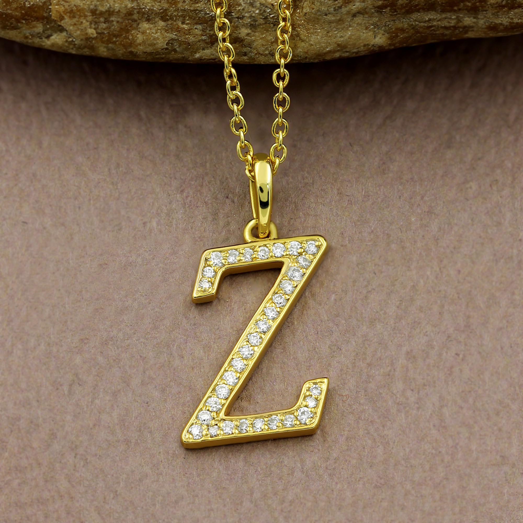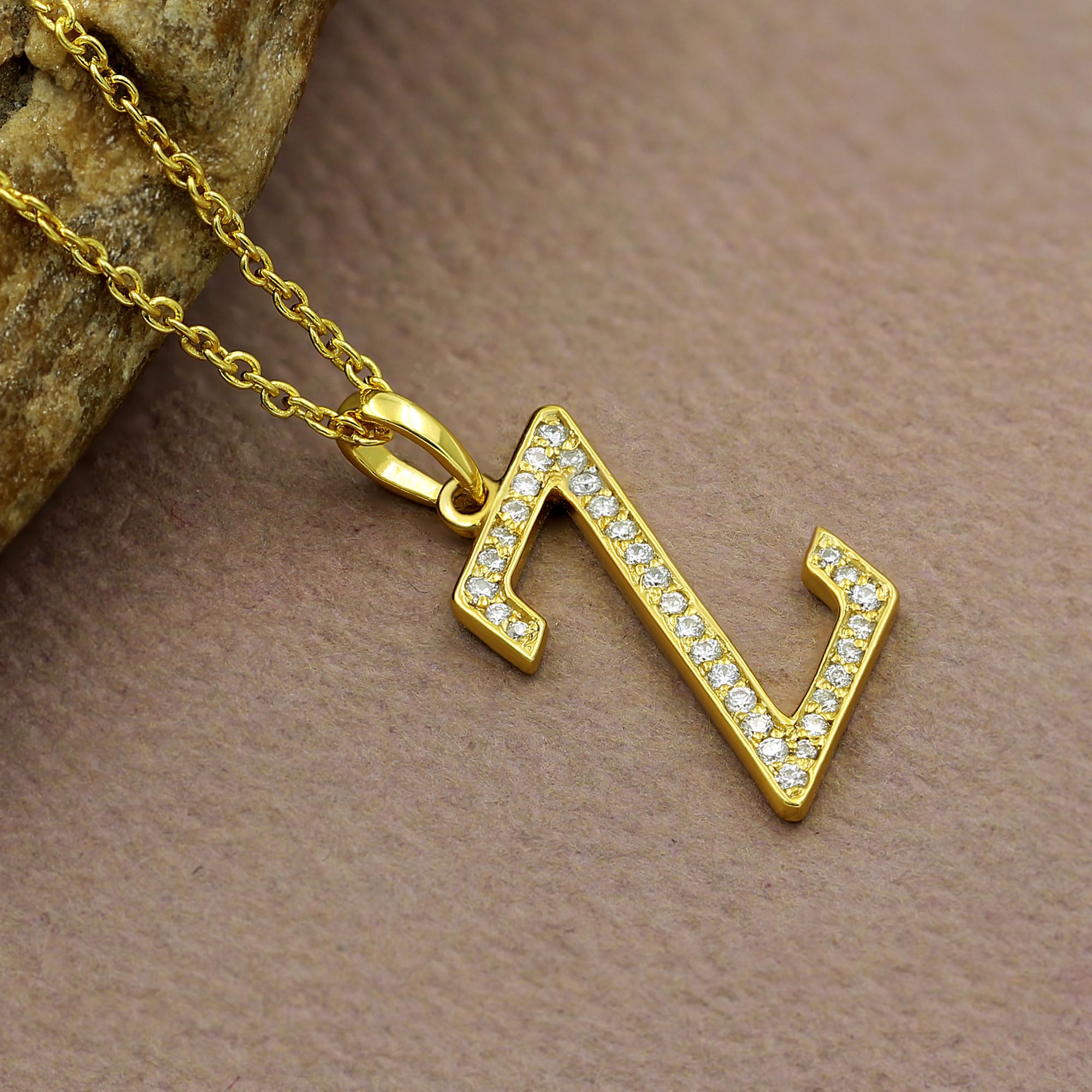 Initial Letter Necklace For Women: Classic Gold Plated Initial Letter Pendant, Set With Sparkling Moissanite Diamonds. Wearing A Initial Letter Necklace Is A Classic Way To Make A Statement! With Memories Of Happiness And Laughter, Showing Off Your First Name, Your Last Name, Or Even Alma Mater!