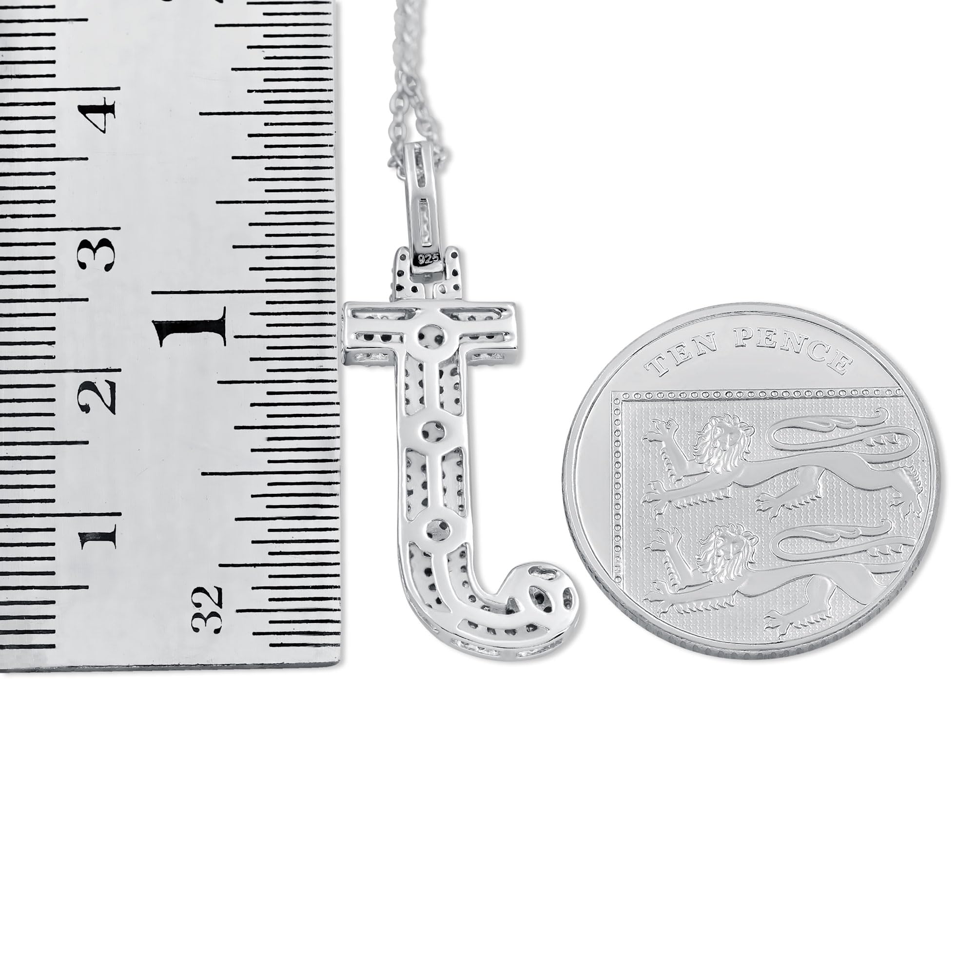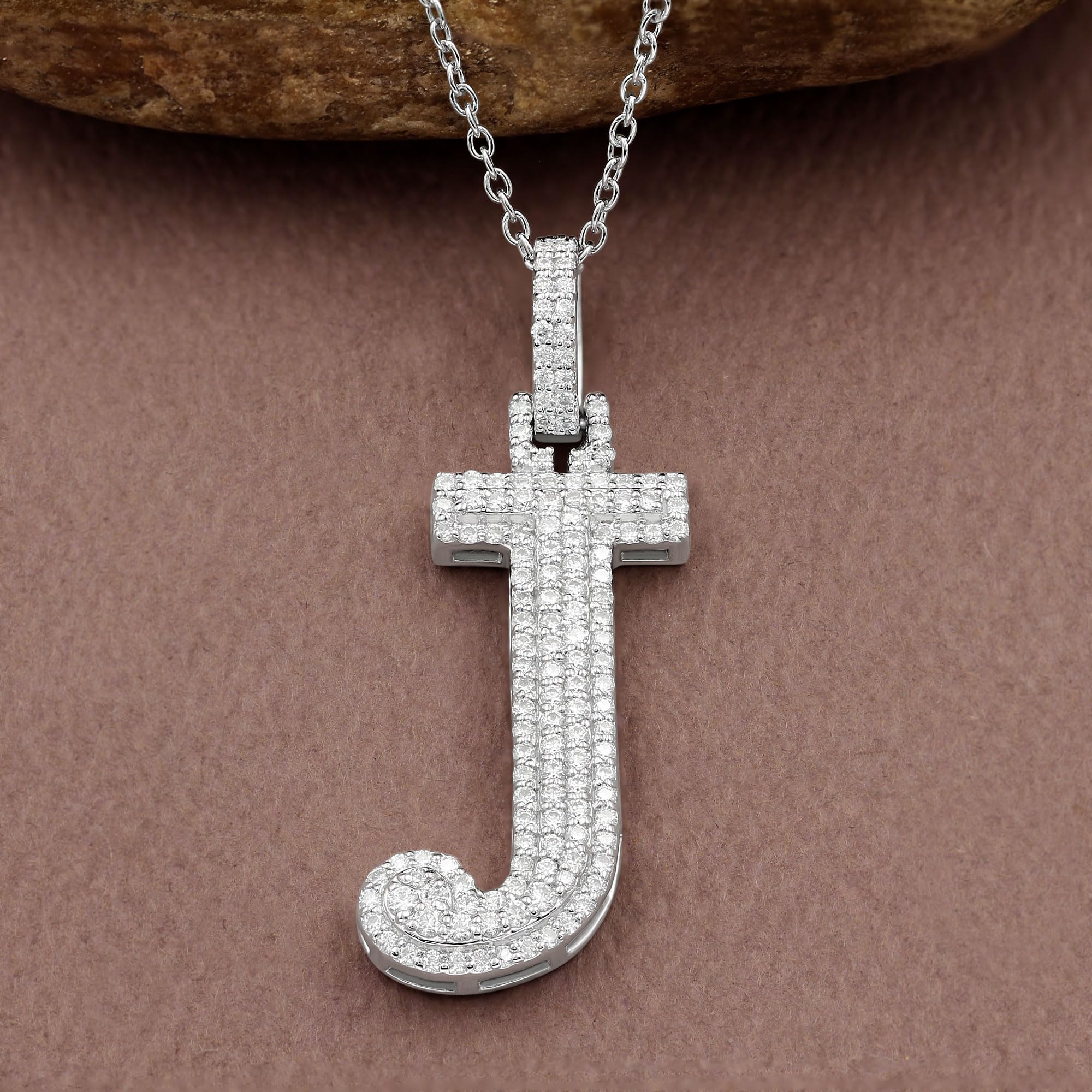 Specification: The Letter J Necklace Is Made Of D-E Color Moissanite Diamonds. All The Metal Material Is Sterling Silver Plating With Rhodium. The Size Of Chain: 18" (45Cm).
