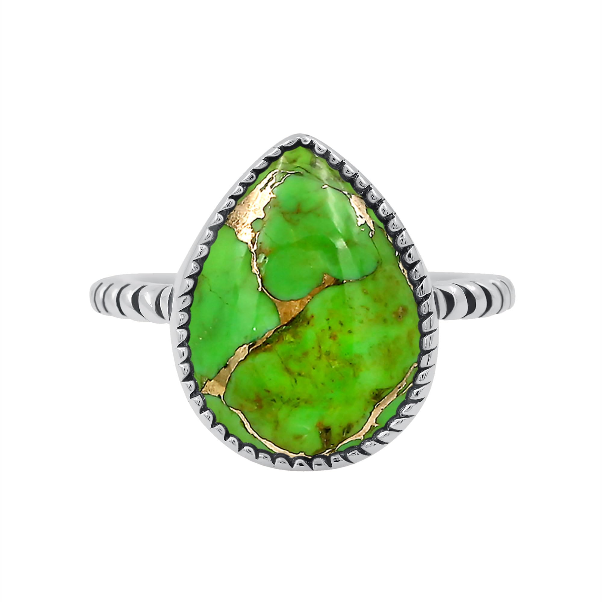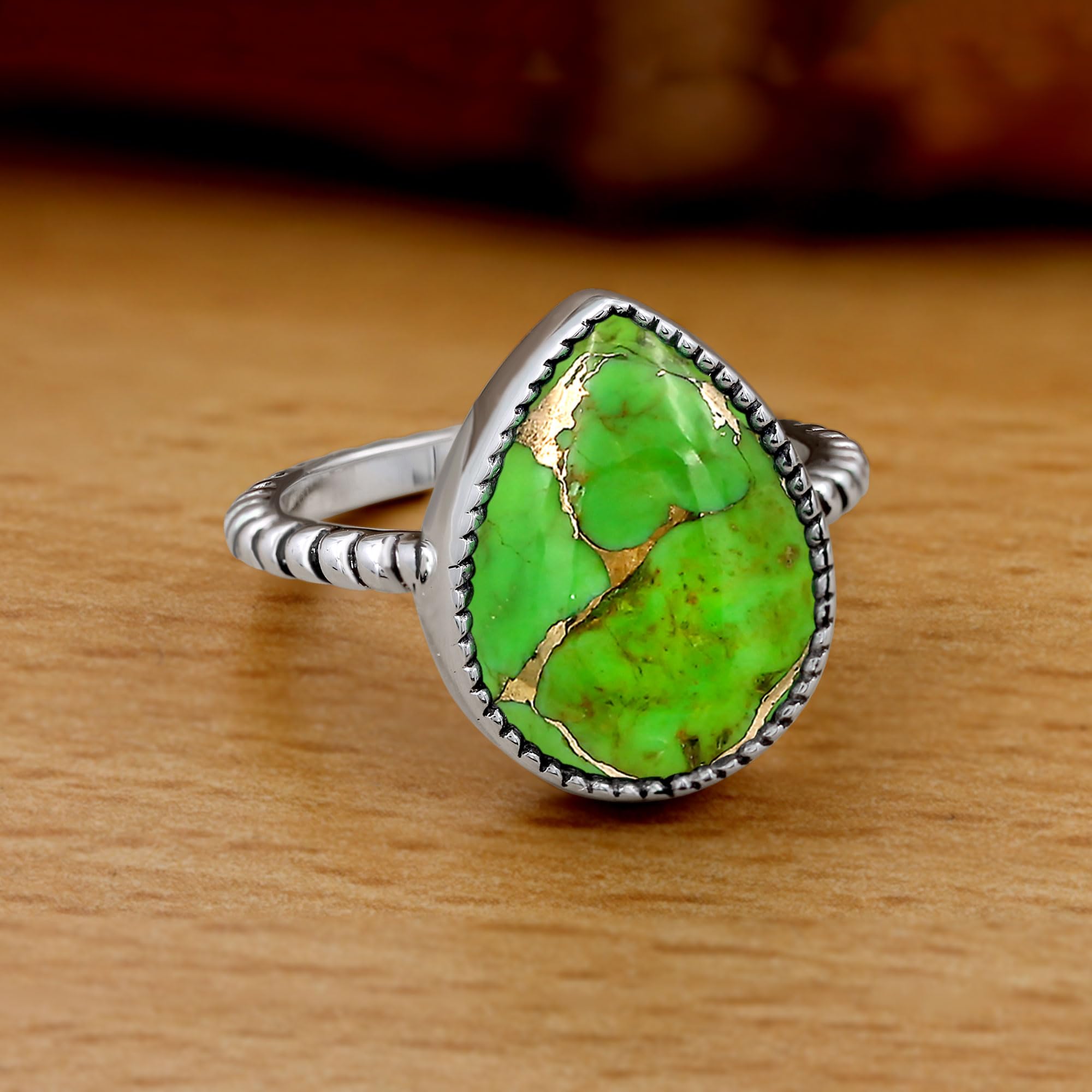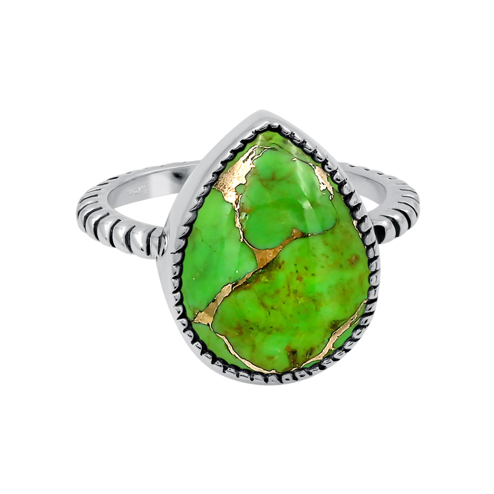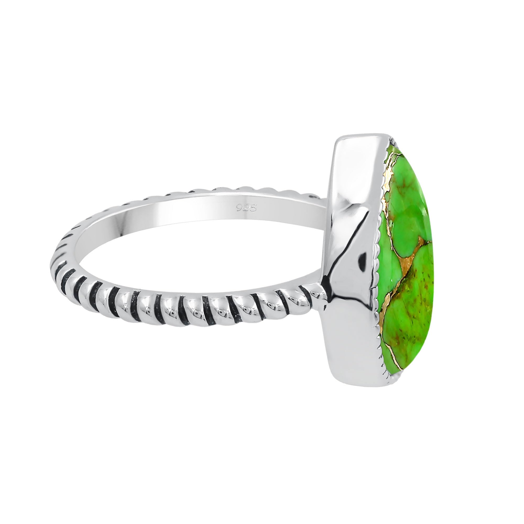 • Featured/Specifications Metal: Solid 925 Sterling Silver (925/1000) | Finish: High Polish | Stone: Green Copper Turquoise, | Stone Size: 12x16 mm Pear