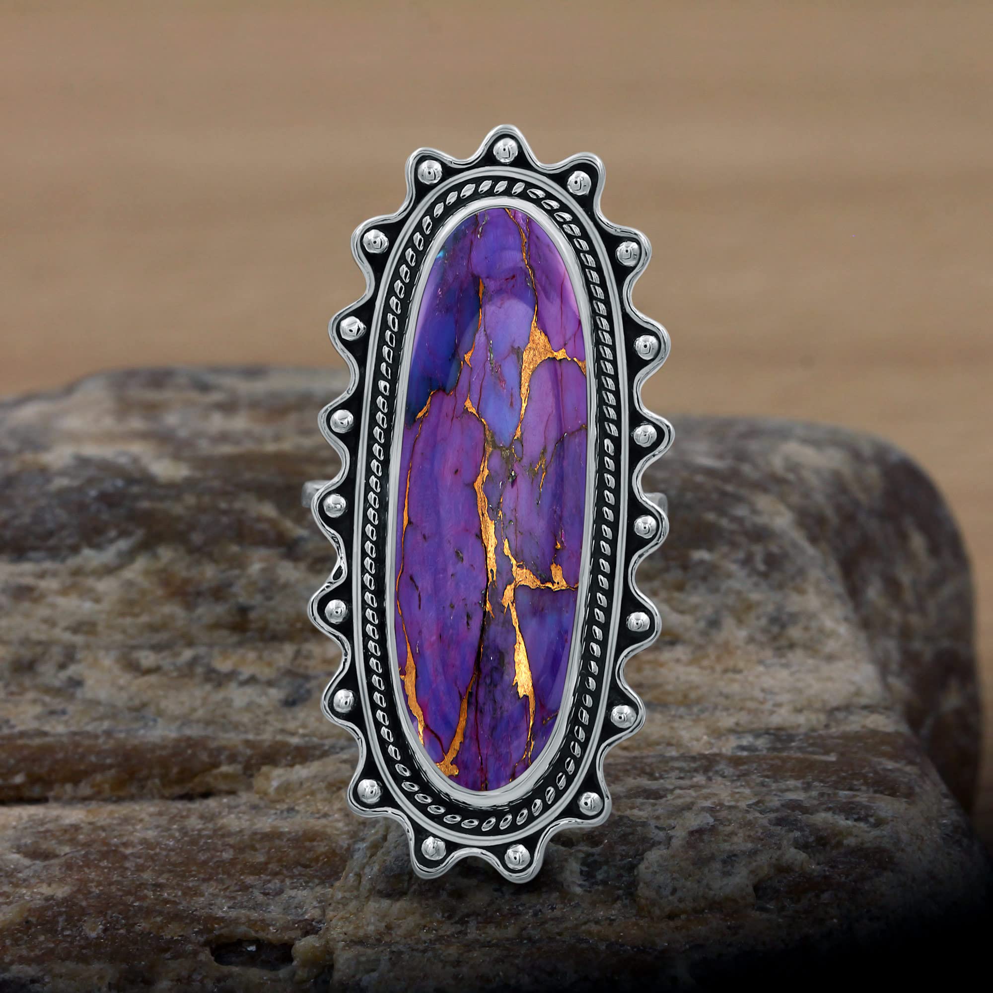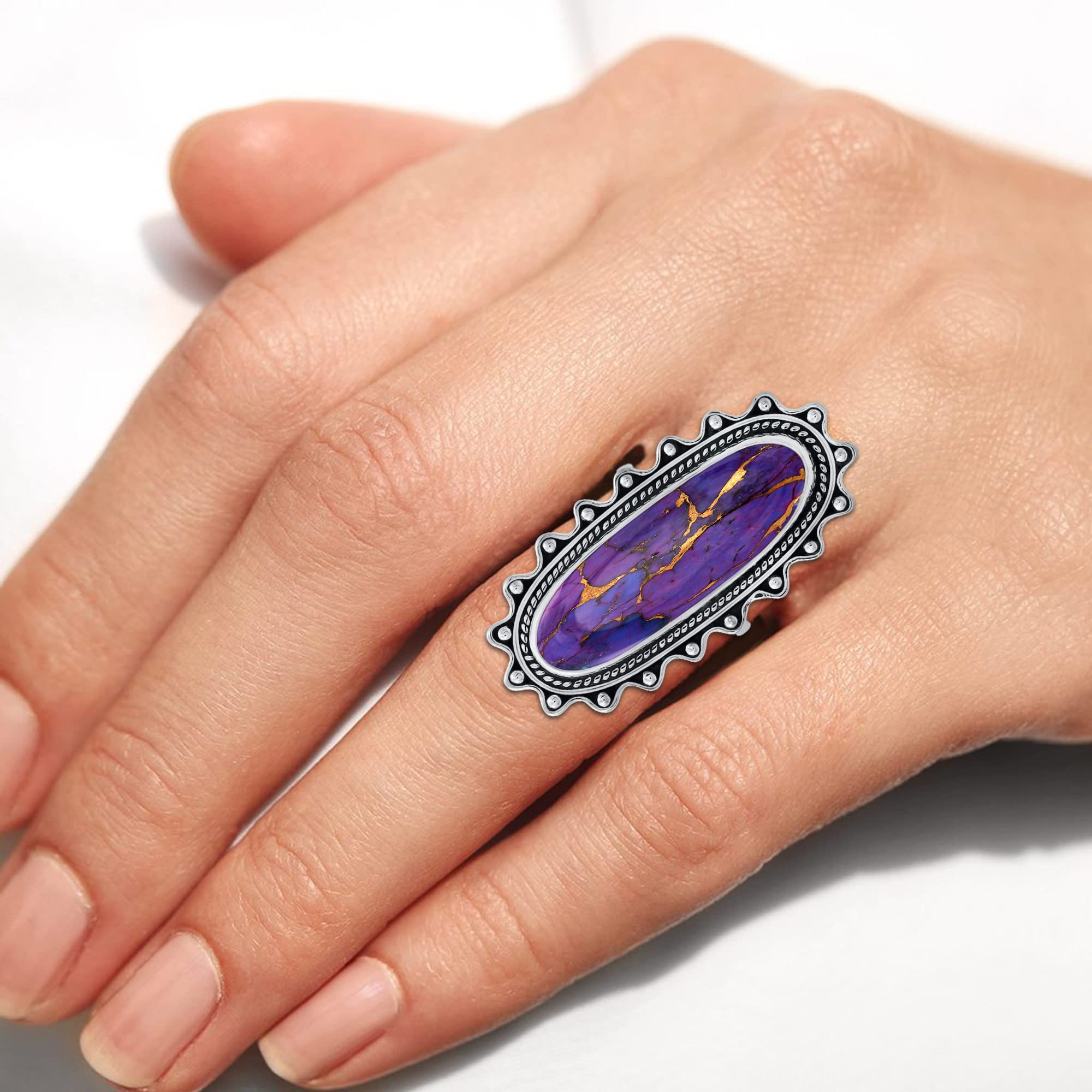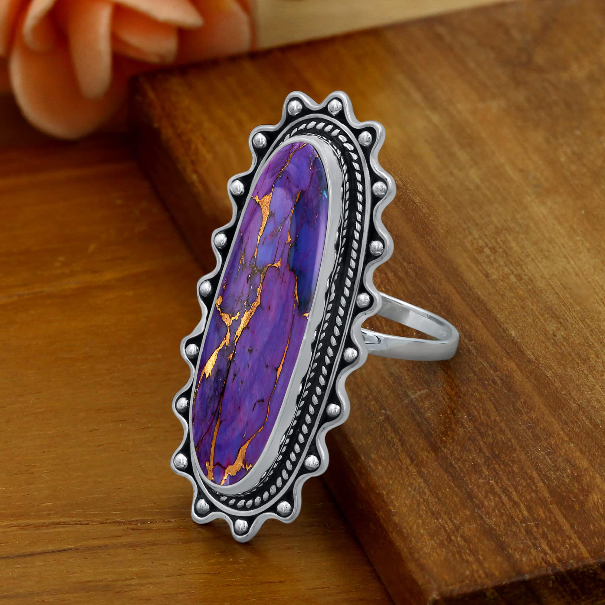• Featured/Specifications Dimensions of Ring: Approx 38mm X 16mm | Metal: Solid 925 Sterling Silver (925/1000) | Finish: High Polish | Stone: Natural Purple Copper Turquoise, | Stone Size: 10X30mm Oval