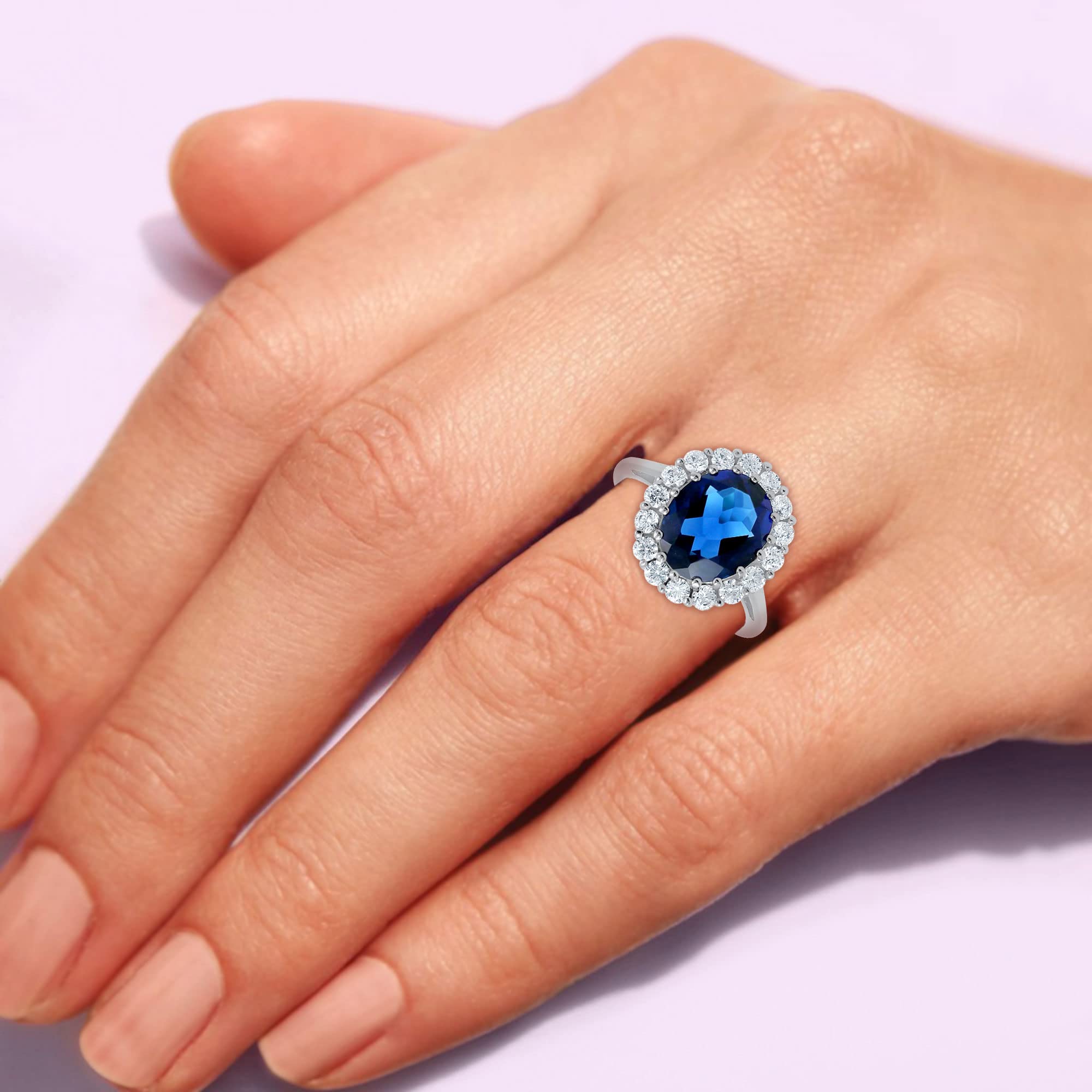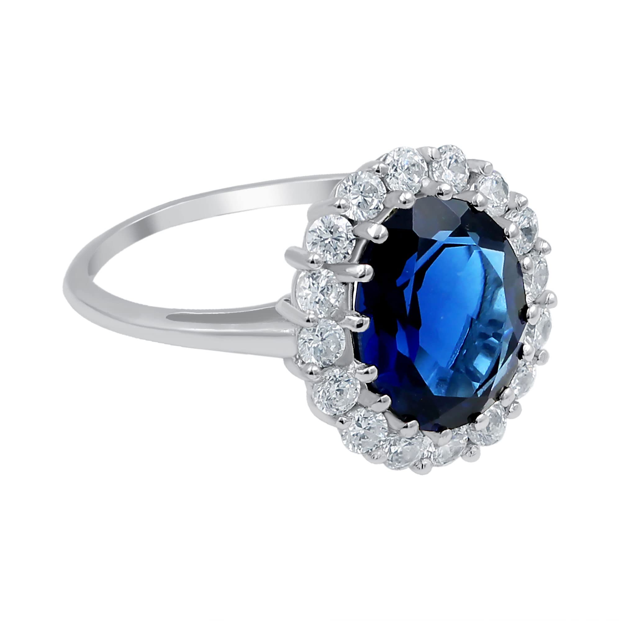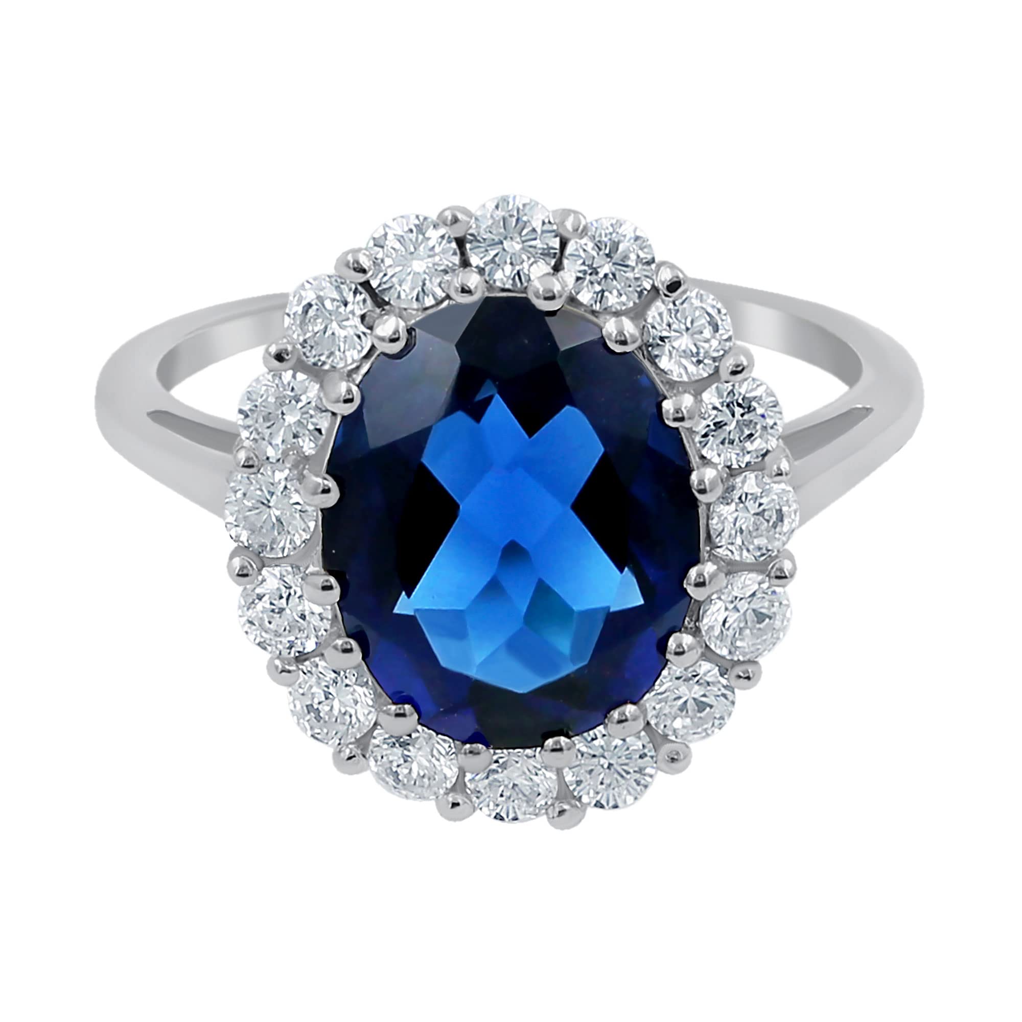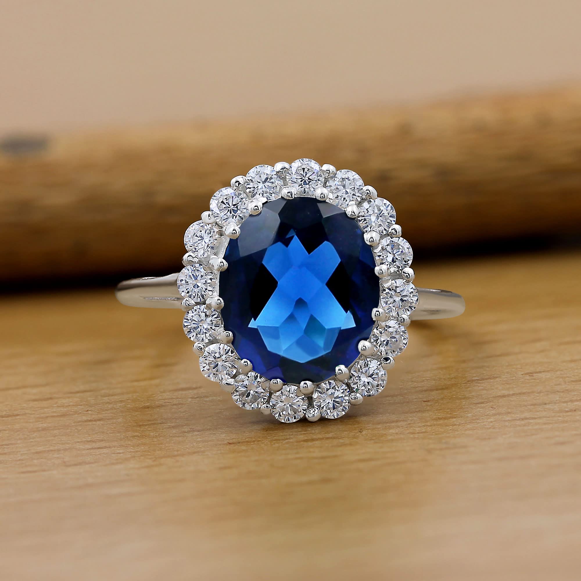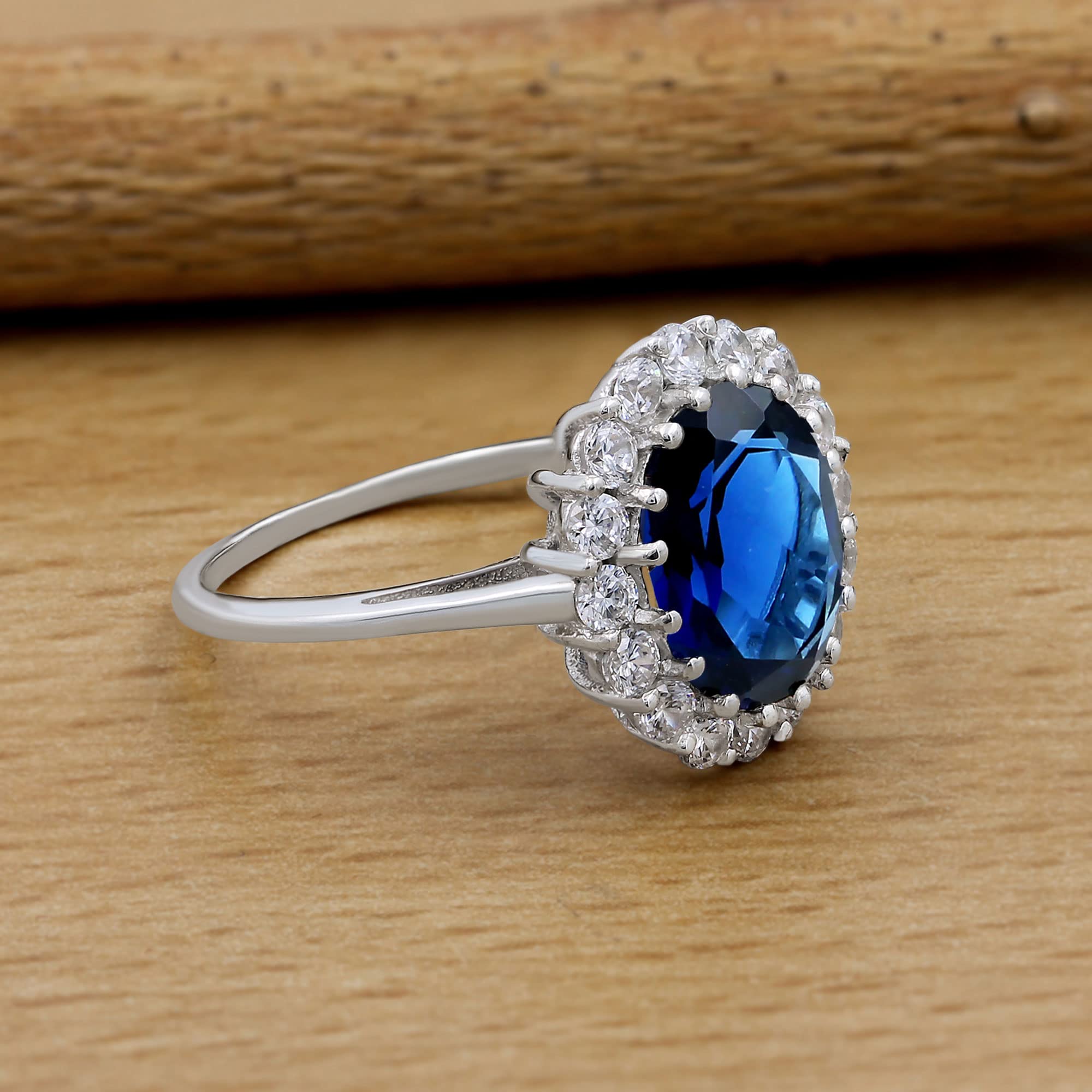 • Featured/Specifications Metal: Solid 925 Sterling Silver (925/1000) | Finish: High Polish | Stone: Simulated Sapphire, CZ | Stone Size: 10x12mm Oval