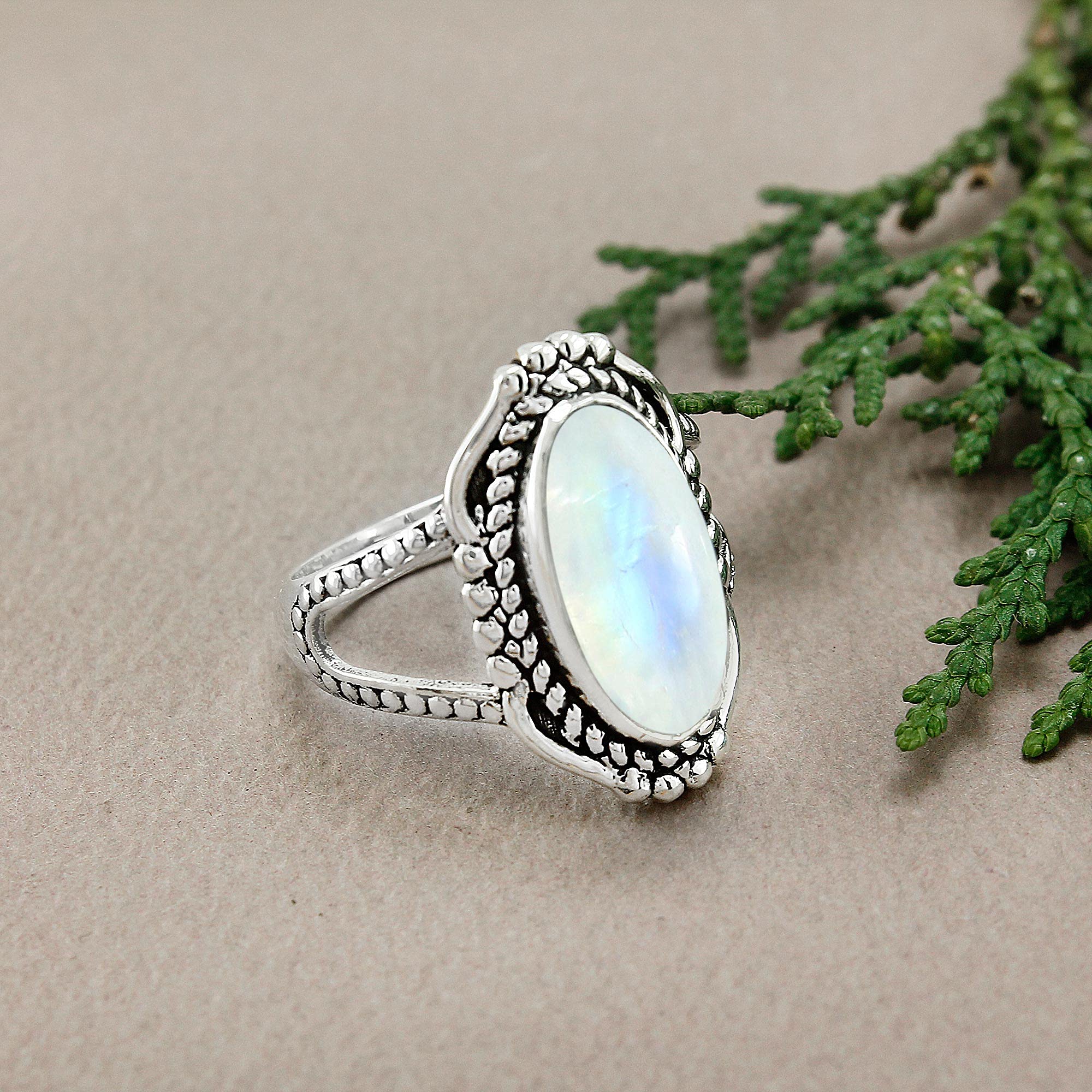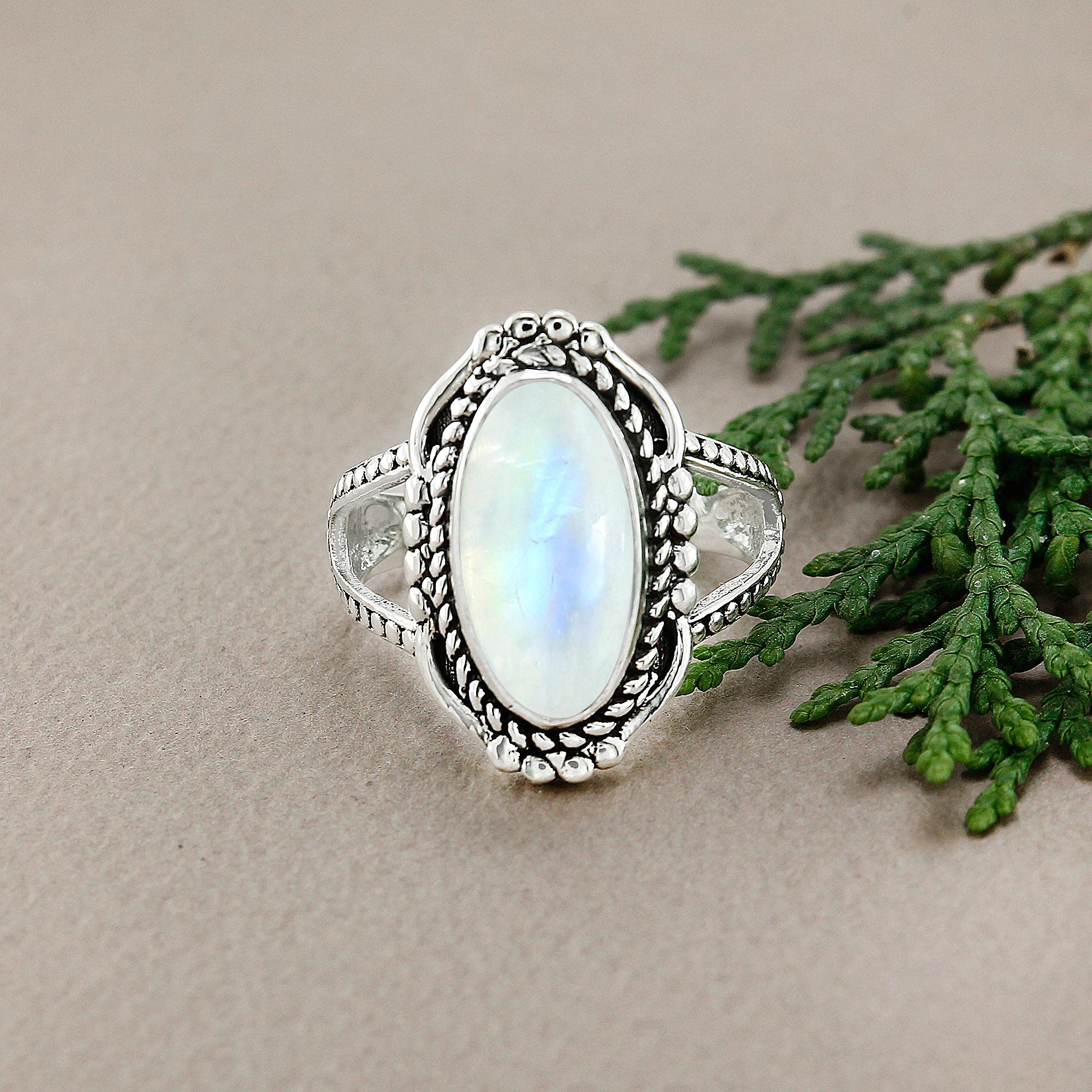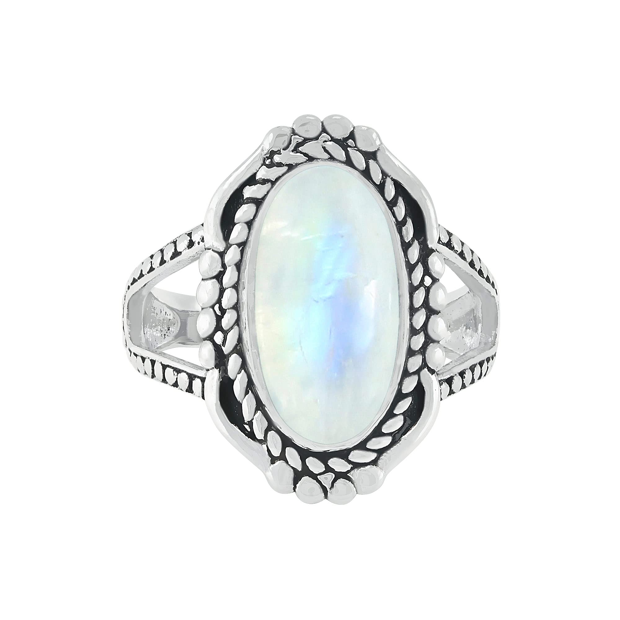 • Featured/Specifications Metal: Solid 925 Sterling Silver (925/1000) | Finish: Oxidized | Stone: Natural Moonstone, | Stone Size: 8x16mm Oval