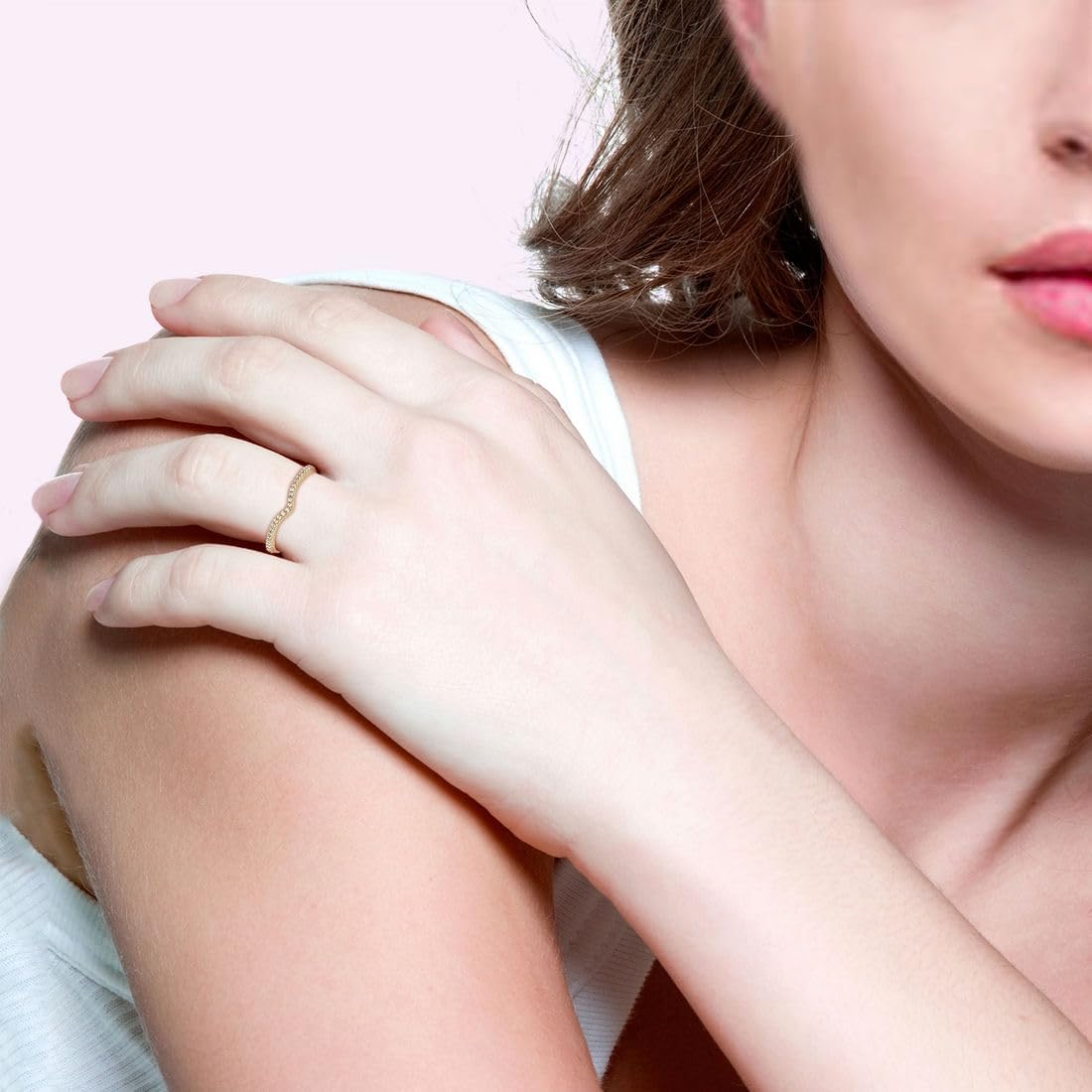 • Specification - Half Eternity Wishbone Chevron Ring, Paved with Simulated Diamond Stones. It Is the Perfect Complement to Many Engagement Ring Styles and Looks Lovely When Stacked. This Stunning Wedding Ring Is Crafted in Yellow Gold Plated Brass, Highly Polished, Never Loses Its Luster Making It the Perfect Choice for Women Who Love a Little Bit of Bling.