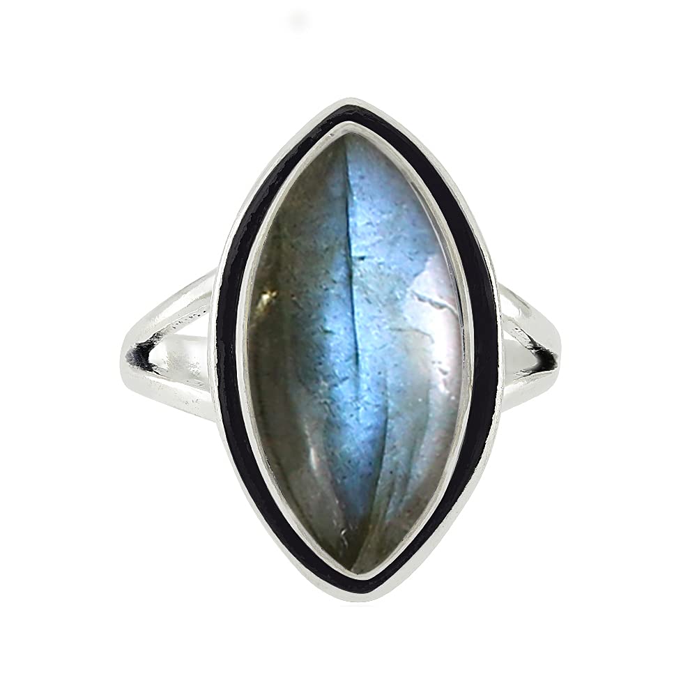 • Featured/Specifications Metal: Solid 925 Sterling Silver (925/1000) | Finish: High Polish | Stone: Labradorite, | Stone Size: 10x20mm Marquise