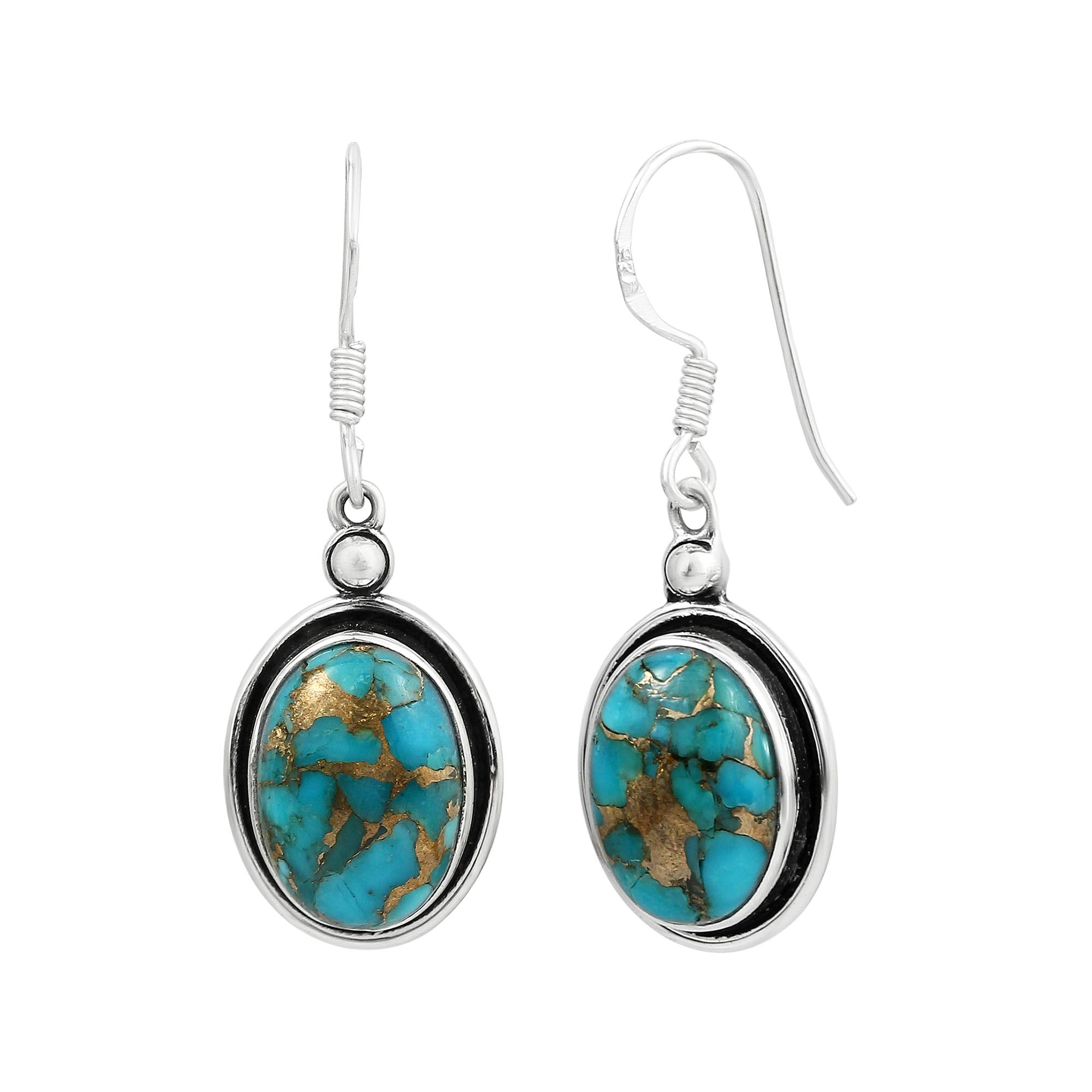 • Featured/Specifications Dimension of Earrings : 28mm X 12mm| Metal: Solid 925 Sterling Silver (925/1000) | Finish: High Polish | Stone: Natural Blue Copper Turquoise, | Stone Size: 10x14mm Oval