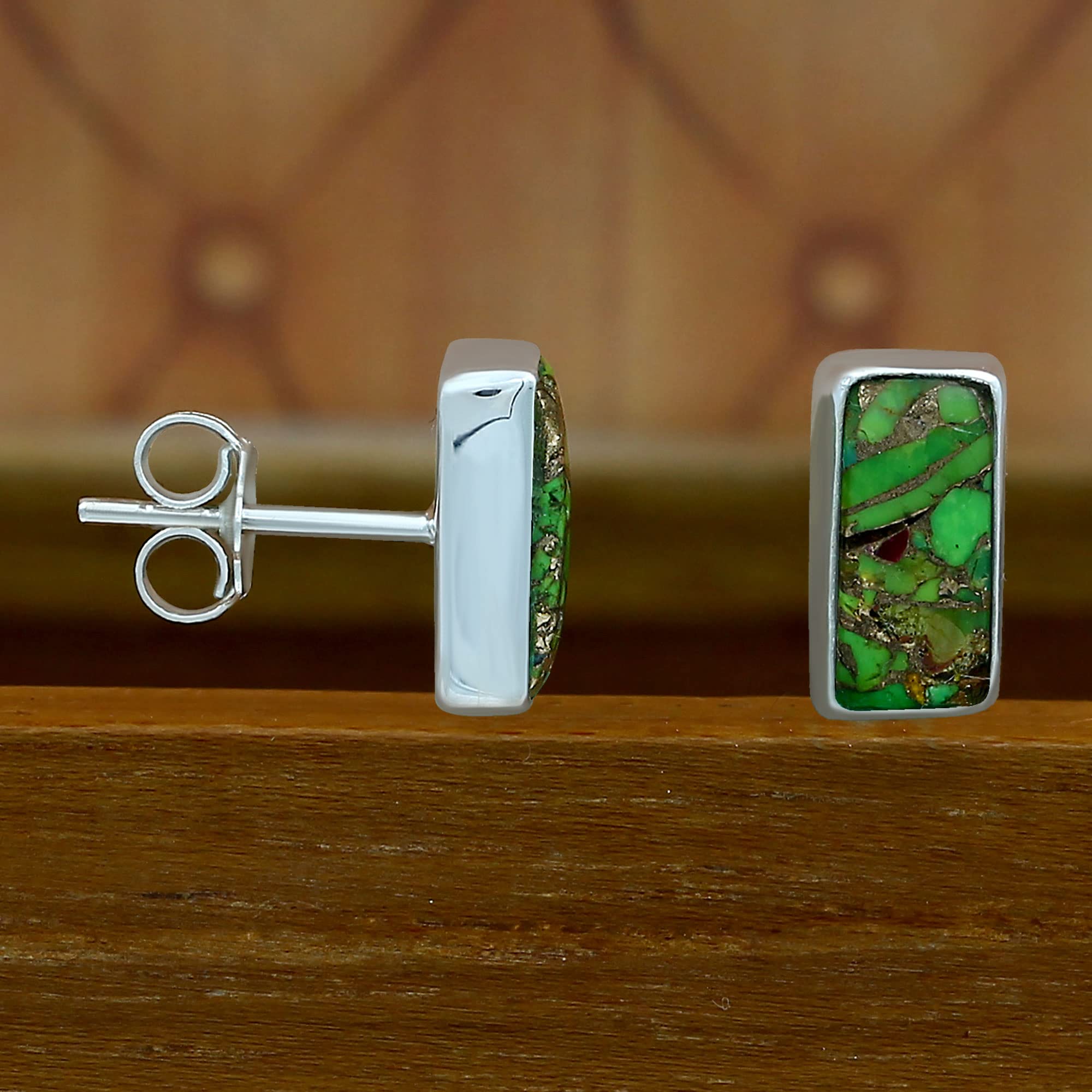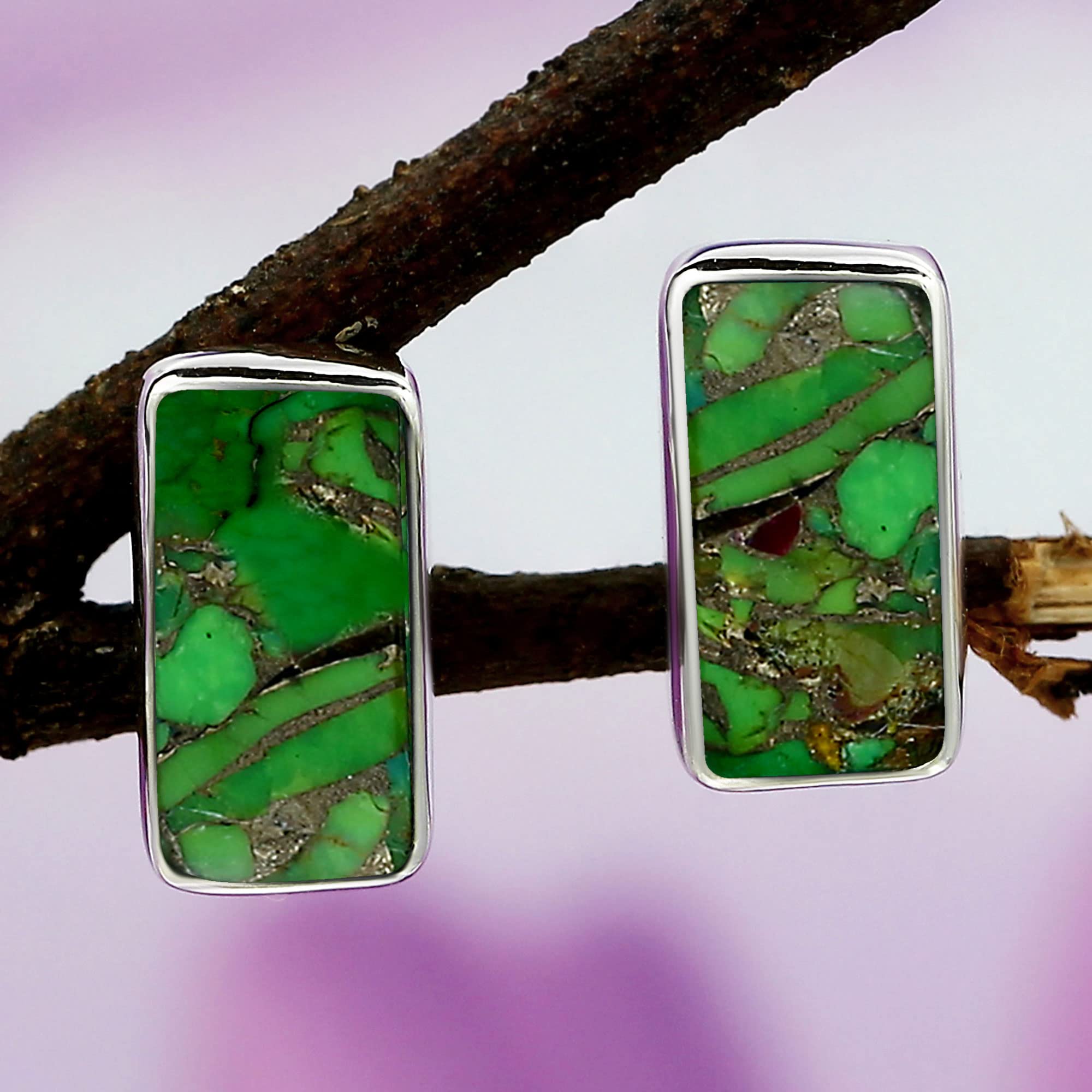 • Featured/Specifications Dimension of Earrings: 20mm x 11mm| Metal: Solid 925 Sterling Silver (925/1000) | Finish: High Polish | Stone: Green Copper Turquoise, | Stone Shape: Rectangle