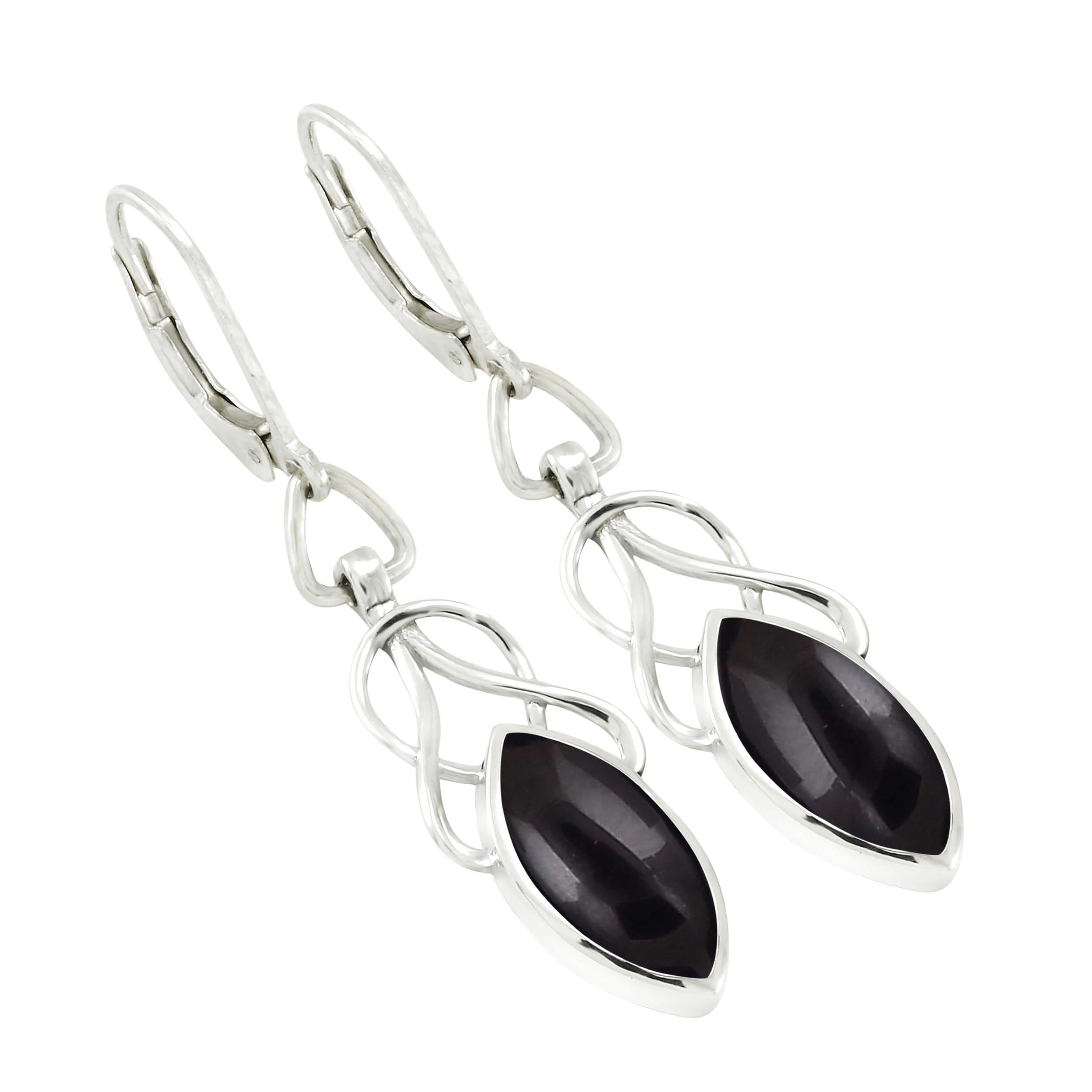 Featured/Specifications Dimension of Earrings : 45mm X 11mm| Metal: Solid 925 Sterling Silver (925/1000) | Finish: High Polish | Stone: Natural Black Onyx, | Stone Size: 7x14mm Marquise