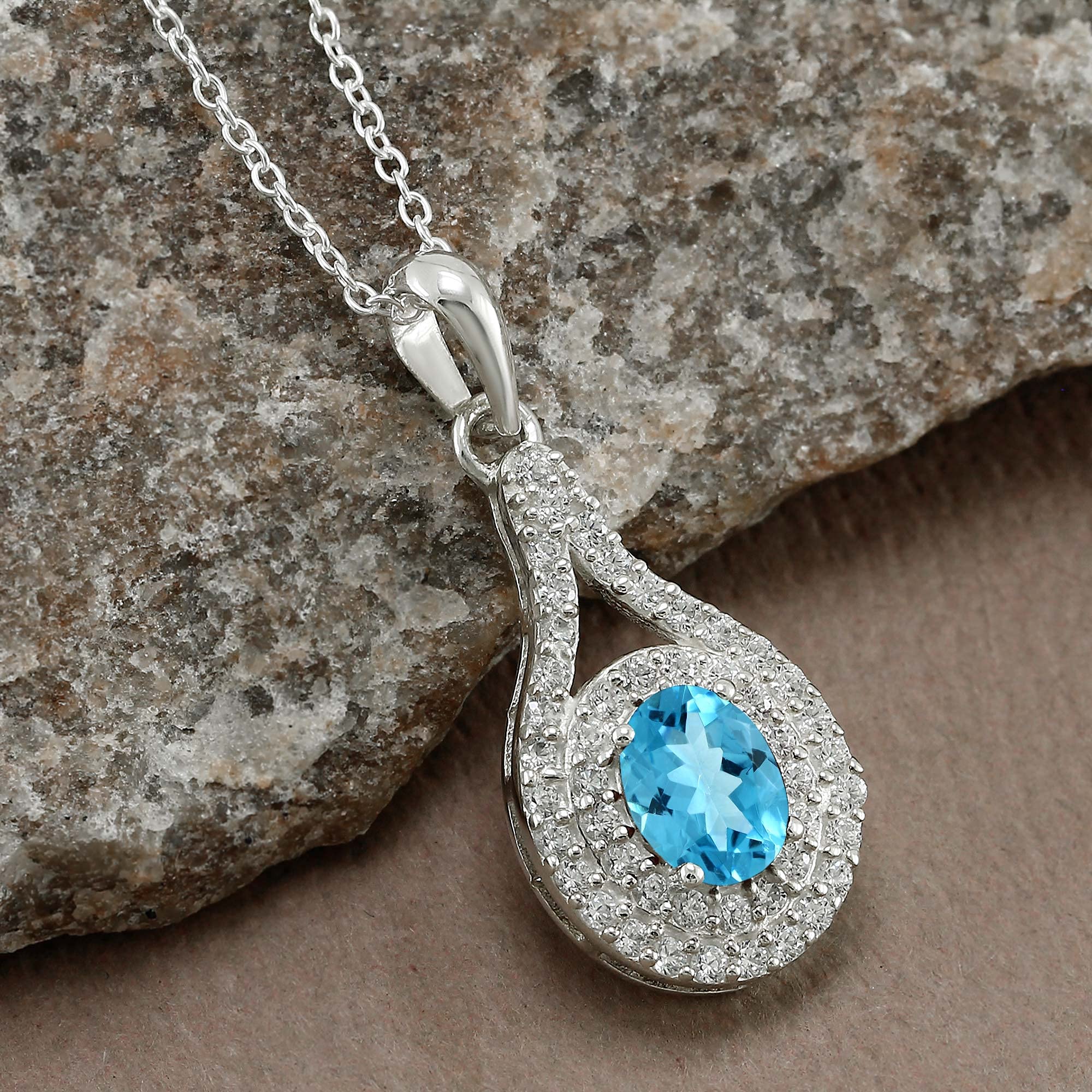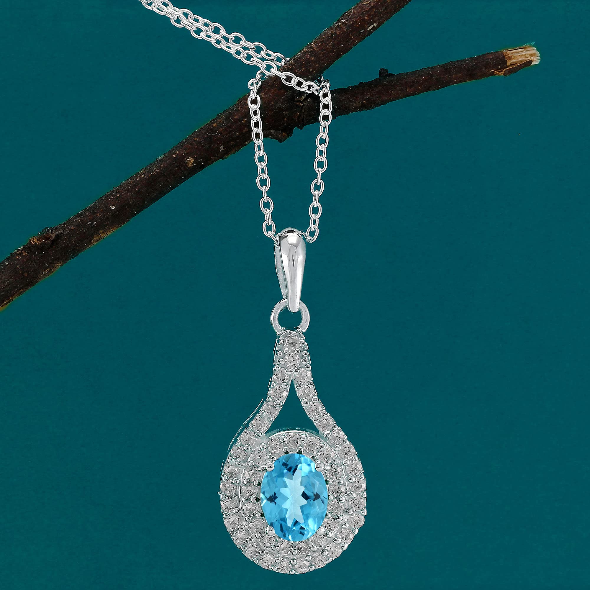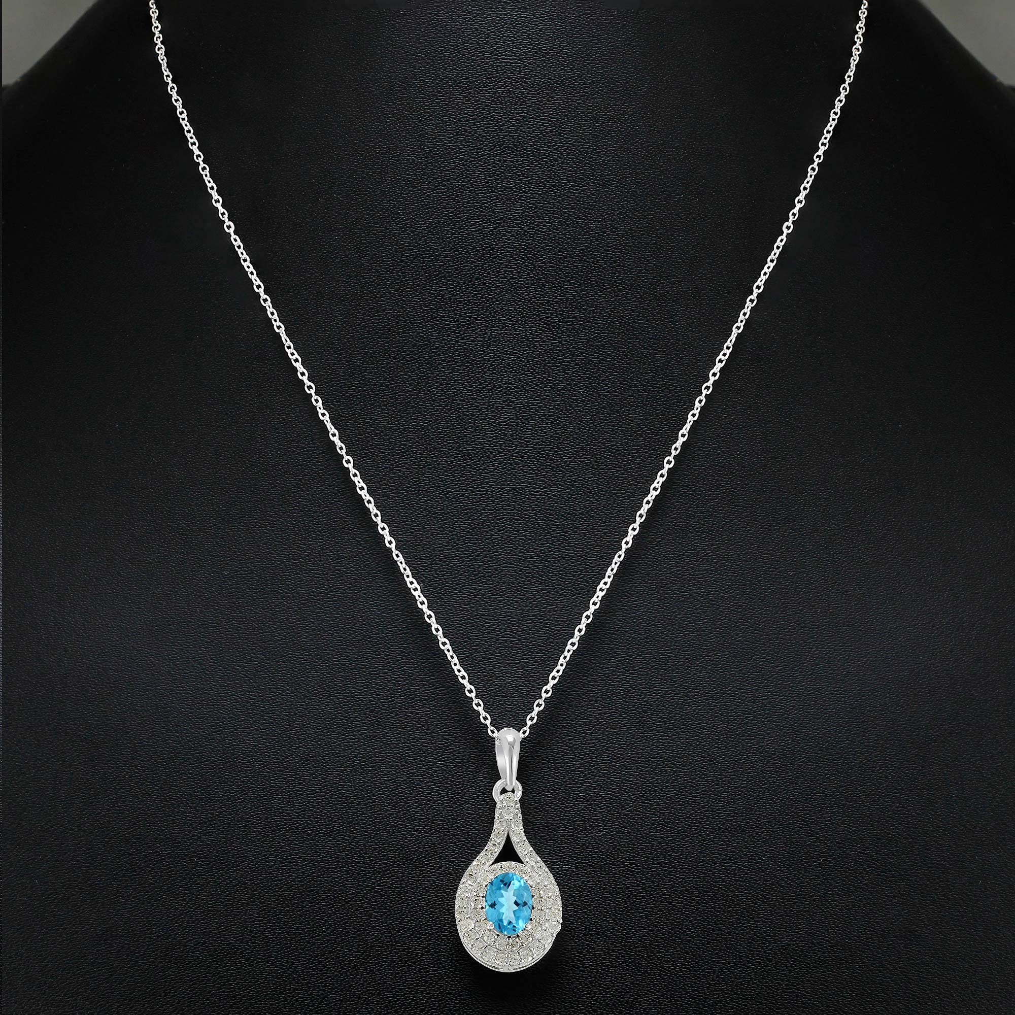 • Featured/Specifications Dimension : 13.5X30.3 MM | Metal: Solid 925 Sterling Silver (925/1000) | Finish: High Polish | Stone: Natural Swiss Blue Topaz, | Stone Size: 6x8mm Oval, 1.50x1.50mm Round,