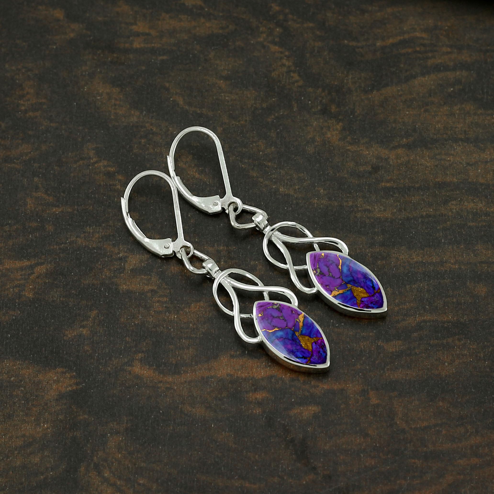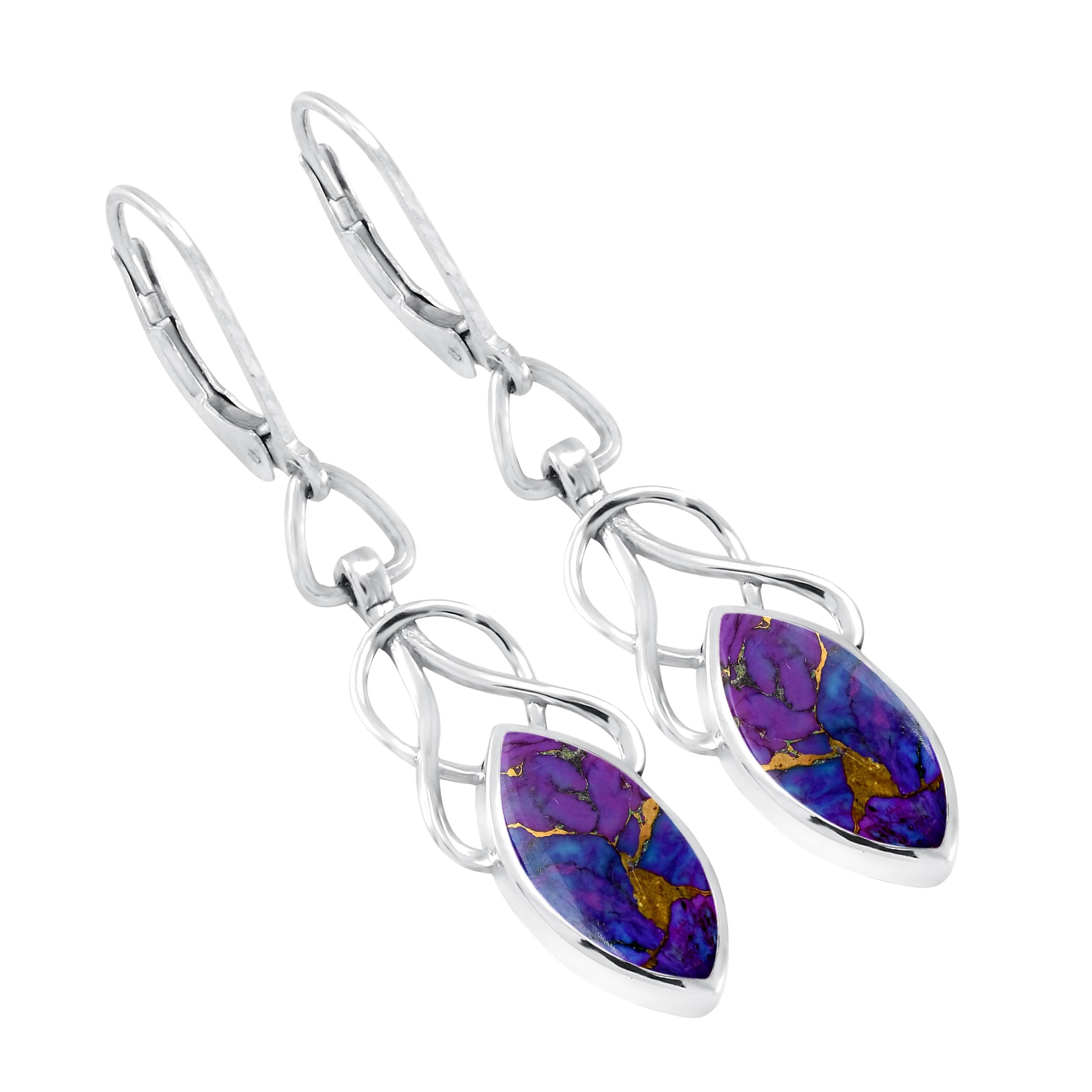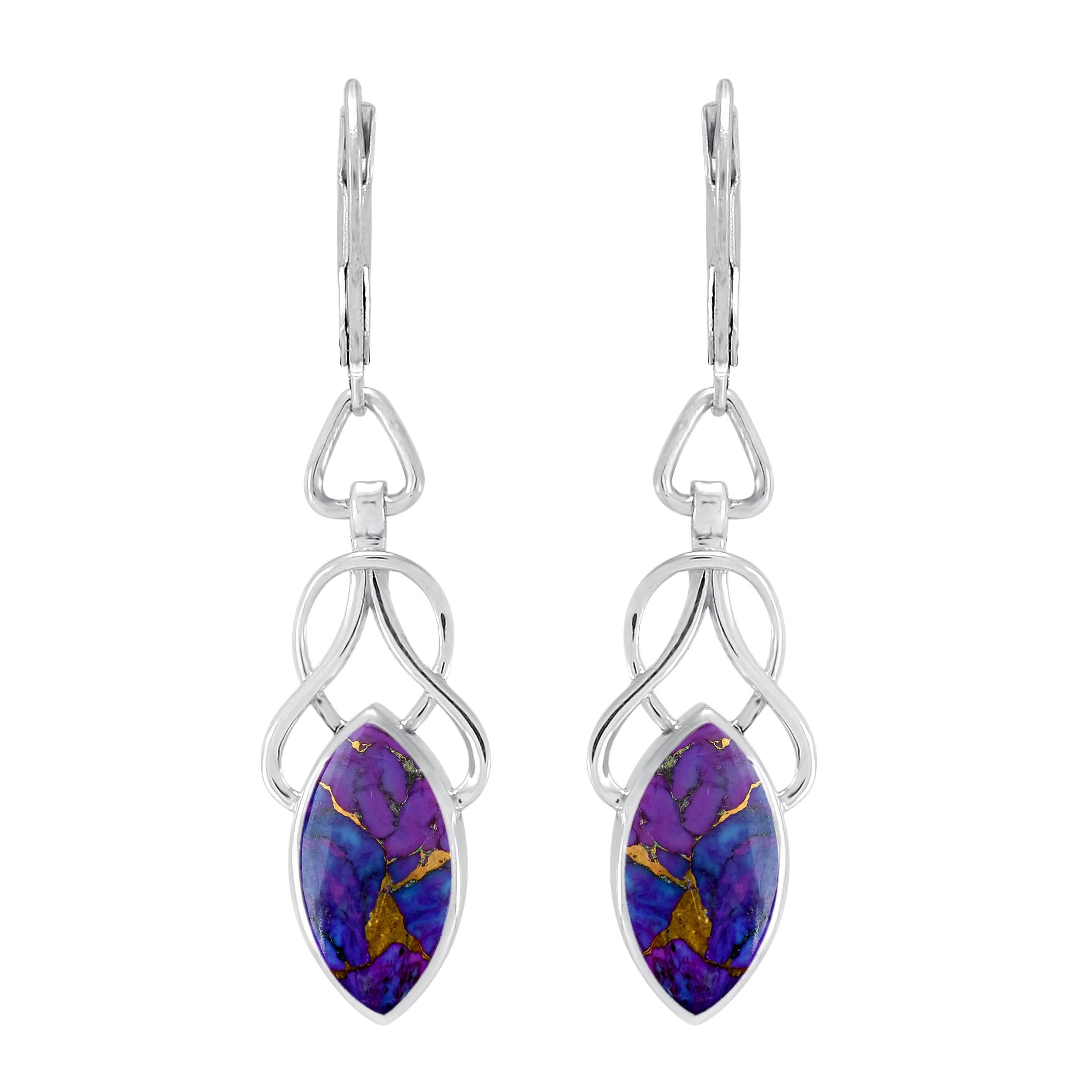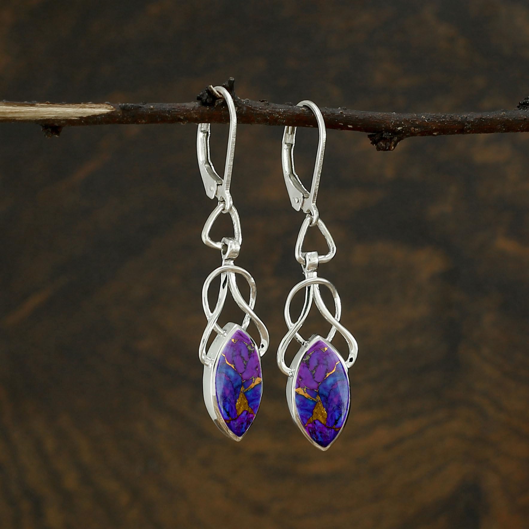 Featured/Specifications Dimension of Earrings : 45mm X 11mm| Metal: Solid 925 Sterling Silver (925/1000) | Finish: High Polish | Stone: Natural Purple Copper Turquoise, | Stone Size: 7x14mm Marquise