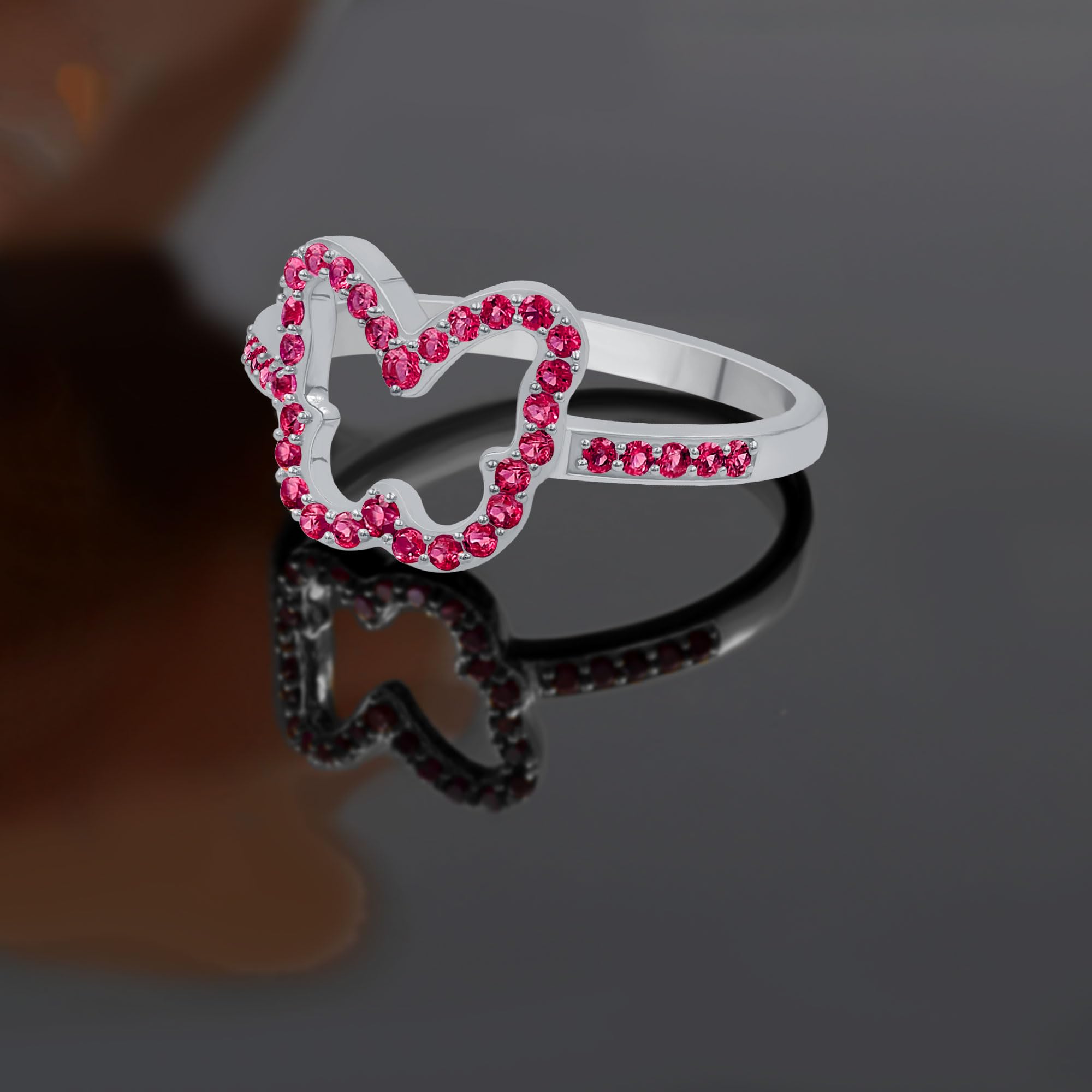 • Charming Butterfly Design – Features A Beautiful Butterfly Shape Ring Adorned with a Vibrant Lab-Created Ruby Symbolizing Grace and Transformation, Making It a Unique Addition to Any Jewelry Collection.