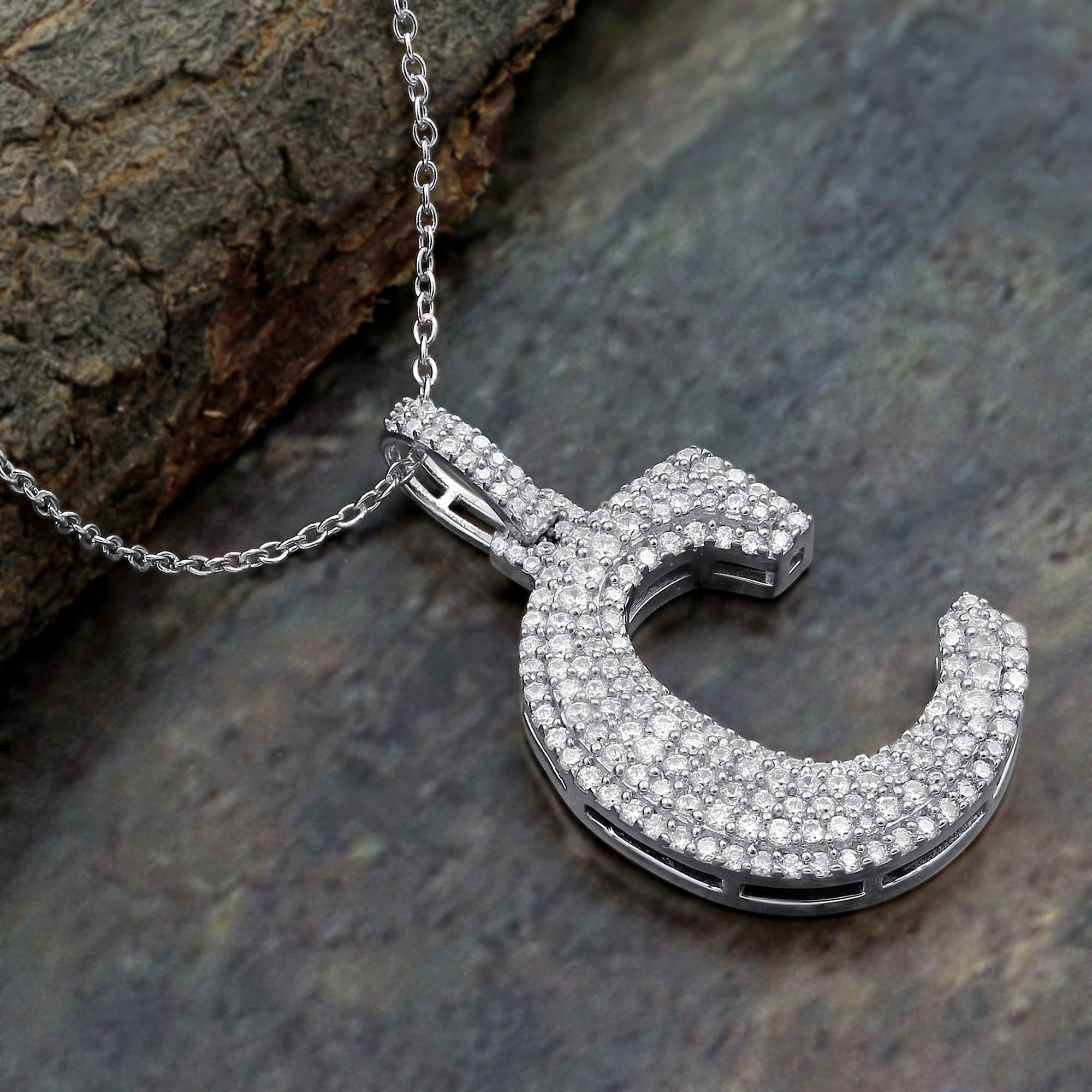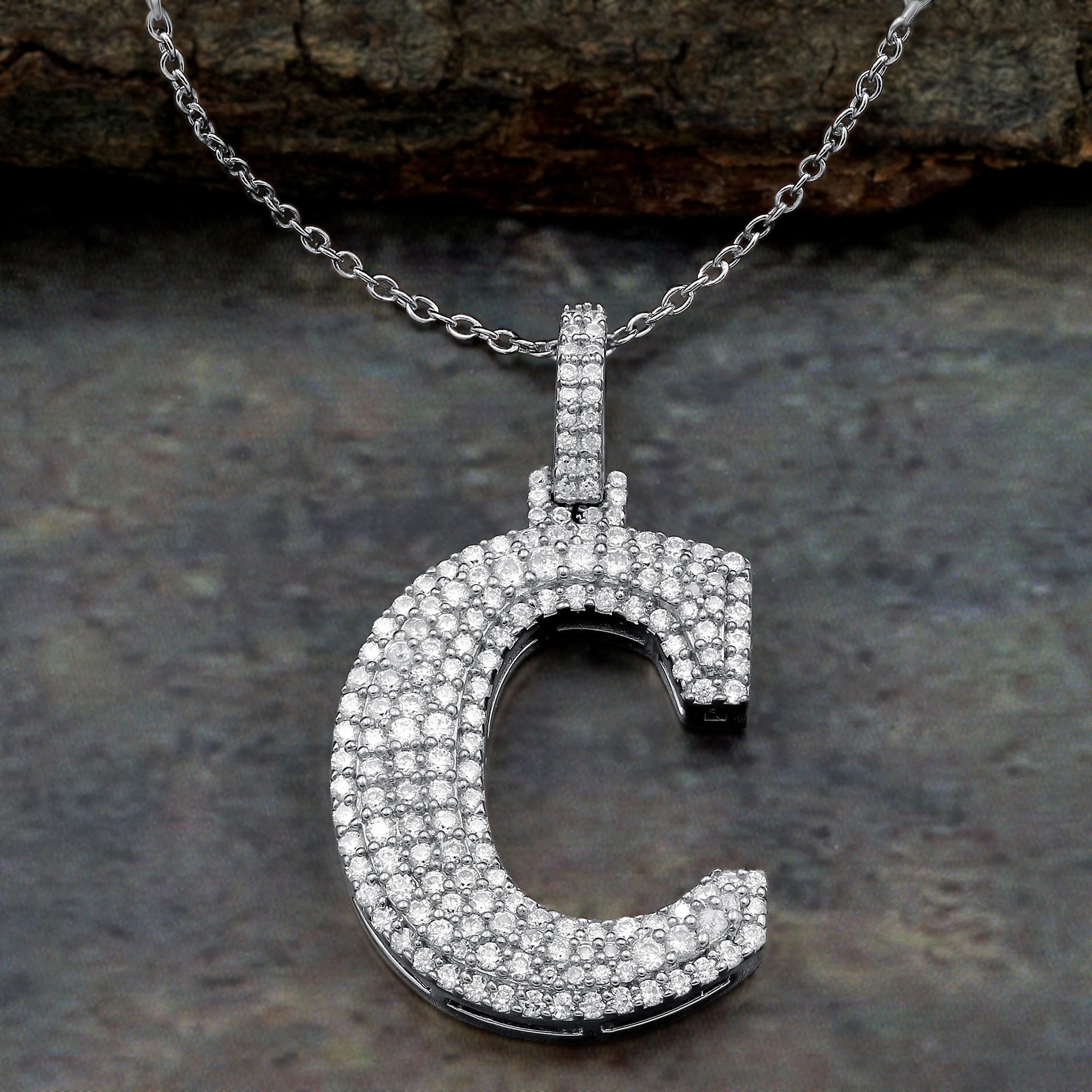 Initial Letter Necklace For Women: Classic Rhodium Plated Initial Letter Pendant, Set With Sparkling Moissanite Diamonds. Wearing A Initial Letter Necklace Is A Classic Way To Make A Statement! With Memories Of Happiness And Laughter, Showing Off Your First Name, Your Last Name, Or Even Alma Mater! 1.90 Ct Moissanite Pendant D Color Vvs1 Clarity Excellent Cut Moissanite.