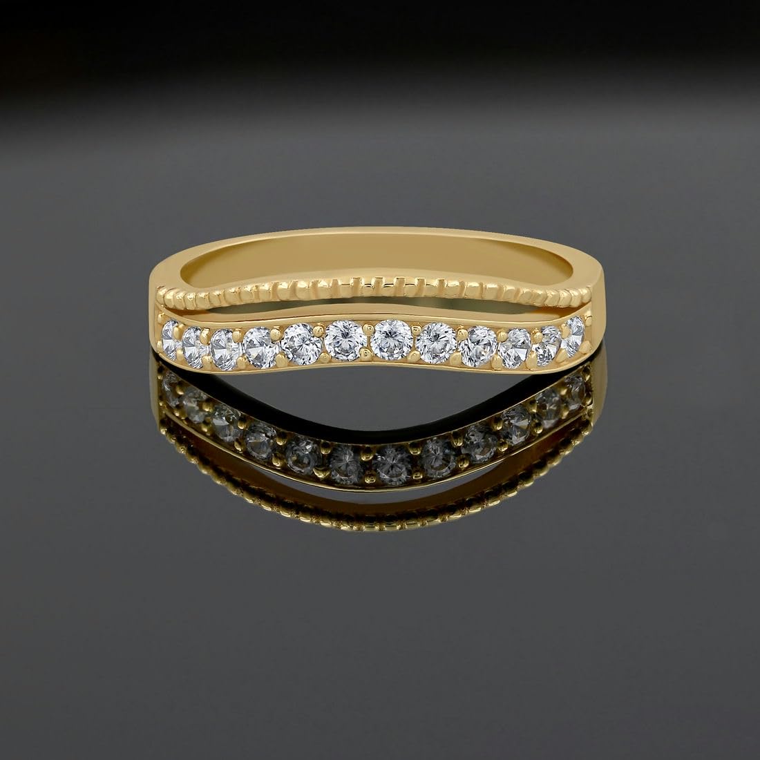 • Specification - 2.00mm Wide Classic Half Eternity Contour Stackable Band, Paved with Simulated Diamond Stones. It Is the Perfect Complement to Many Engagement Ring Styles and Looks Lovely When Stacked. This Stunning Wedding Ring is Crafted in Yellow Gold Plated Brass, Highly Polished, Never Loses Its Luster Making It the Perfect Choice for Women Who Love a Little Bit of Bling.