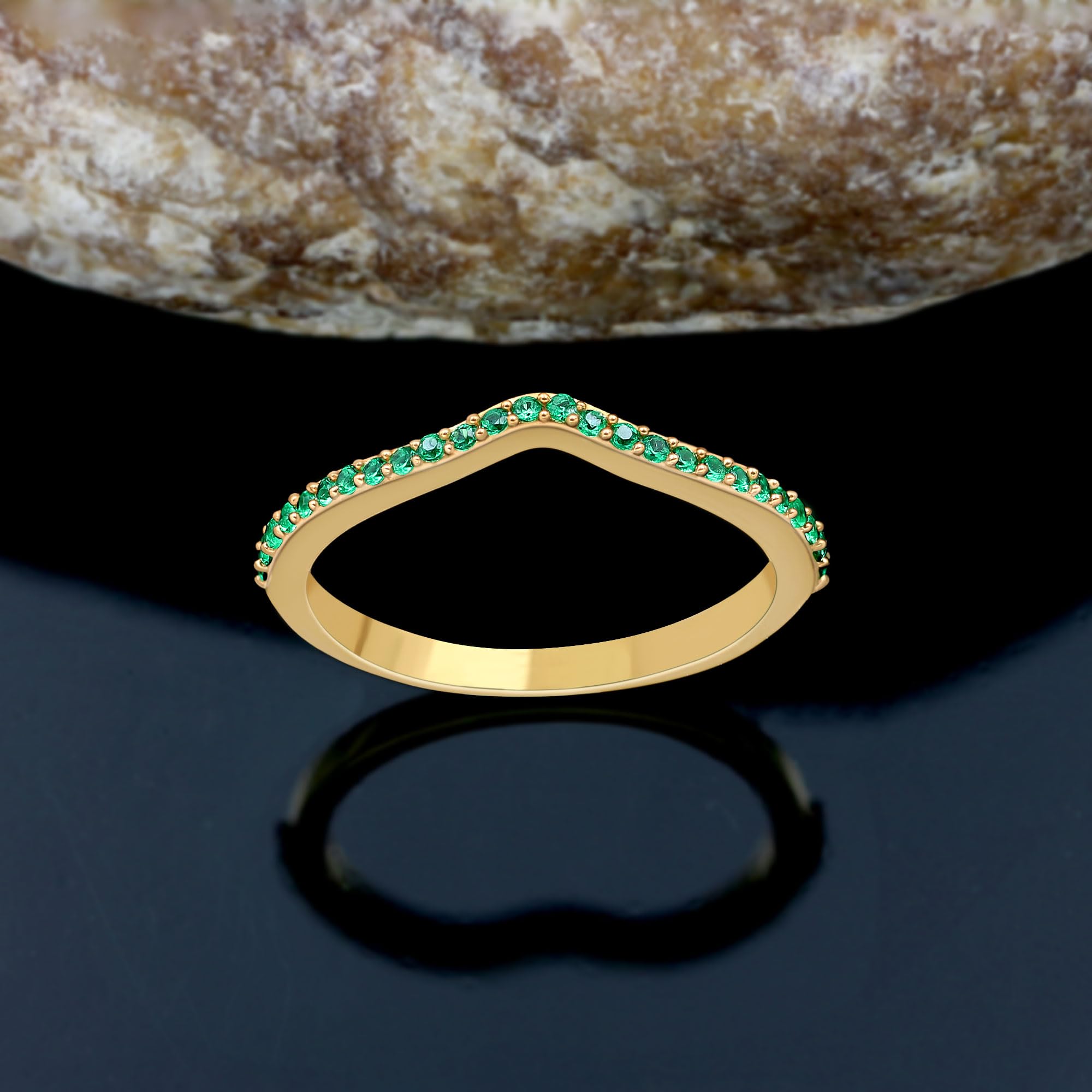 • Specification - Half Eternity Wishbone Chevron Ring, Paved with Lab Created Emerald Stones. It Is the Perfect Complement to Many Engagement Ring Styles and Looks Lovely When Stacked. This Stunning Wedding Ring Is Crafted in Yellow Gold Plated Brass, Highly Polished, Never Loses Its Luster Making It the Perfect Choice for Women Who Love a Little Bit of Bling.