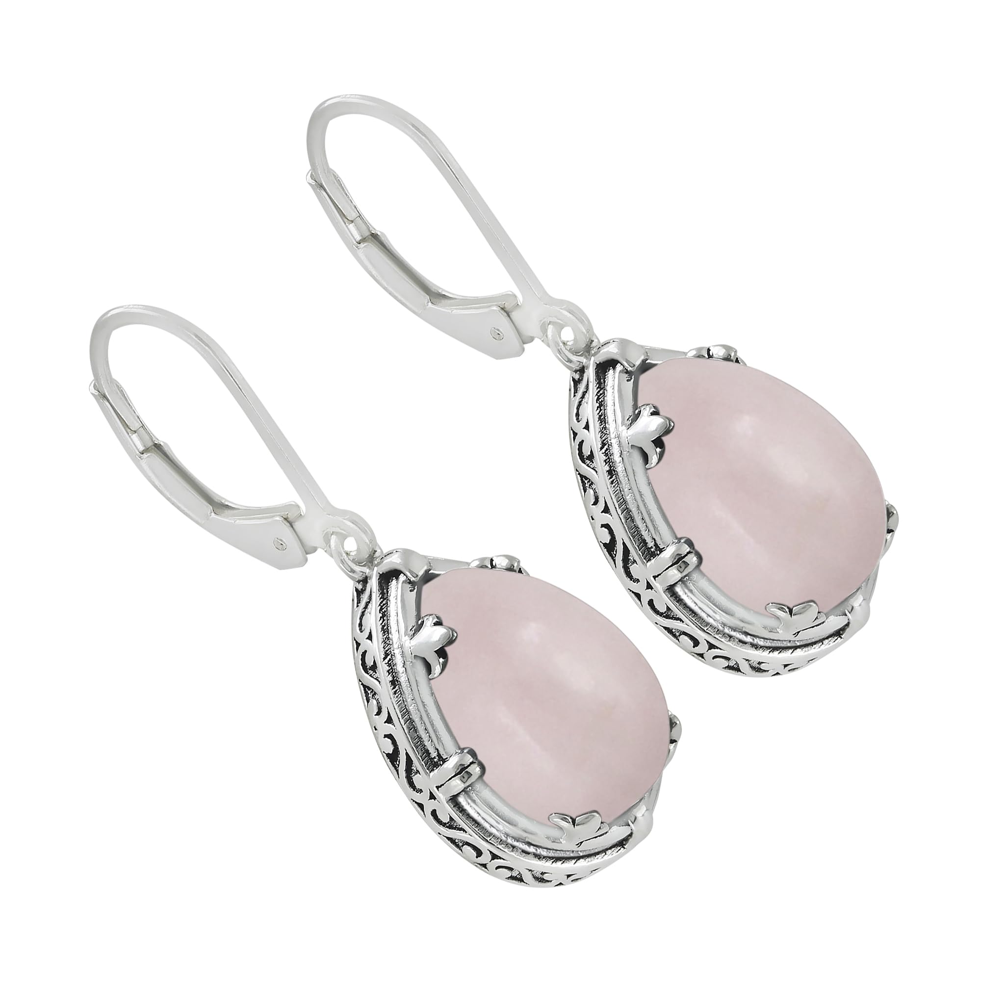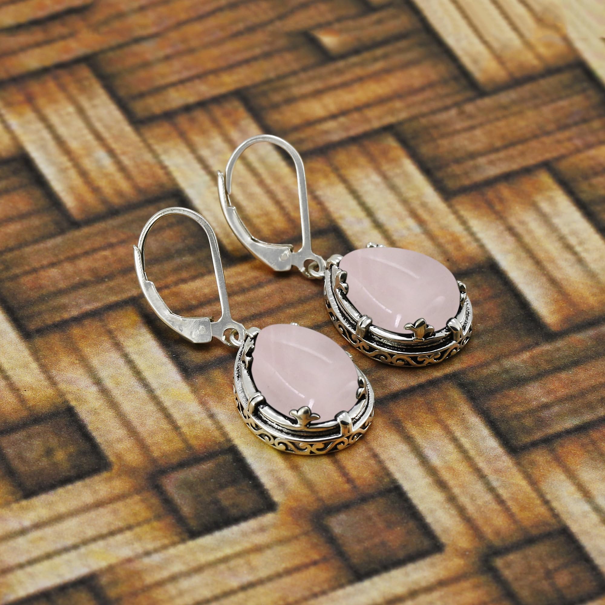 Featured/Specifications Dimension of Earrings : 35mm X 15mm| Metal: Solid 925 Sterling Silver (925/1000) | Finish: High Polish | Stone: Natural Rose Quartz, | Stone Size: 10x14mm Pear
