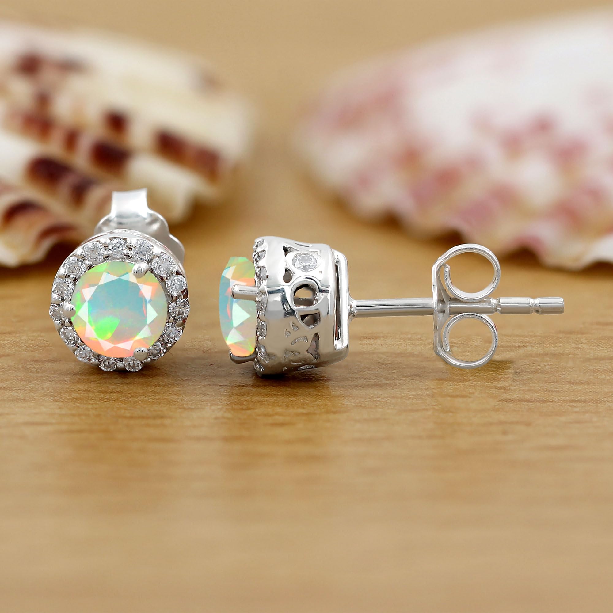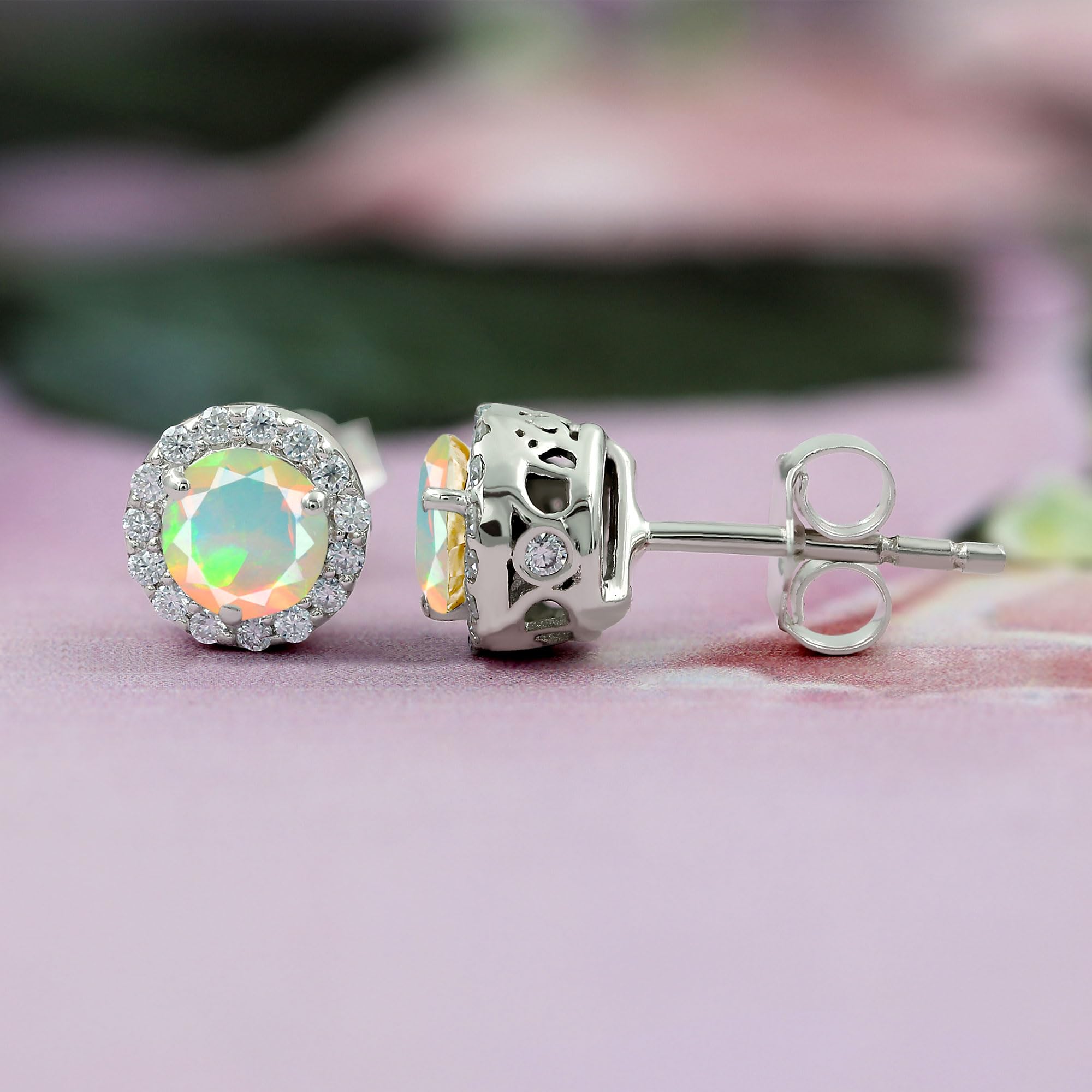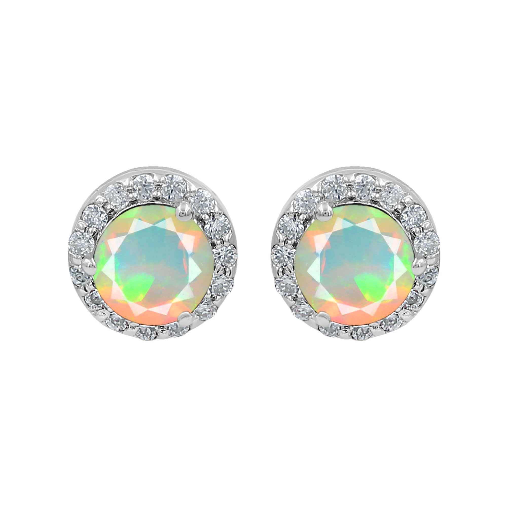 • Featured/Specifications Dimension of Earrings : 7X7mm| Metal: Solid 925 Sterling Silver (925/1000) | Finish: High Polish | Stone: Natural Ethiopian Opal & Simulated Diamond, | Gemstone Stone Size: 5mm Round