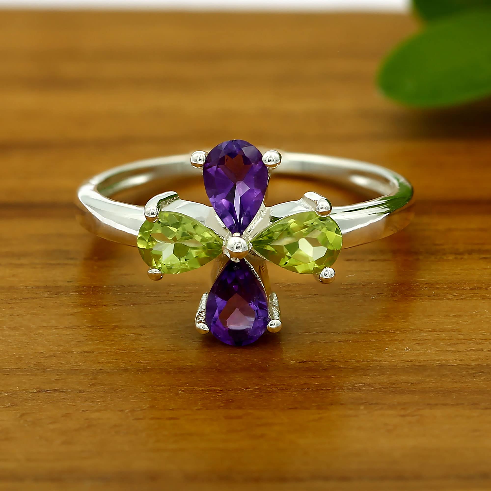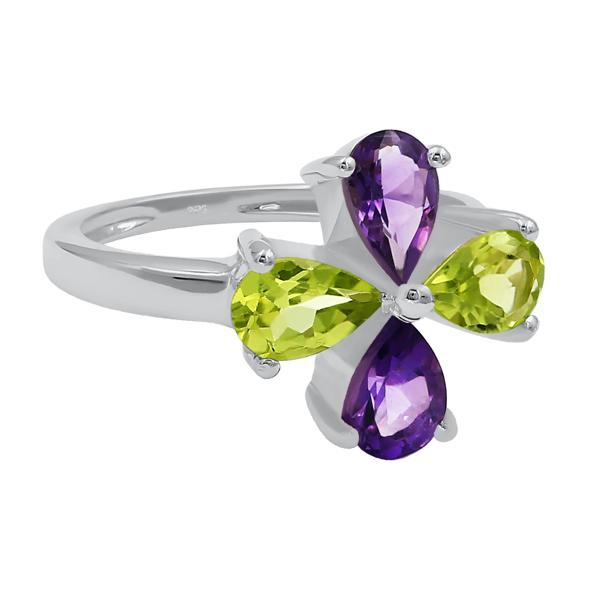• Featured/Specifications Metal : Sterling Silver | Finish : High Polish | Stone : Genuine Amethyst & Peridot | Stone Size : 4x6mm Pear