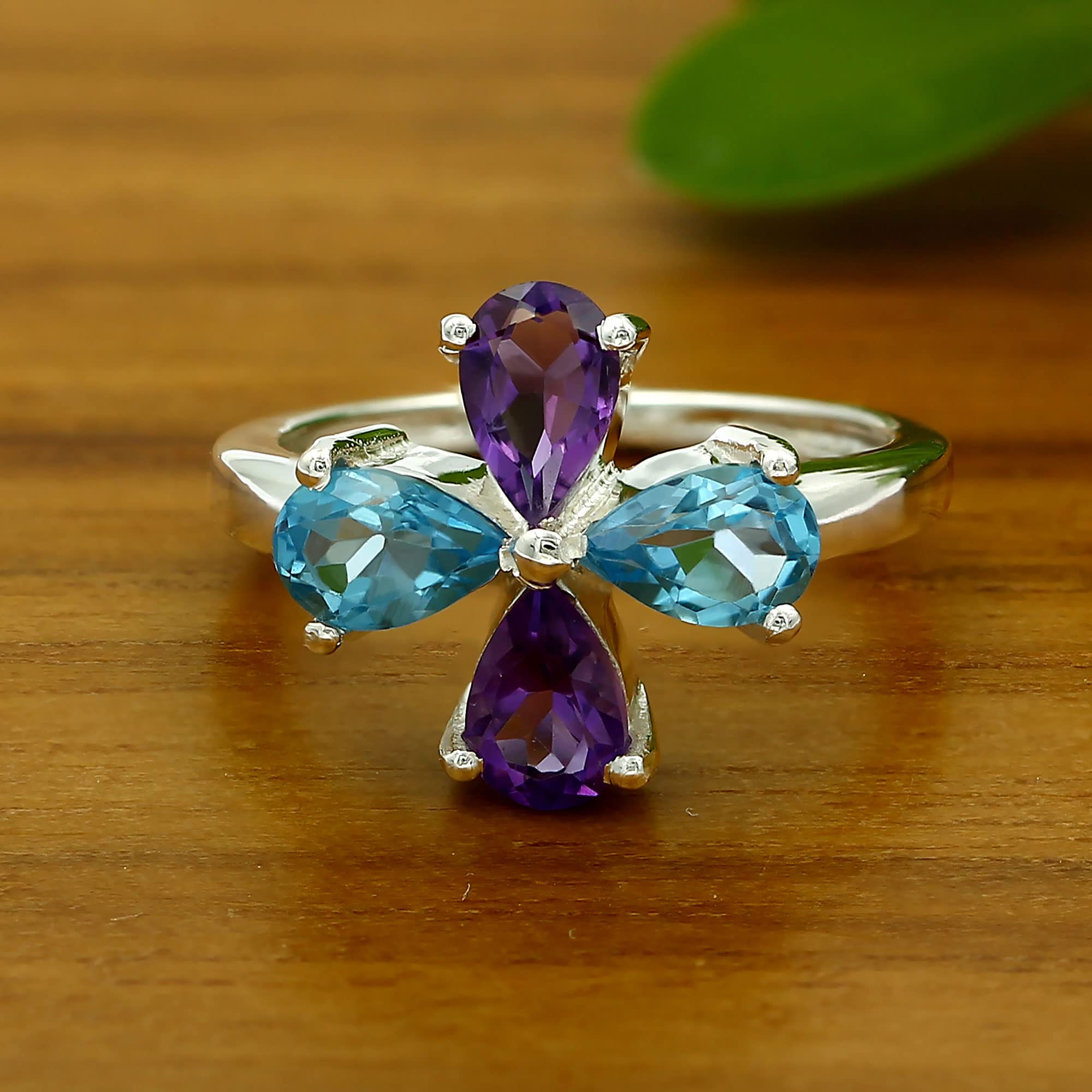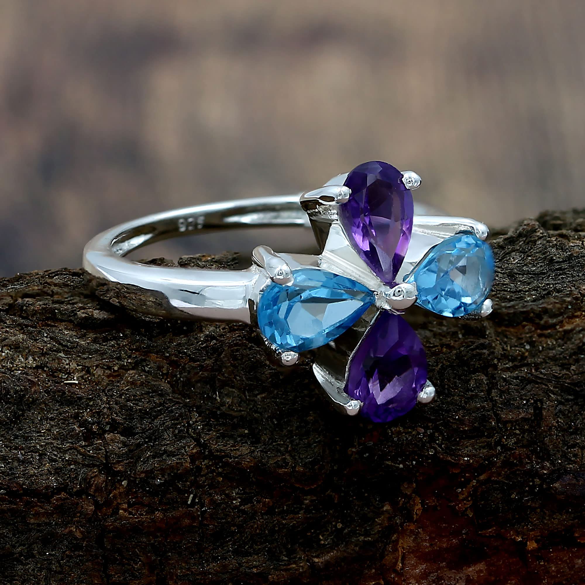 • Featured/Specifications Metal : Sterling Silver | Finish : High Polish | Stone : Genuine Amethyst & Swiss Blue Topaz, | Stone Size : 4x6mm Pear
