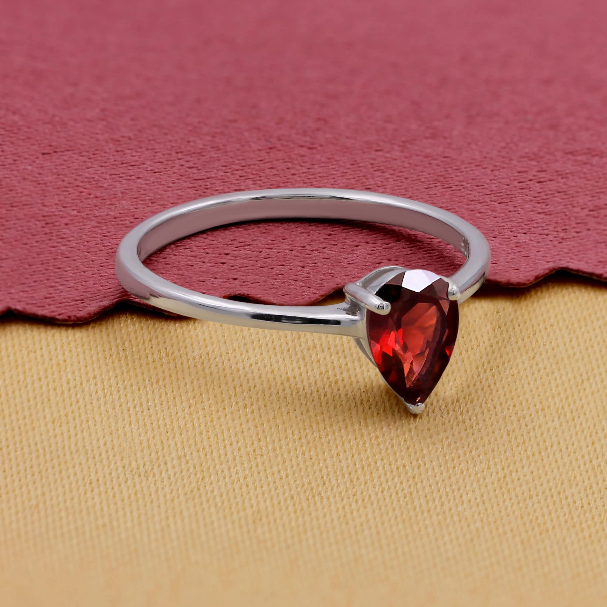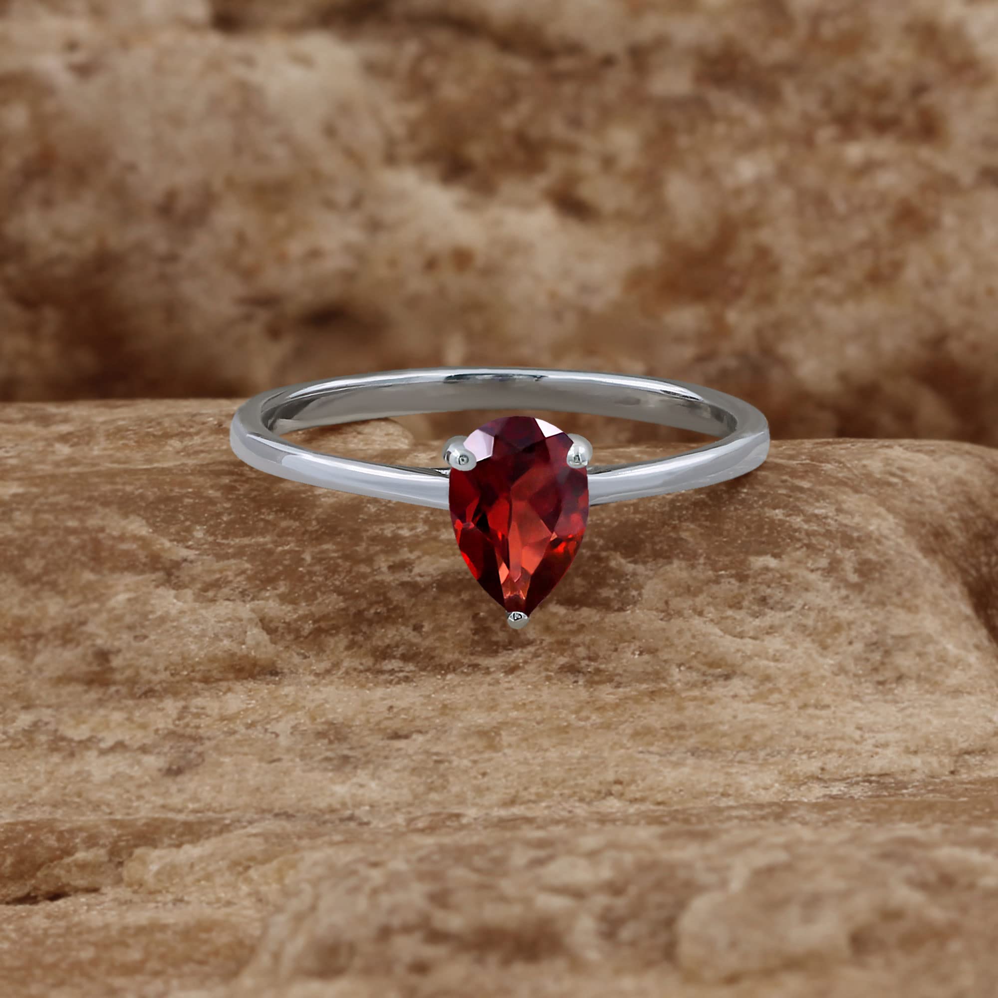 • Featured/Specifications Metal: Solid 925 Sterling Silver (925/1000) | Finish: High Polish | Stone: Natural Garnet, | Stone Size: 5x7mm Pear