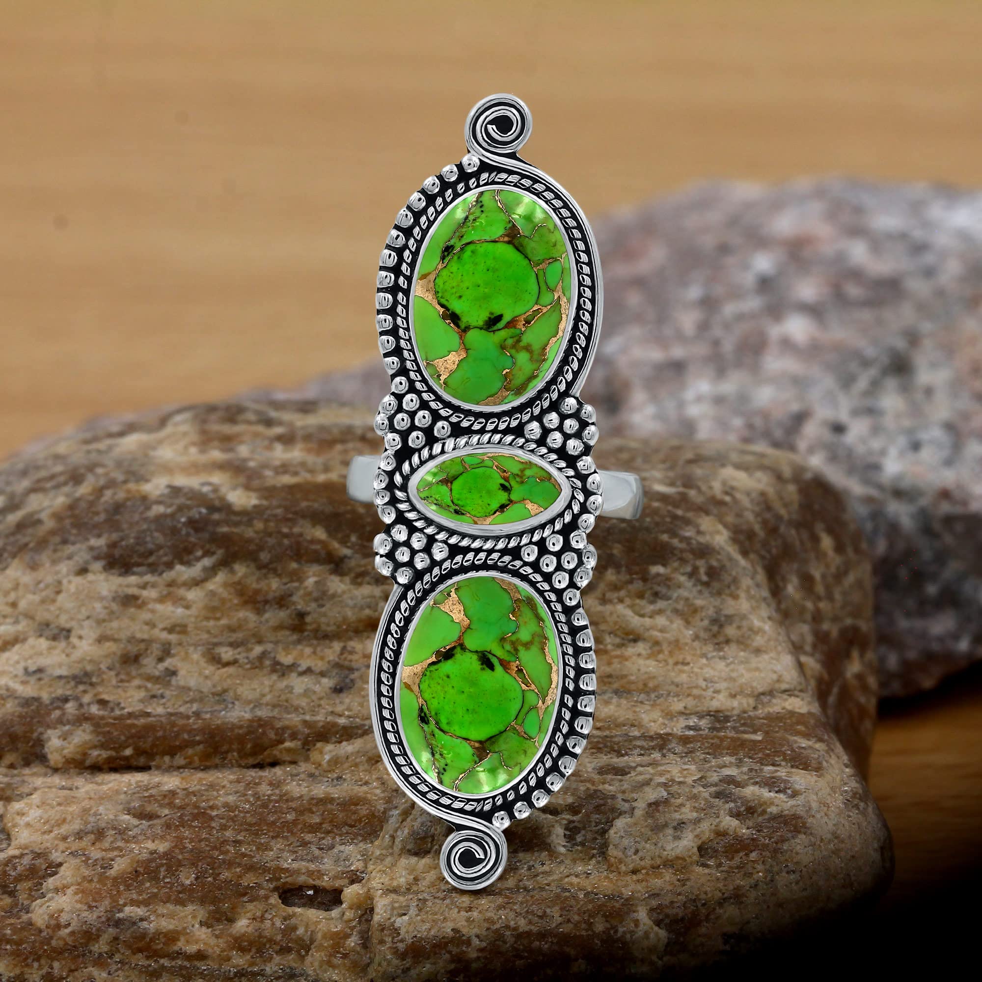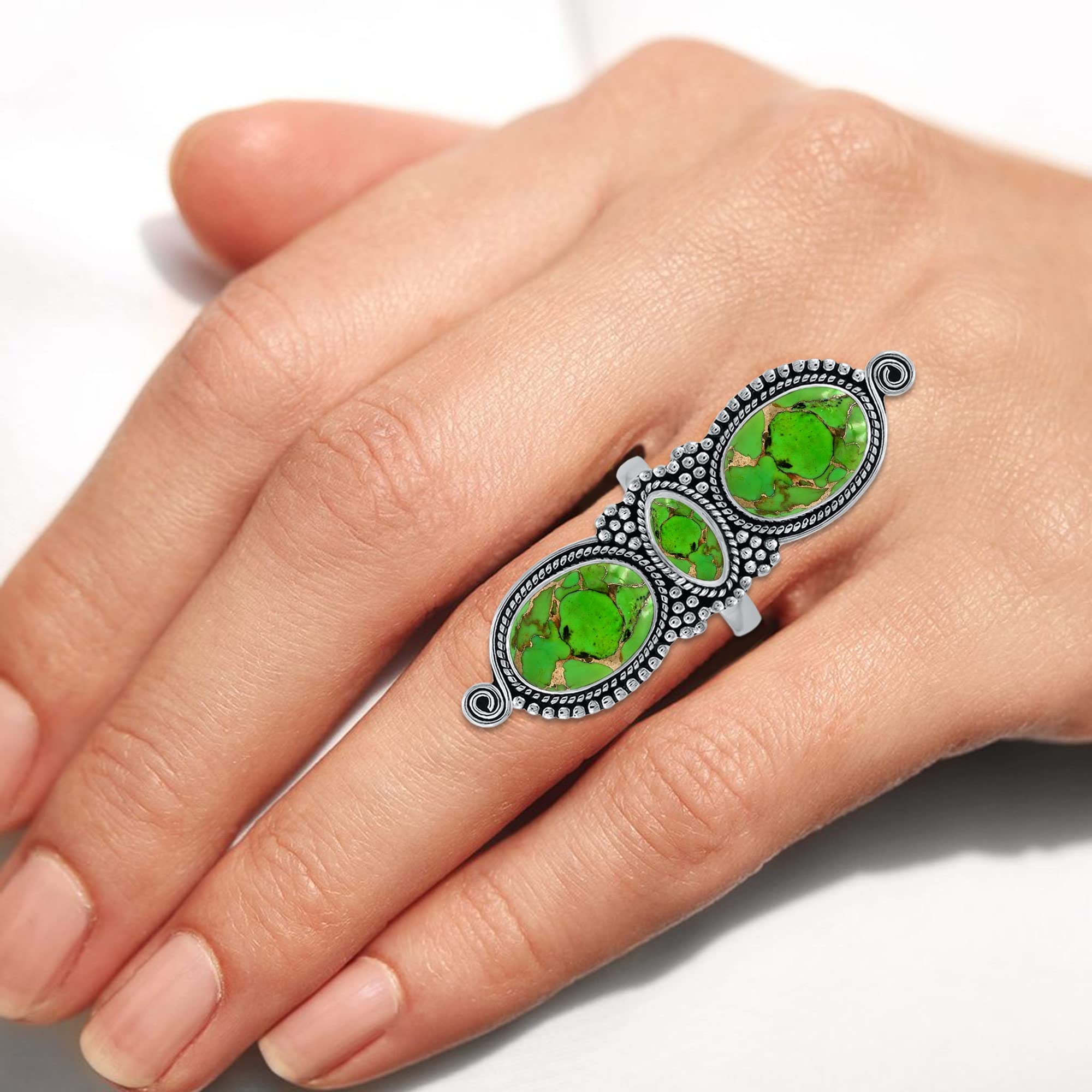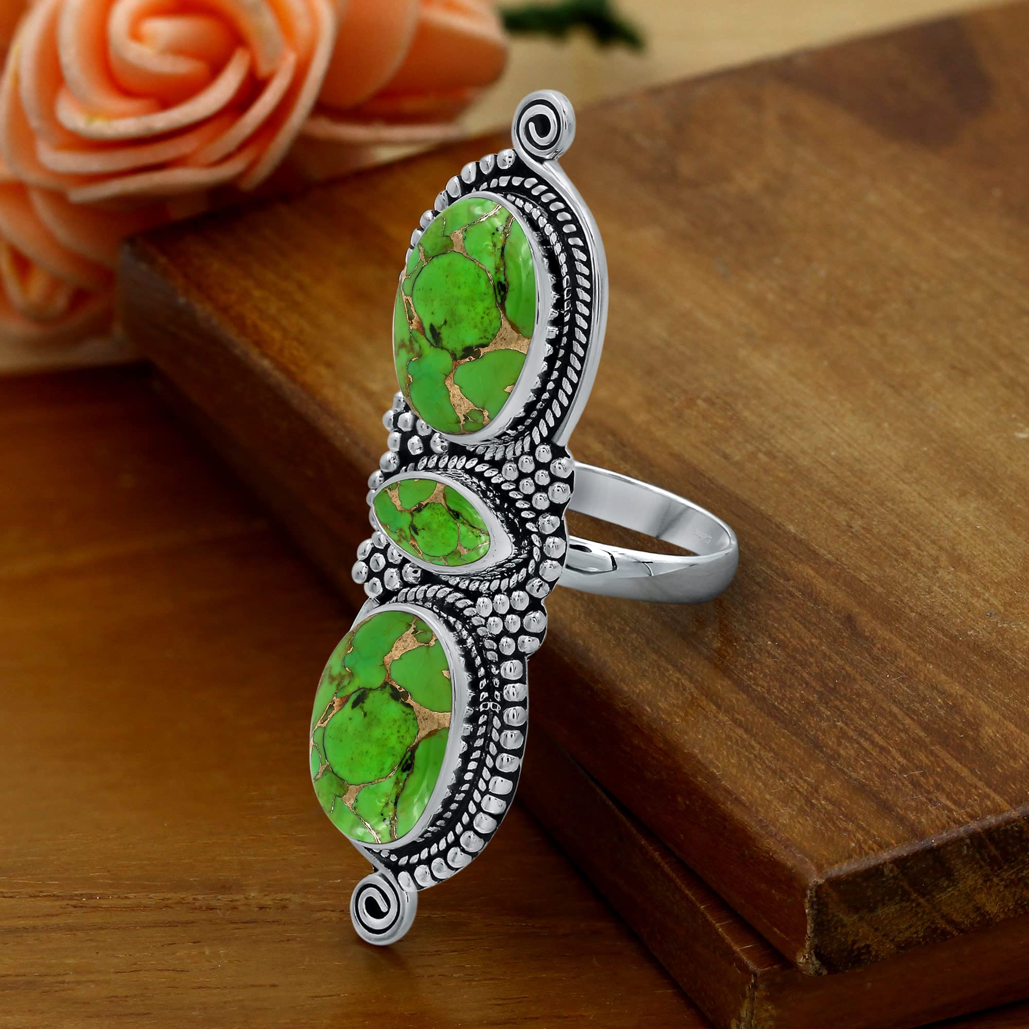 • Featured/Specifications Dimensions of Ring: Approx 50mm X 14mm | Metal: Solid 925 Sterling Silver (925/1000) | Finish: High Polish | Stone: Natural Green Copper Turquoise, | Stone Size: 10x14mm Oval, 5x10mm Marquise