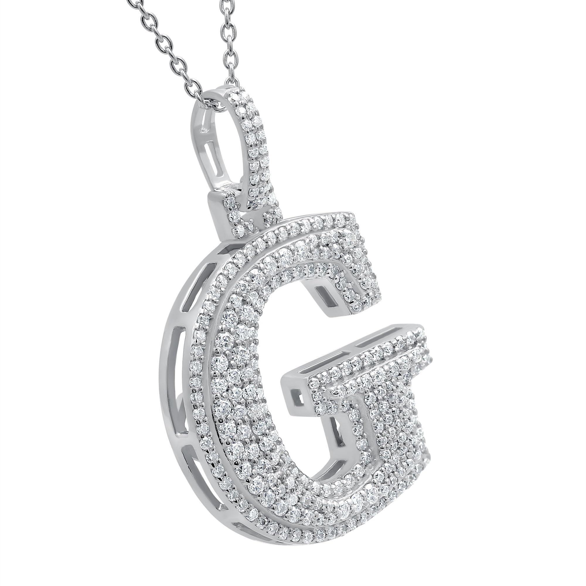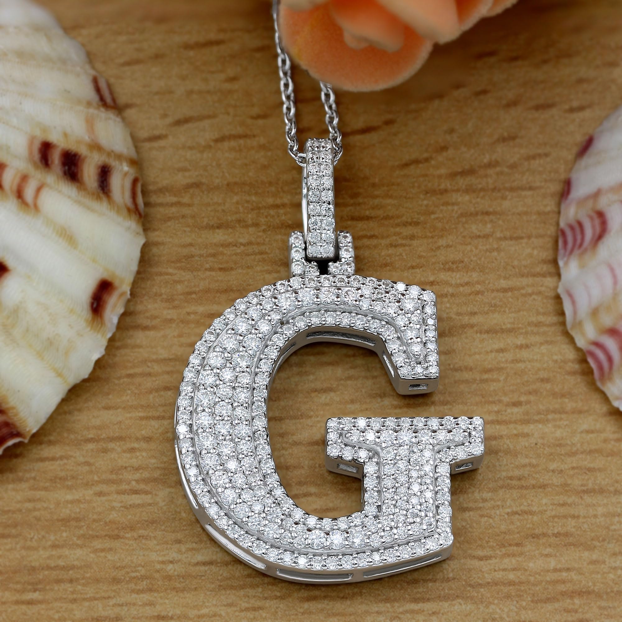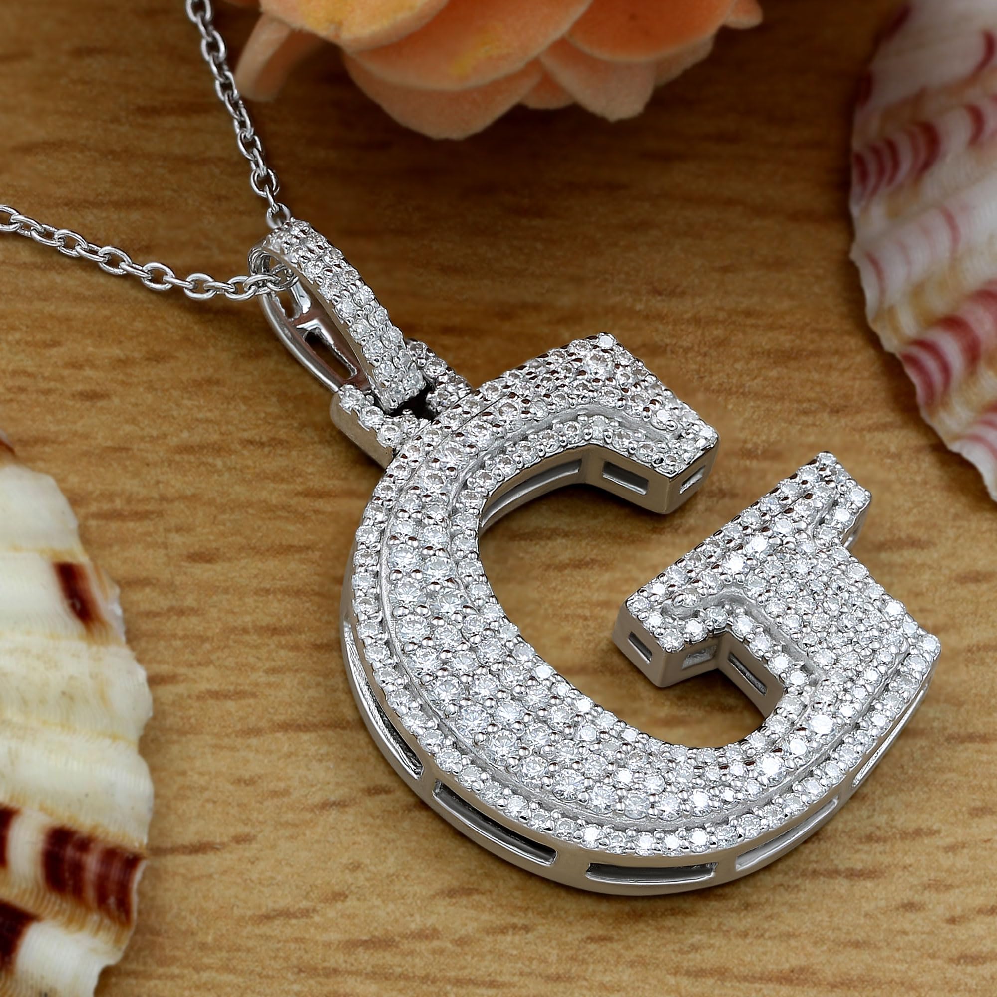 Initial Letter Necklace For Women: Classic Rhodium Plated Initial Letter Pendant, Set With Sparkling Moissanite Diamonds. Wearing A Initial Letter Necklace Is A Classic Way To Make A Statement! With Memories Of Happiness And Laughter, Showing Off Your First Name, Your Last Name, Or Even Alma Mater! 1.90 Ct Moissanite Pendant D Color Vvs1 Clarity Excellent Cut Moissanite.