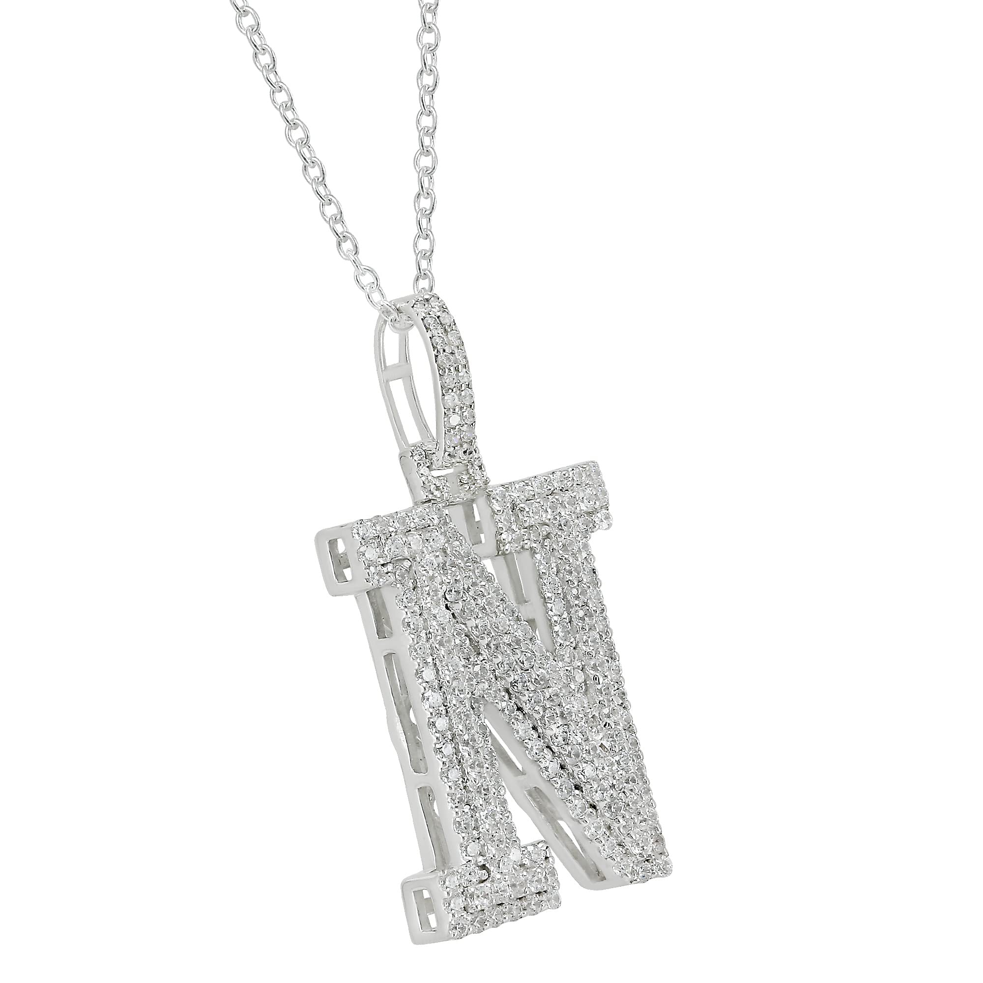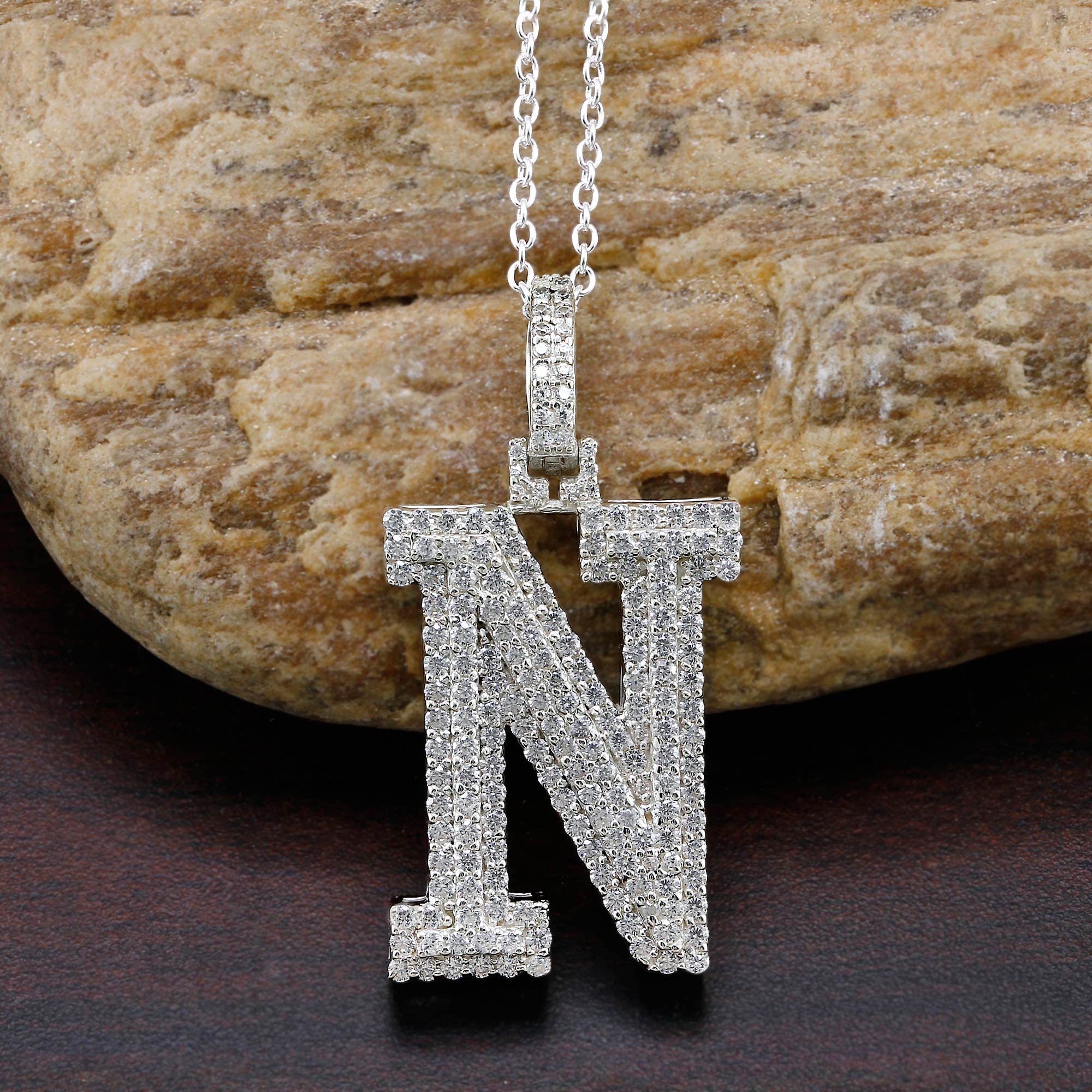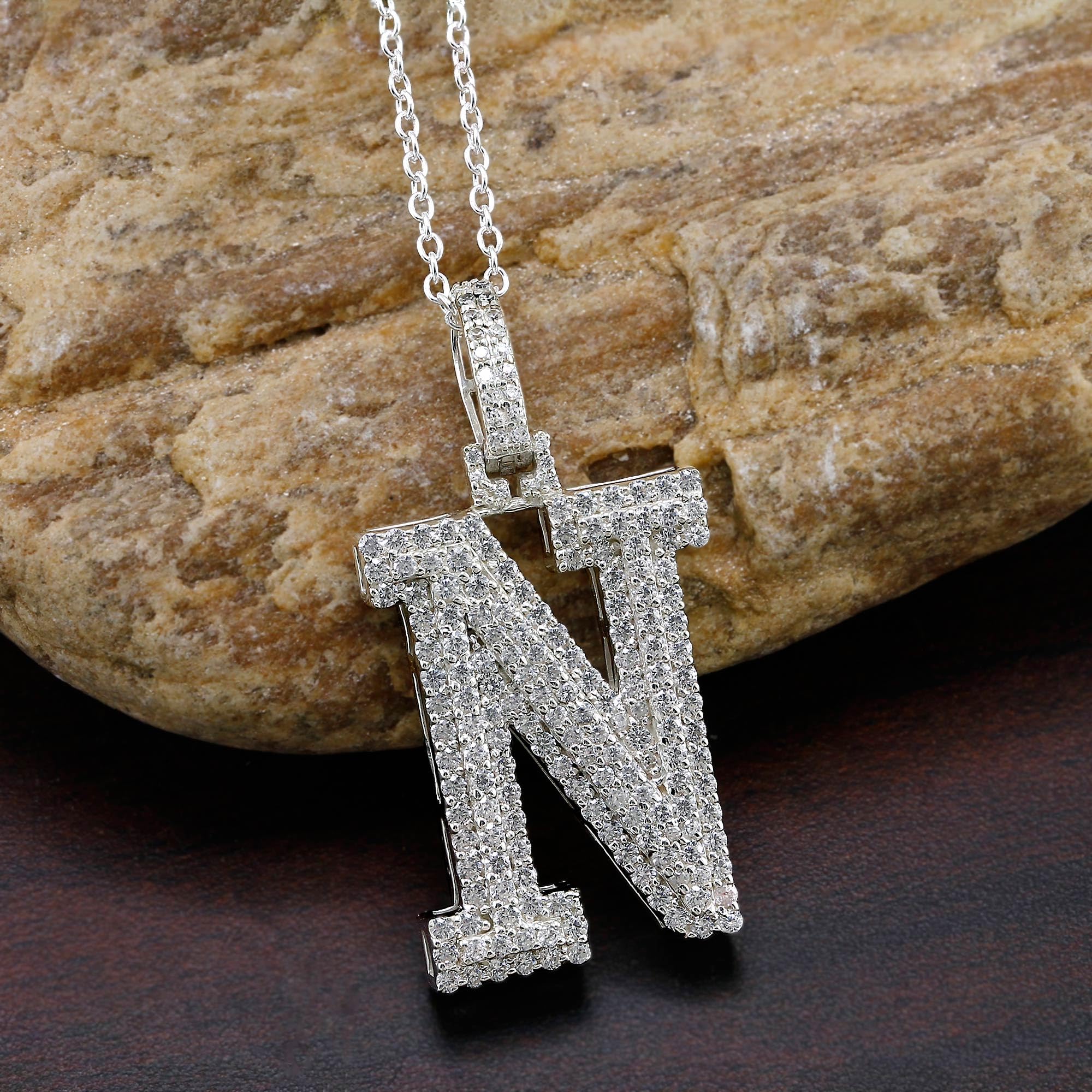 Initial Letter Necklace For Women: Classic Rhodium Plated Initial Letter Pendant, Set With Sparkling Moissanite Diamonds. Wearing A Initial Letter Necklace Is A Classic Way To Make A Statement! With Memories Of Happiness And Laughter, Showing Off Your First Name, Your Last Name, Or Even Alma Mater! 1.90 Ct Moissanite Pendant D Color Vvs1 Clarity Excellent Cut Moissanite.