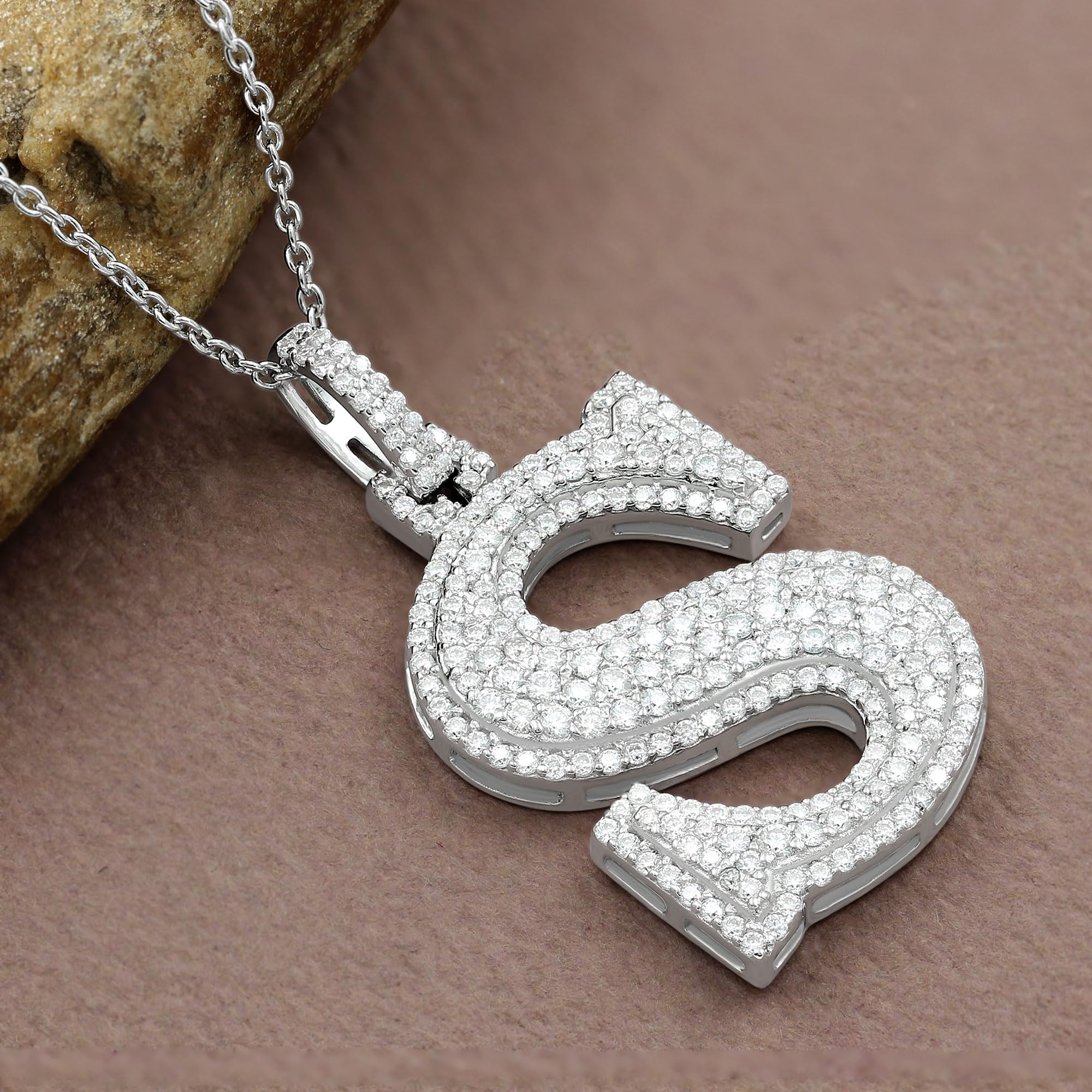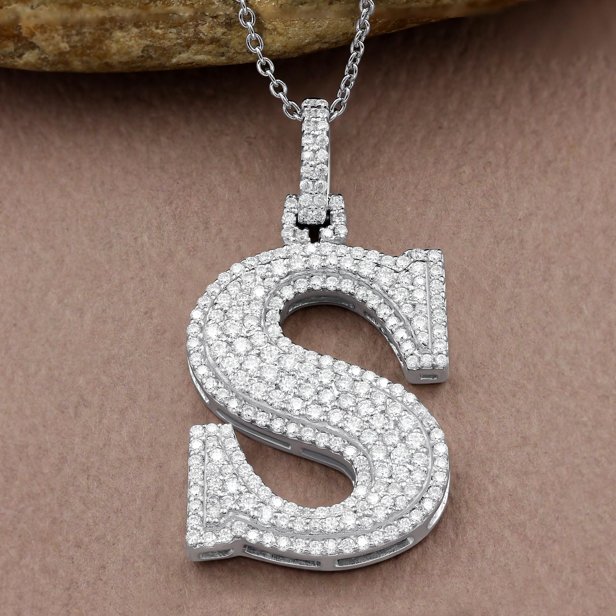 Initial Letter Necklace For Women: Classic Rhodium Plated Initial Letter Pendant, Set With Sparkling Moissanite Diamonds. Wearing A Initial Letter Necklace Is A Classic Way To Make A Statement! With Memories Of Happiness And Laughter, Showing Off Your First Name, Your Last Name, Or Even Alma Mater! 1.90 Ct Moissanite Pendant D Color Vvs1 Clarity Excellent Cut Moissanite.