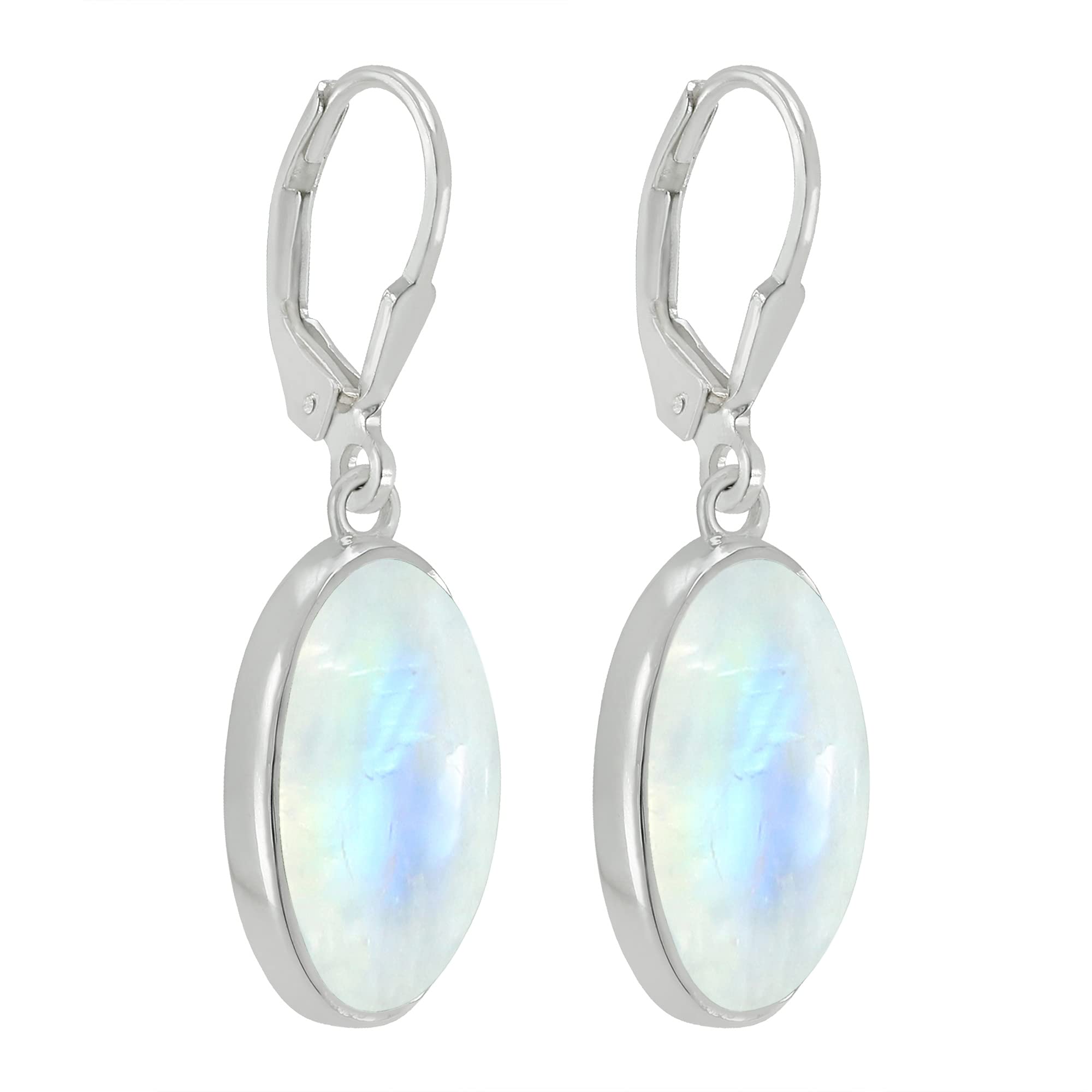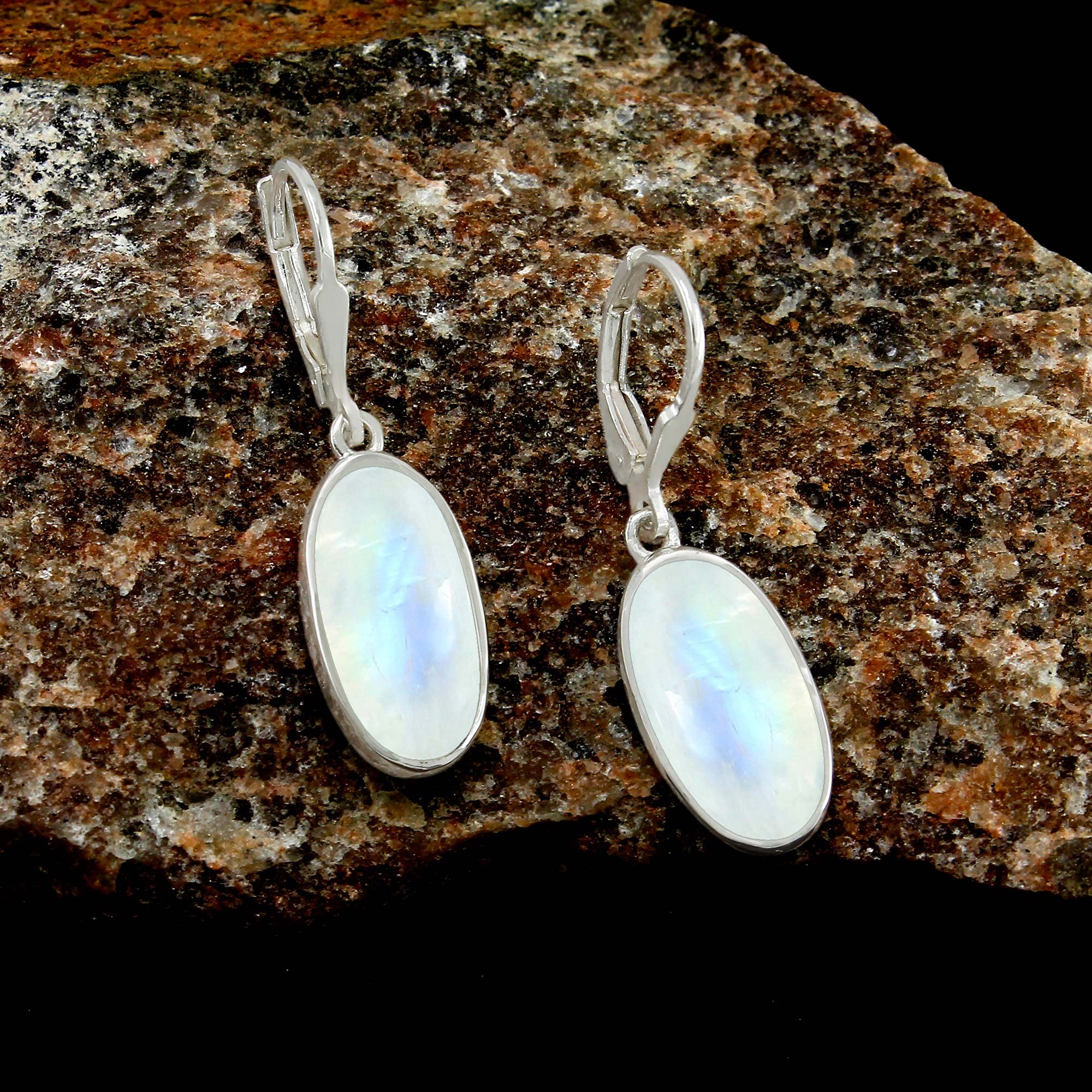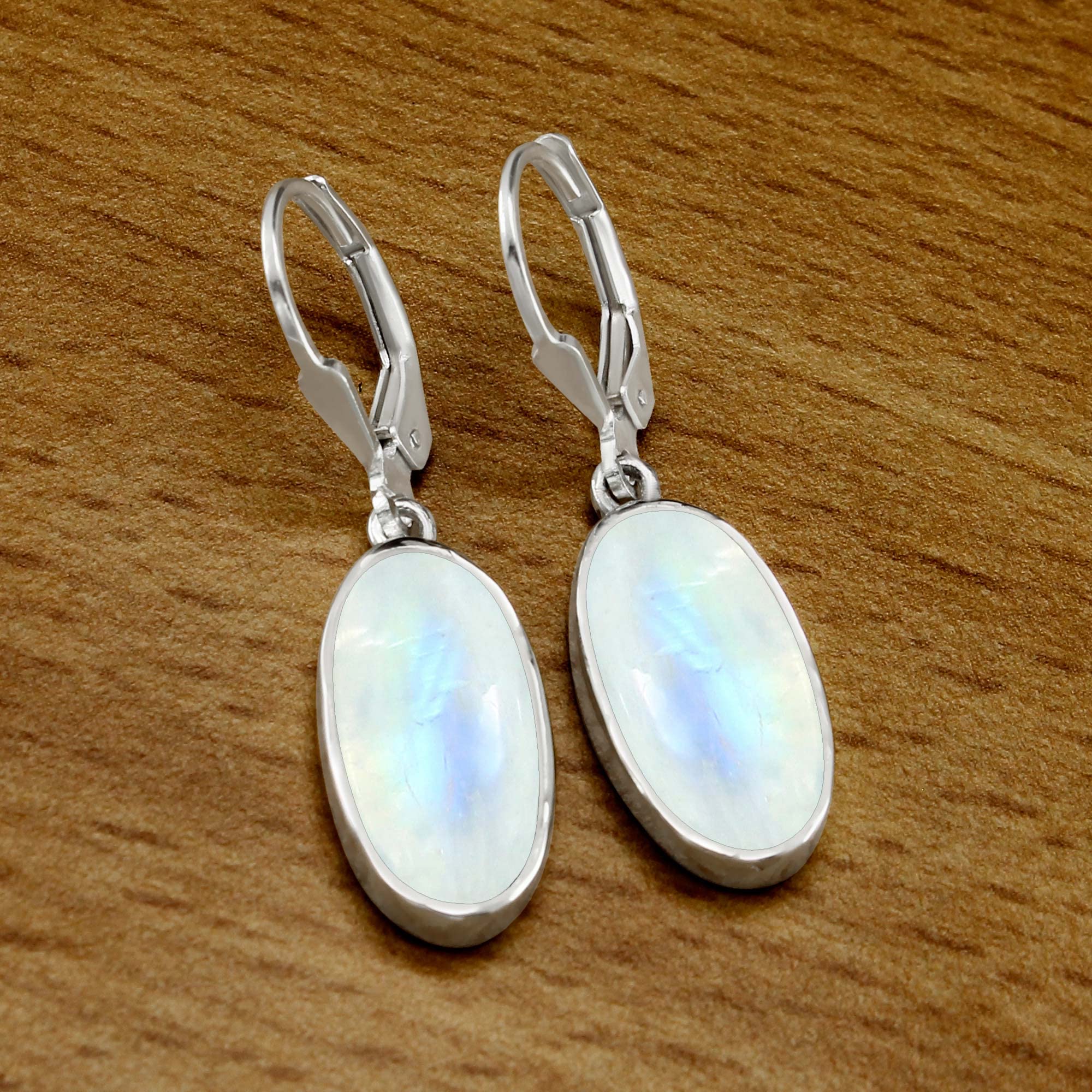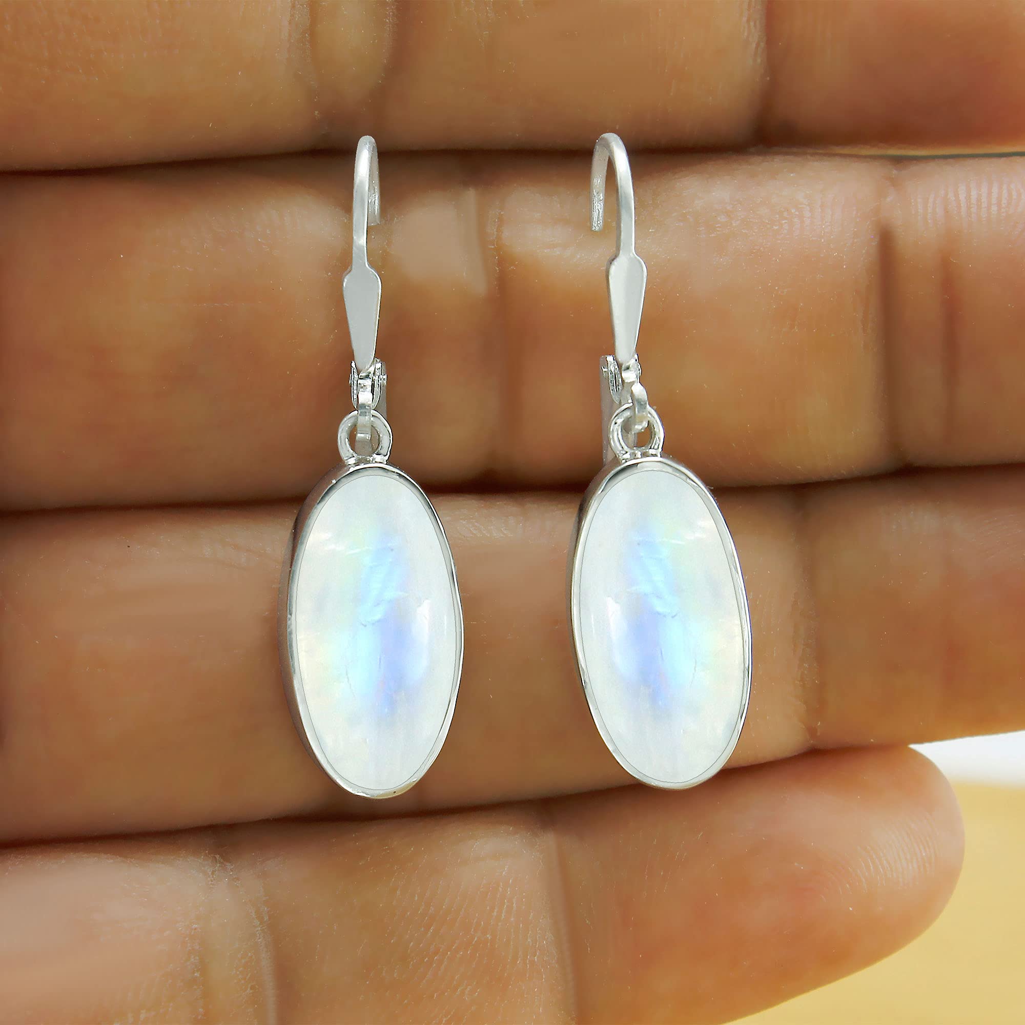 • Featured/Specifications Dimension of Earrings : 33mm X 10mm| Metal: Solid 925 Sterling Silver (925/1000) | Finish: High Polish | Stone: Natural Moonstone, | Stone Size: 8x16mm Oval