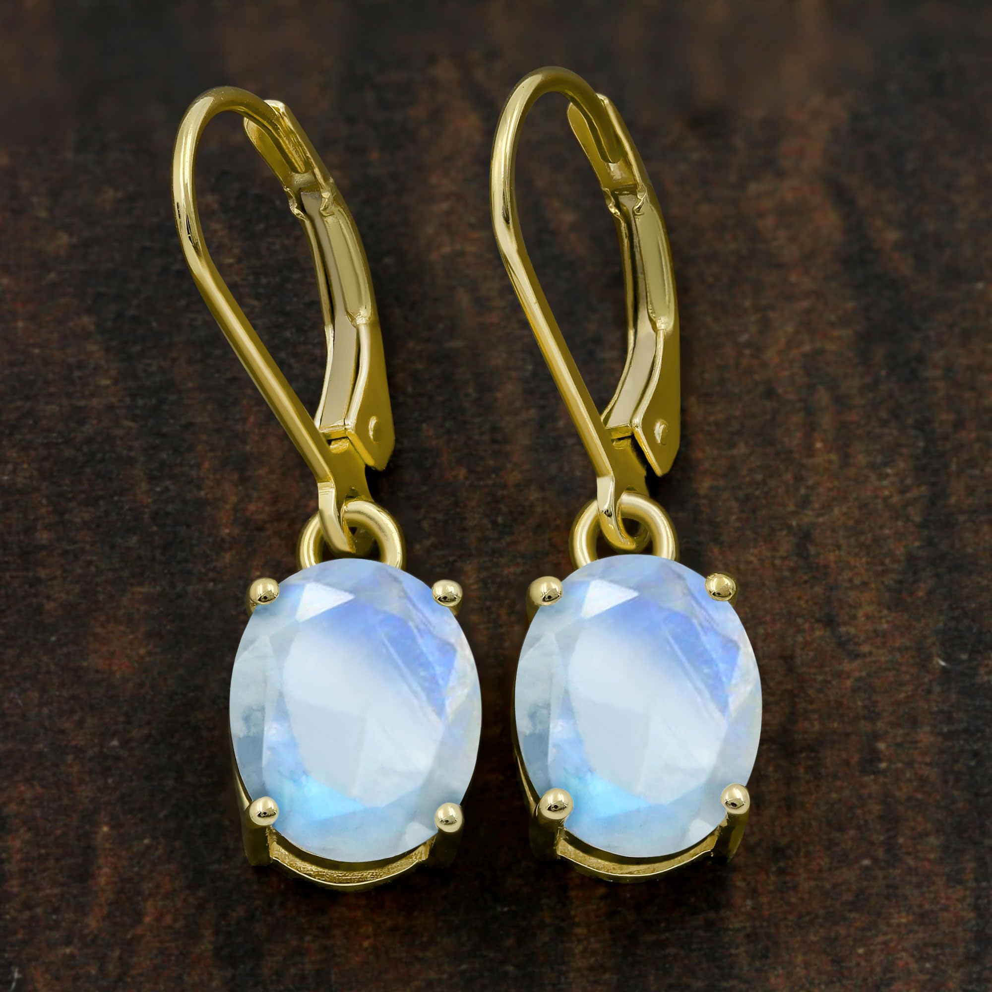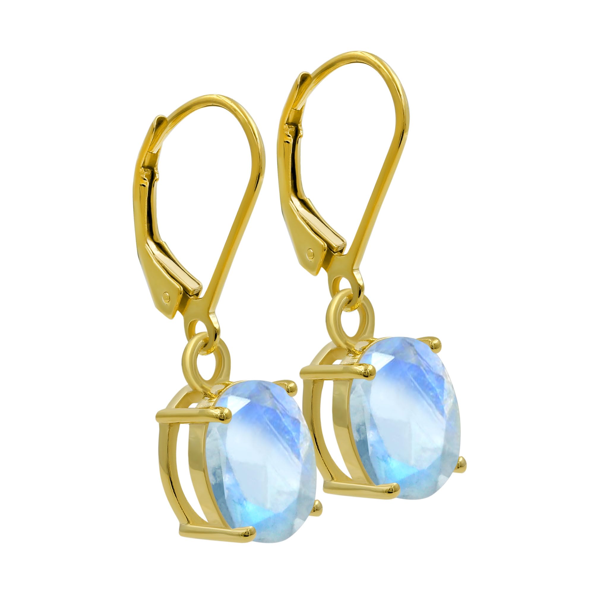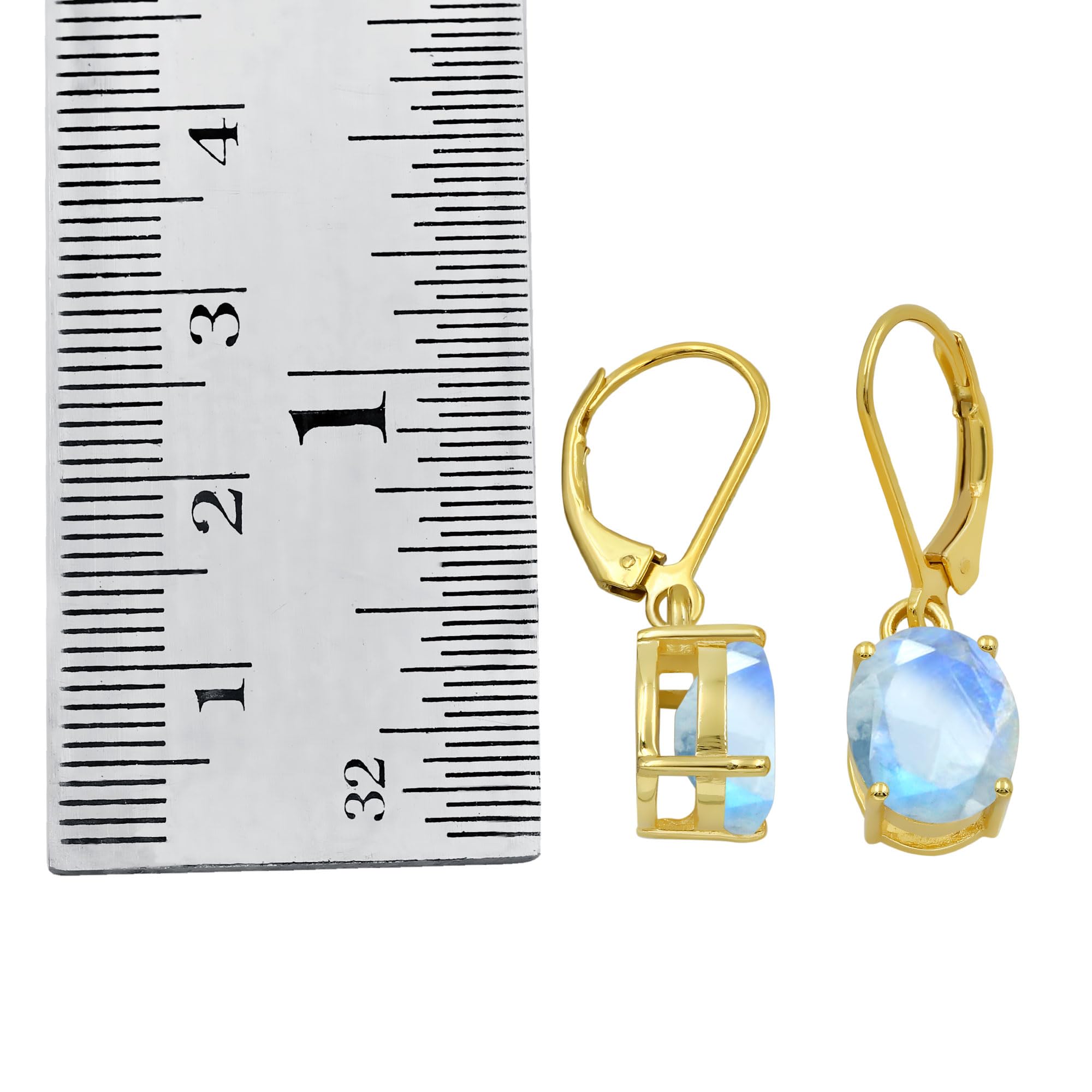 • Featured/Specifications Earring Dimensions: 25mm X 10mm | Finish: 18K Gold Plated | Stone: Natural Moonstone, | Stone Size: 8x10mm Oval