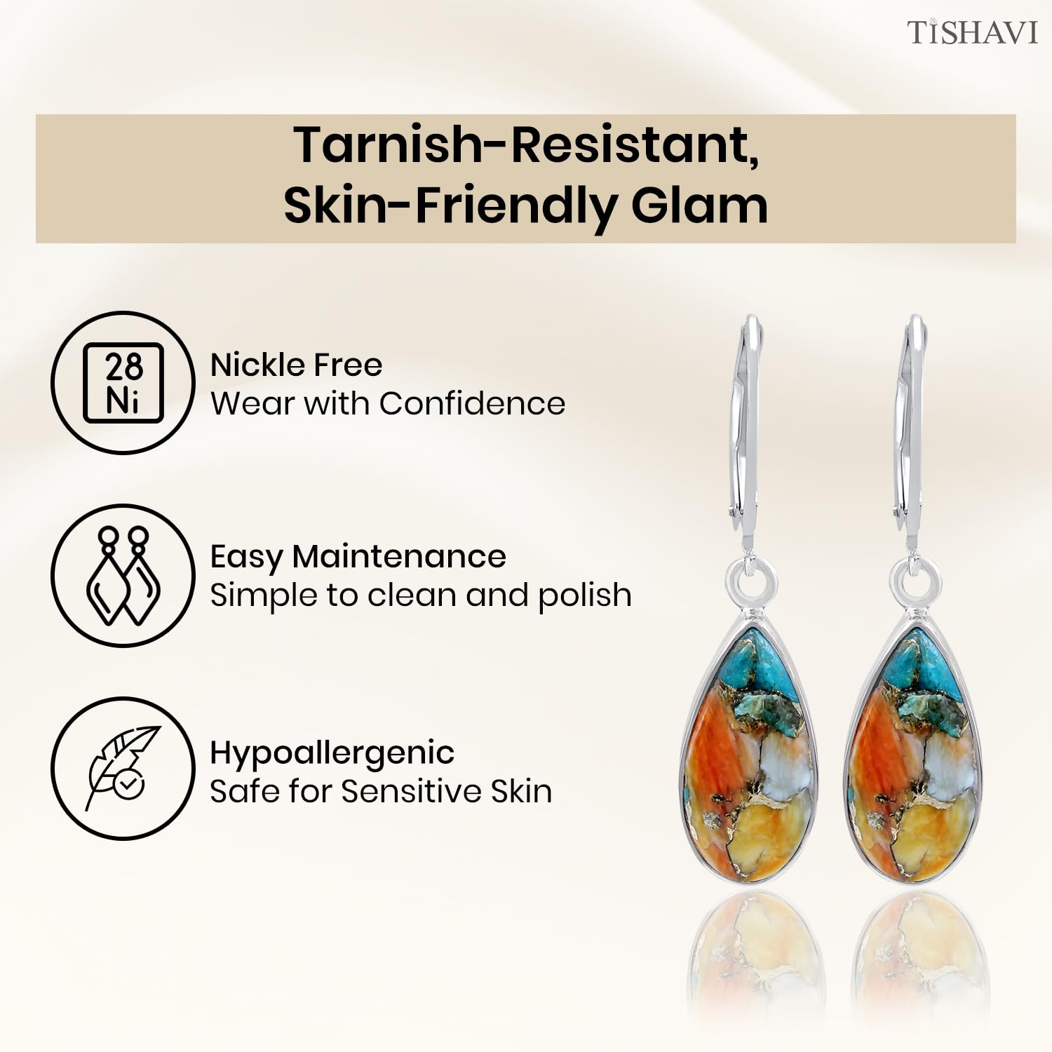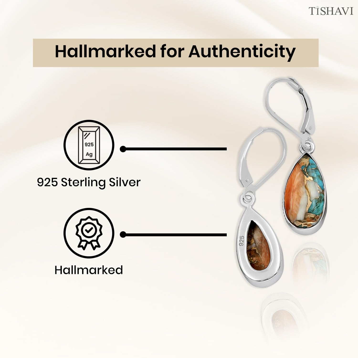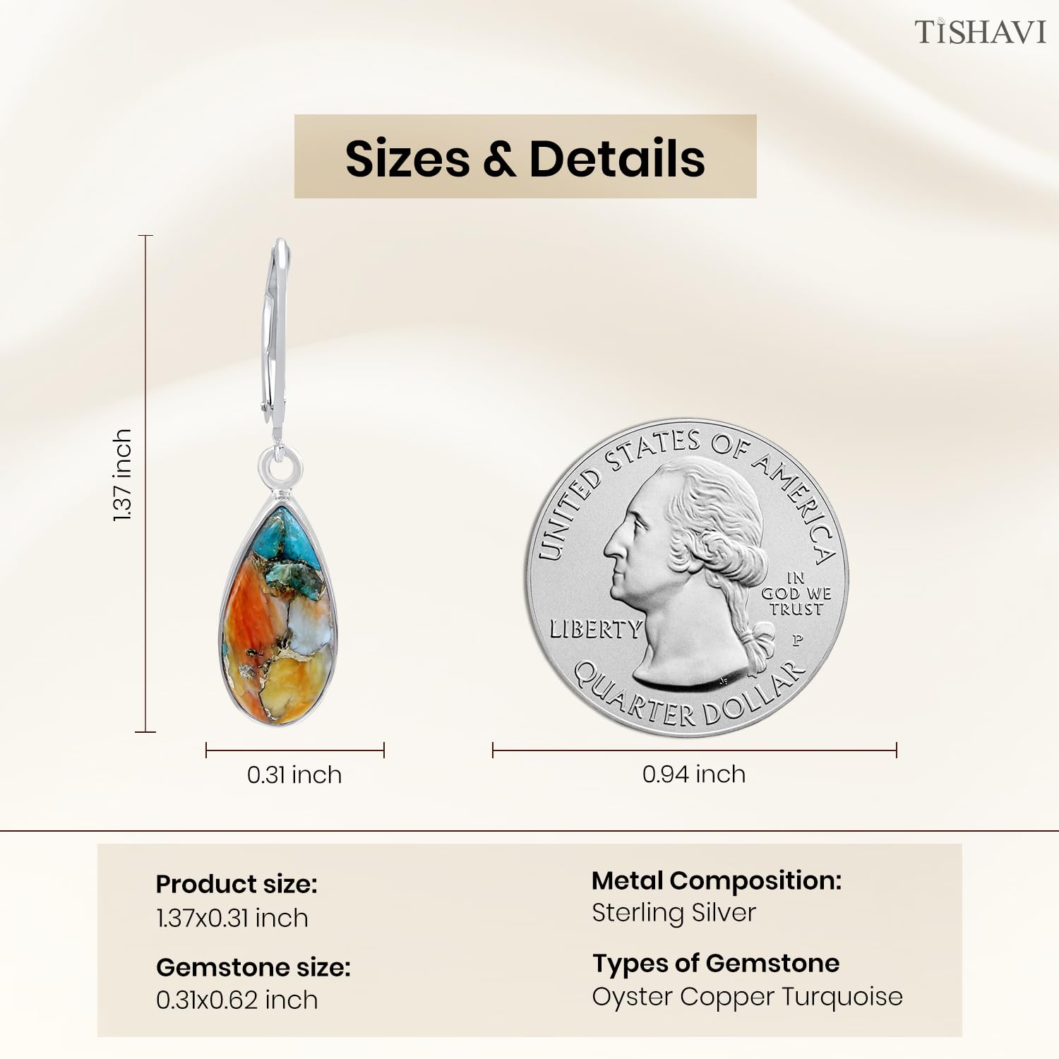 • Featured/Specifications: Dimension: 35 mm x 8 mm | Metal: Solid 925 Sterling Silver (925/1000) | Finish: High Polish | Stone: Oyster Copper Turquoise | Stone Size: 8x16 mm Pear