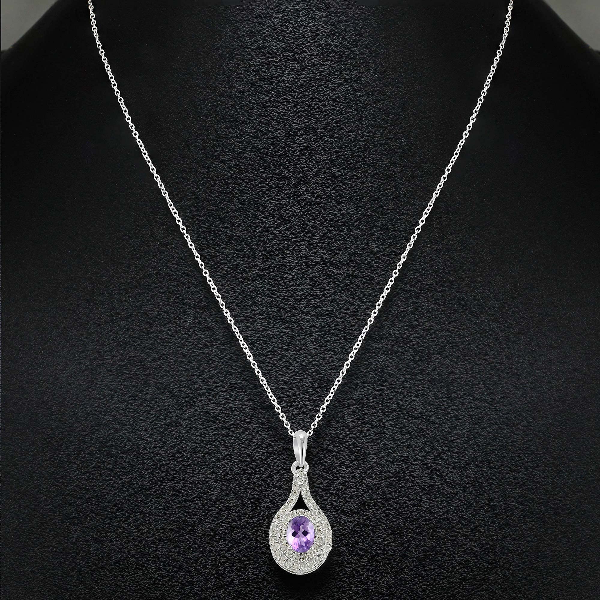 • Featured/Specifications Dimension : 13.5X30.3 MM | Metal: Solid 925 Sterling Silver (925/1000) | Finish: High Polish | Stone: Natural Amethyst, | Stone Size: 6x8mm Oval, 1.50x1.50mm Round,