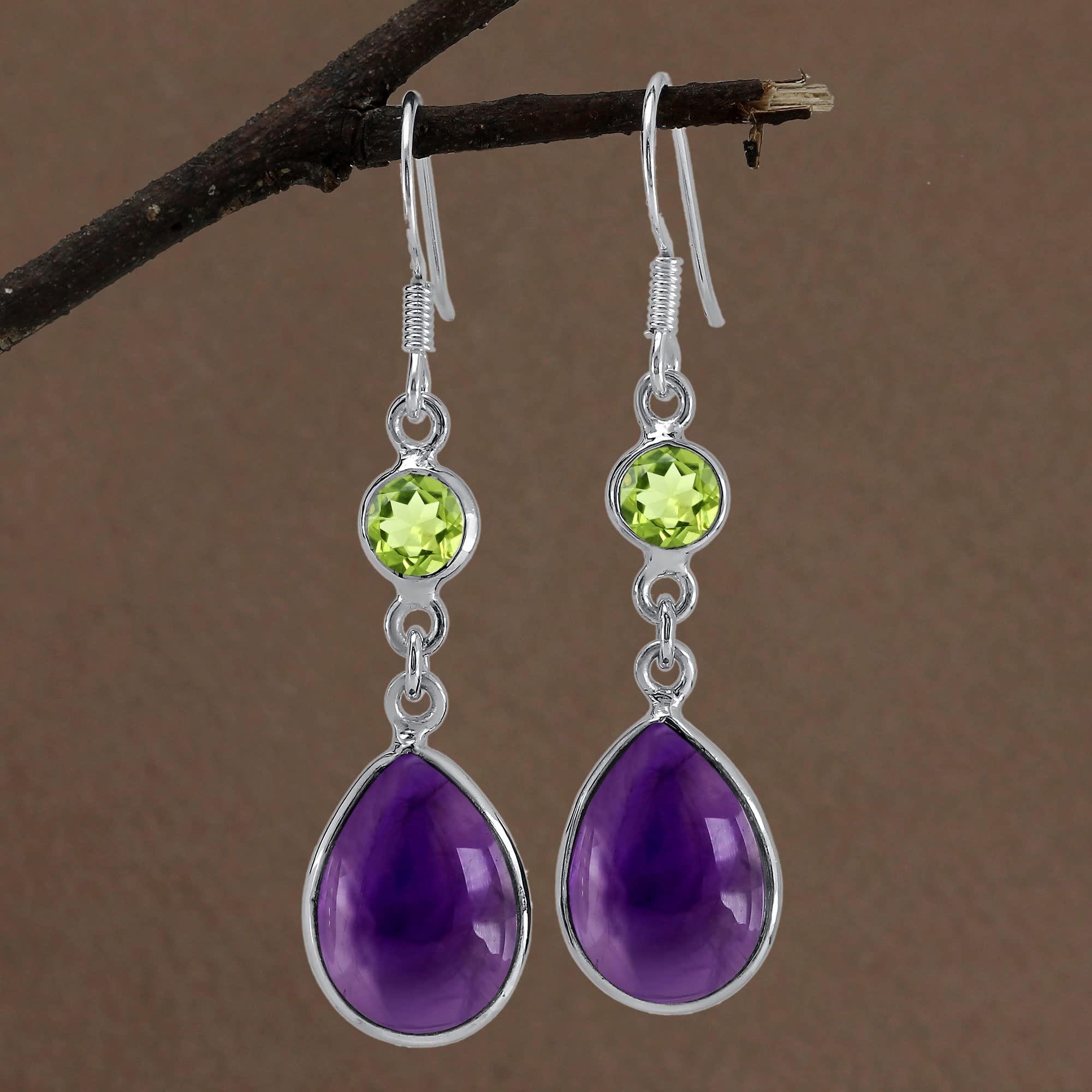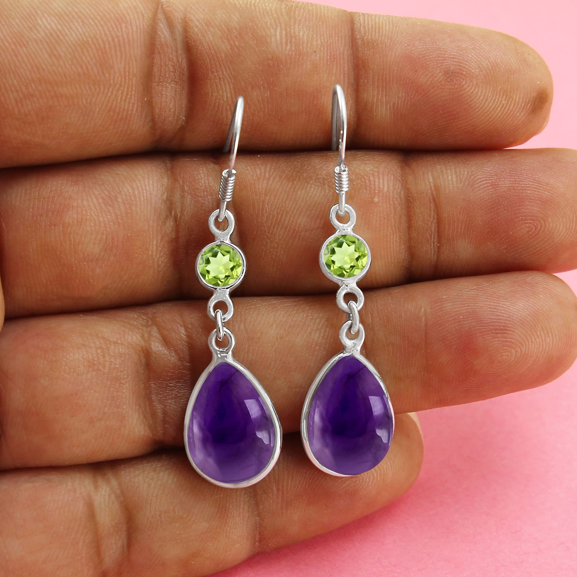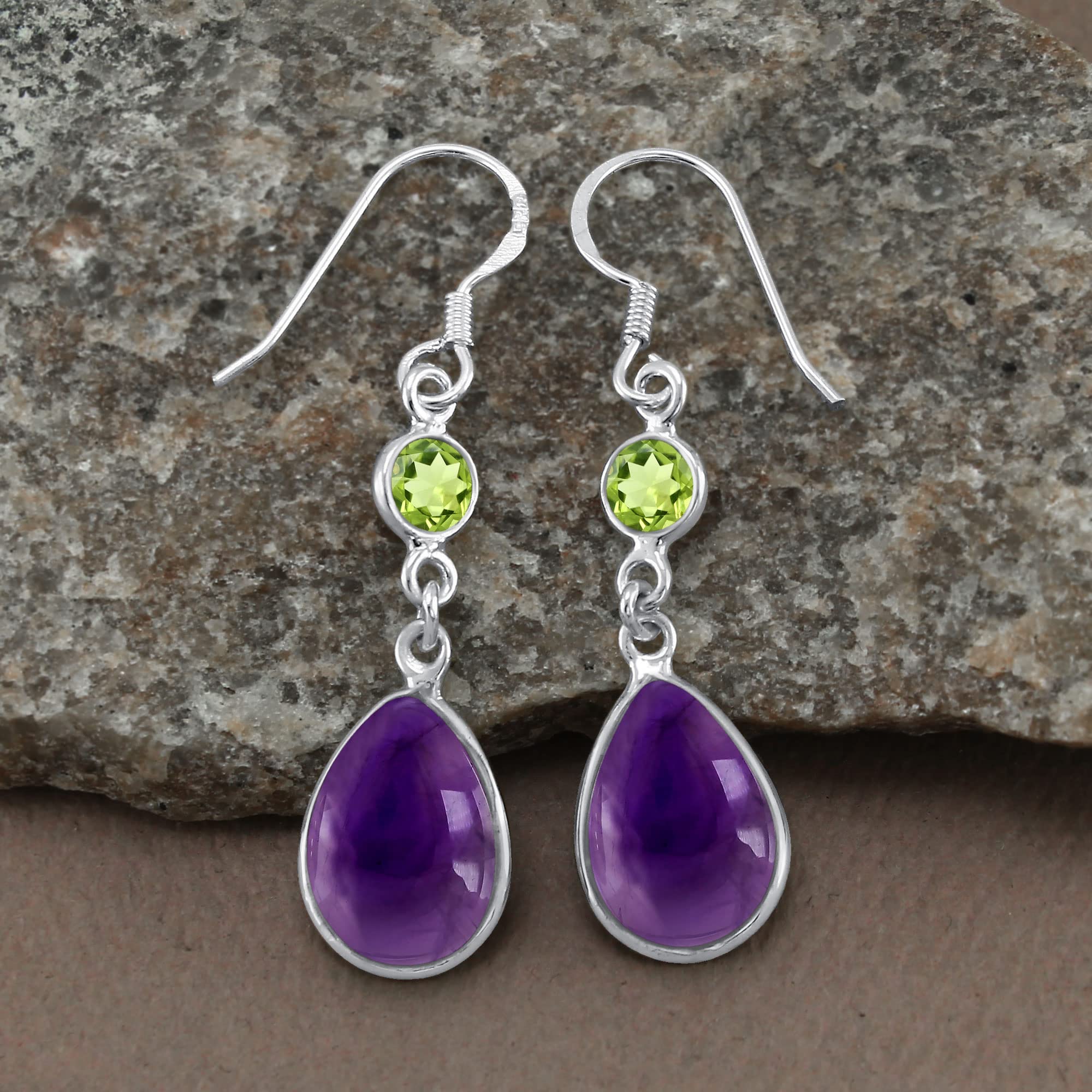 • Featured/Specifications: Dimension: 45mm x 11mm Metal: Solid 925 Sterling Silver (925/1000) | Finish: High Polish | Stone: Natural Amethyst, Peridot | Stone Size: 10x14mm Pear, 5mm Round