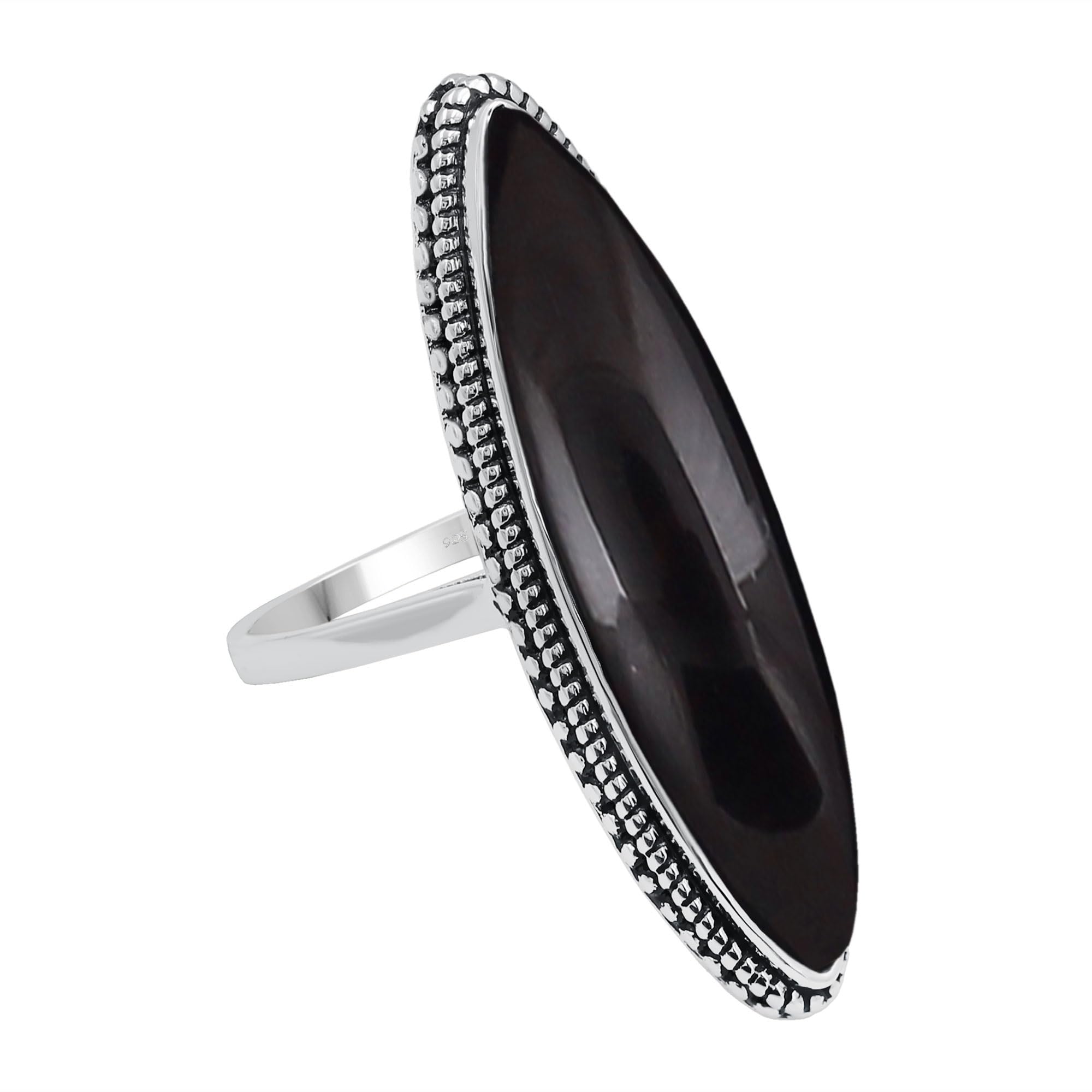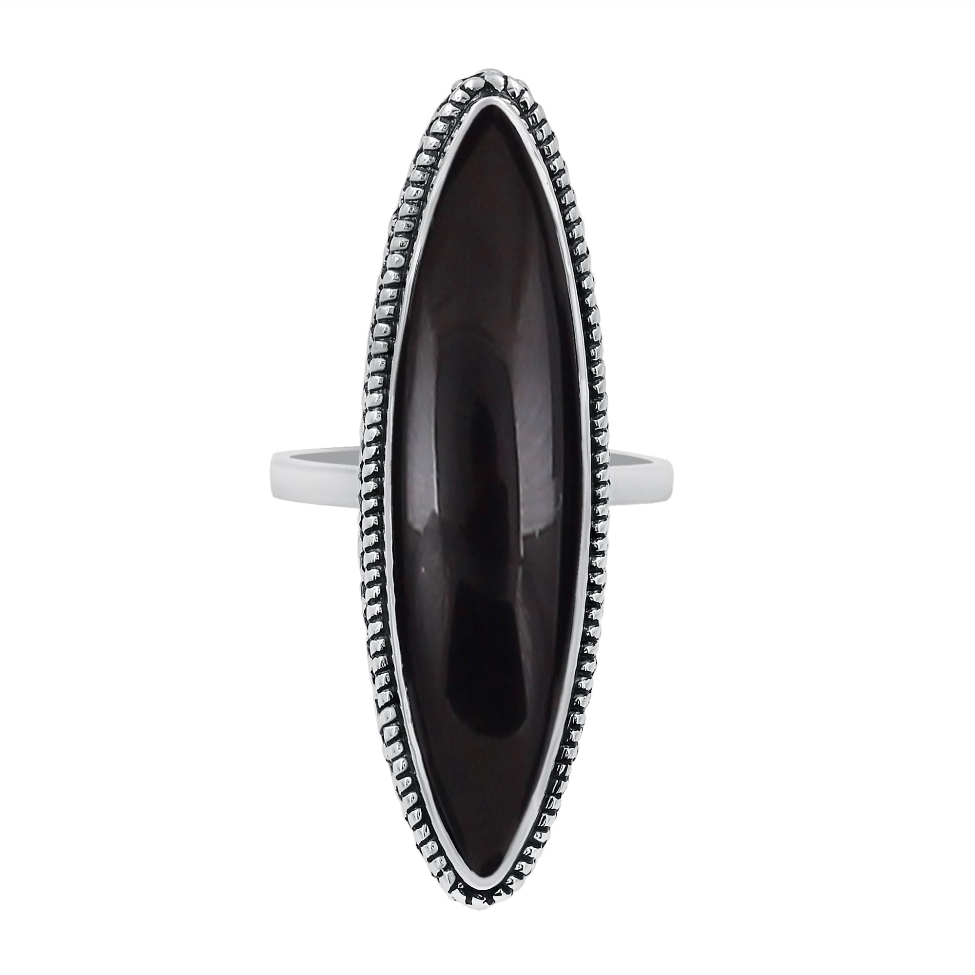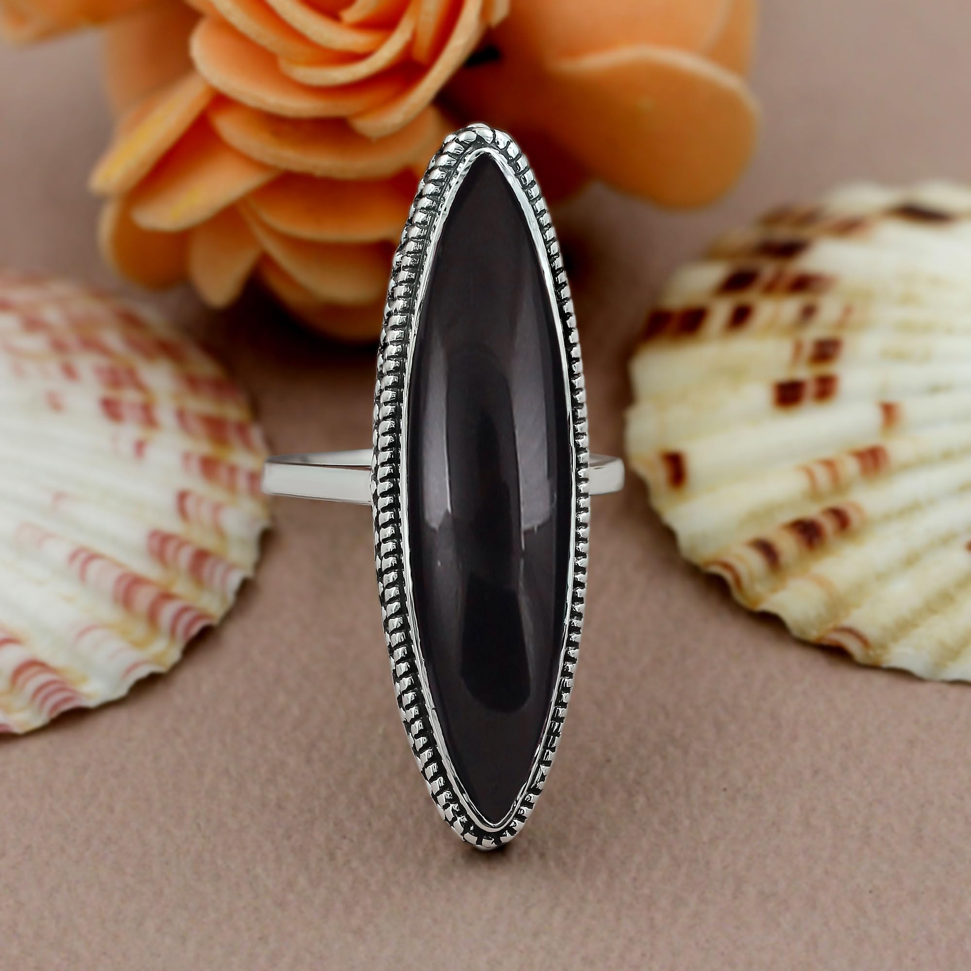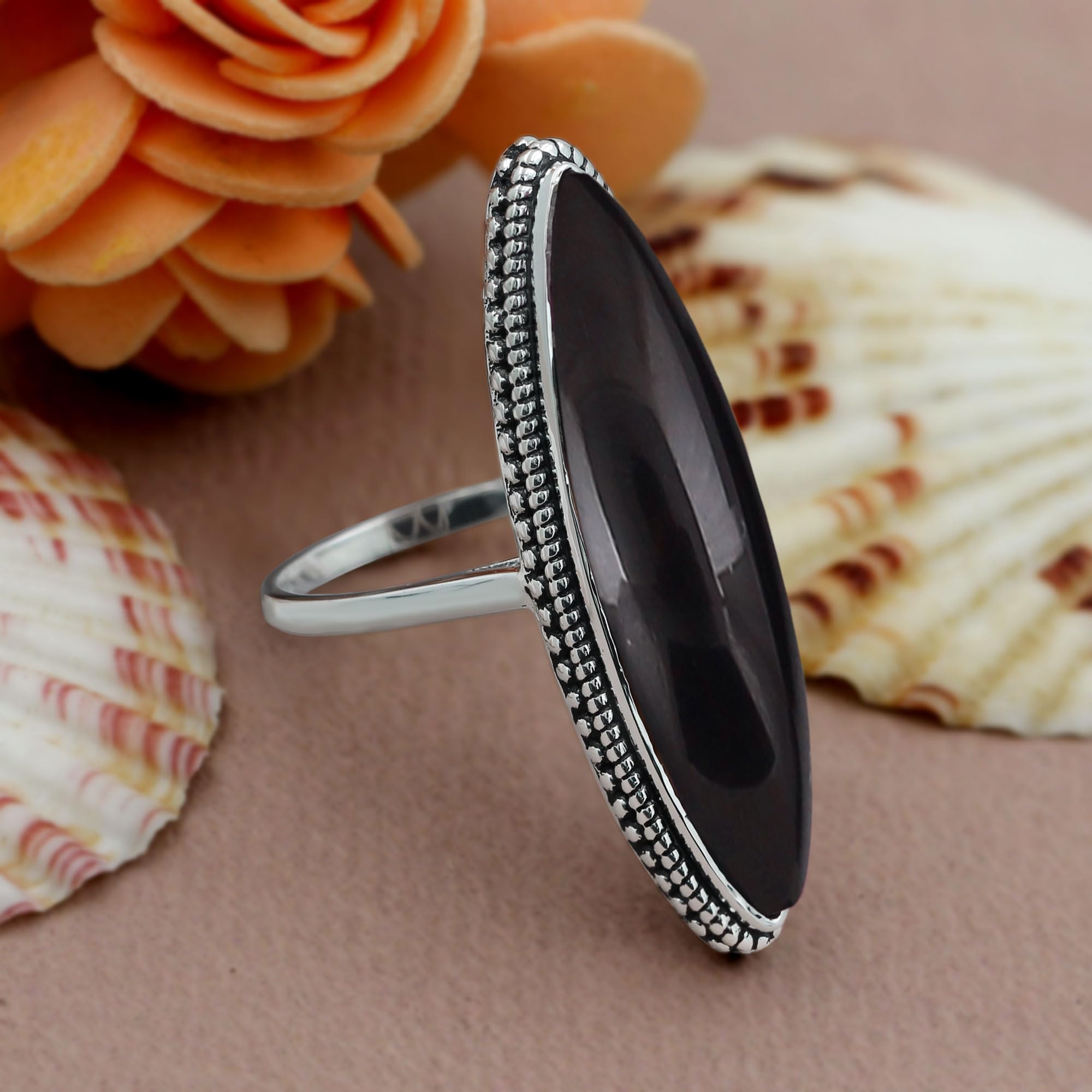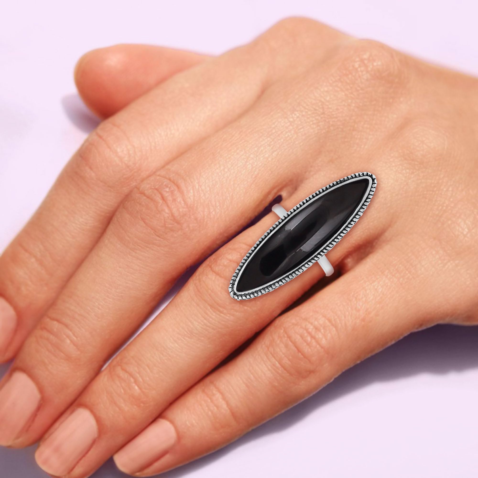• Gemstone - Good Quality Black Onyx Gemstone Oval 9X40 Mm Marquise. This Blue Silver Ring Is For Traditional July Birthstone.