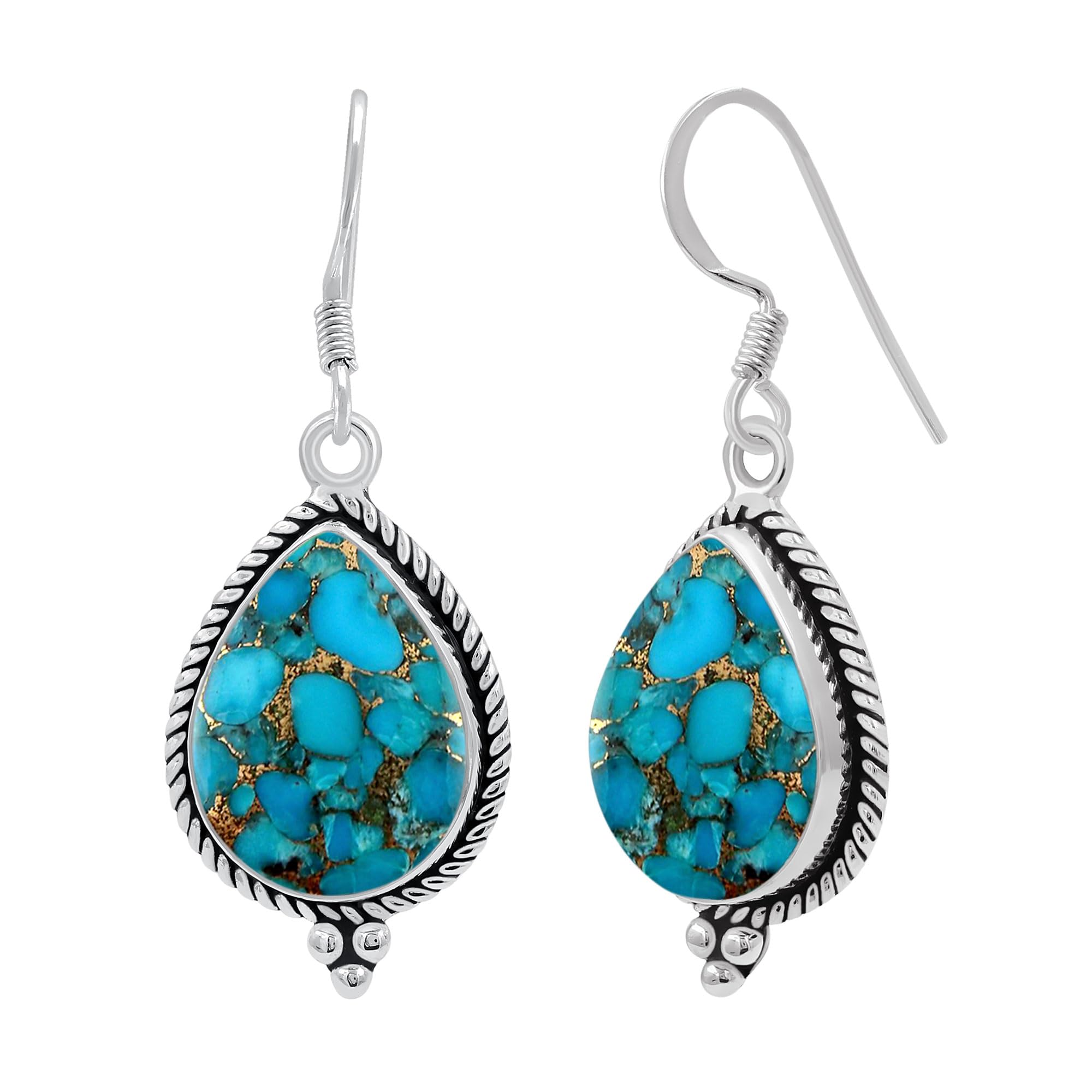 • Perfect For All Occasions: Looking For The Perfect Compliment Piece? With This Clean And Classy Look, Our Sterling Silver Pear Semi Precious Natural Blue Copper Turquoise Dangle Earring Can Be Worn For A Casual Everyday Look Yet It Can Complement A More Upscale Outing. These Would Also Make A Heartfelt Gift For Someone Special- An Easy Yet Great Choice For Your Loved Ones- Perfect For Those Timeless Moments: Anniversaries, Weddings, Mother'S Day, Christmas, And Birthdays.