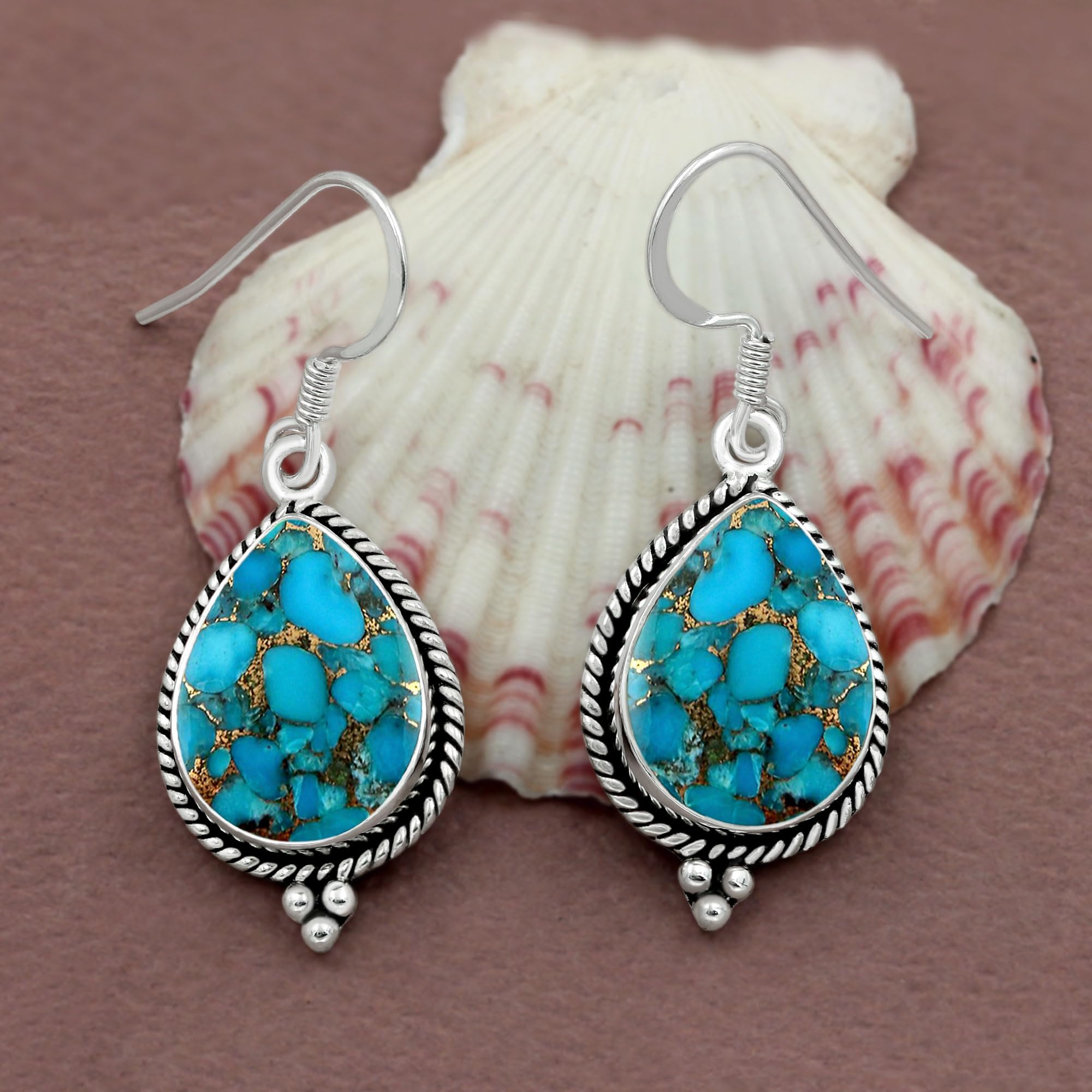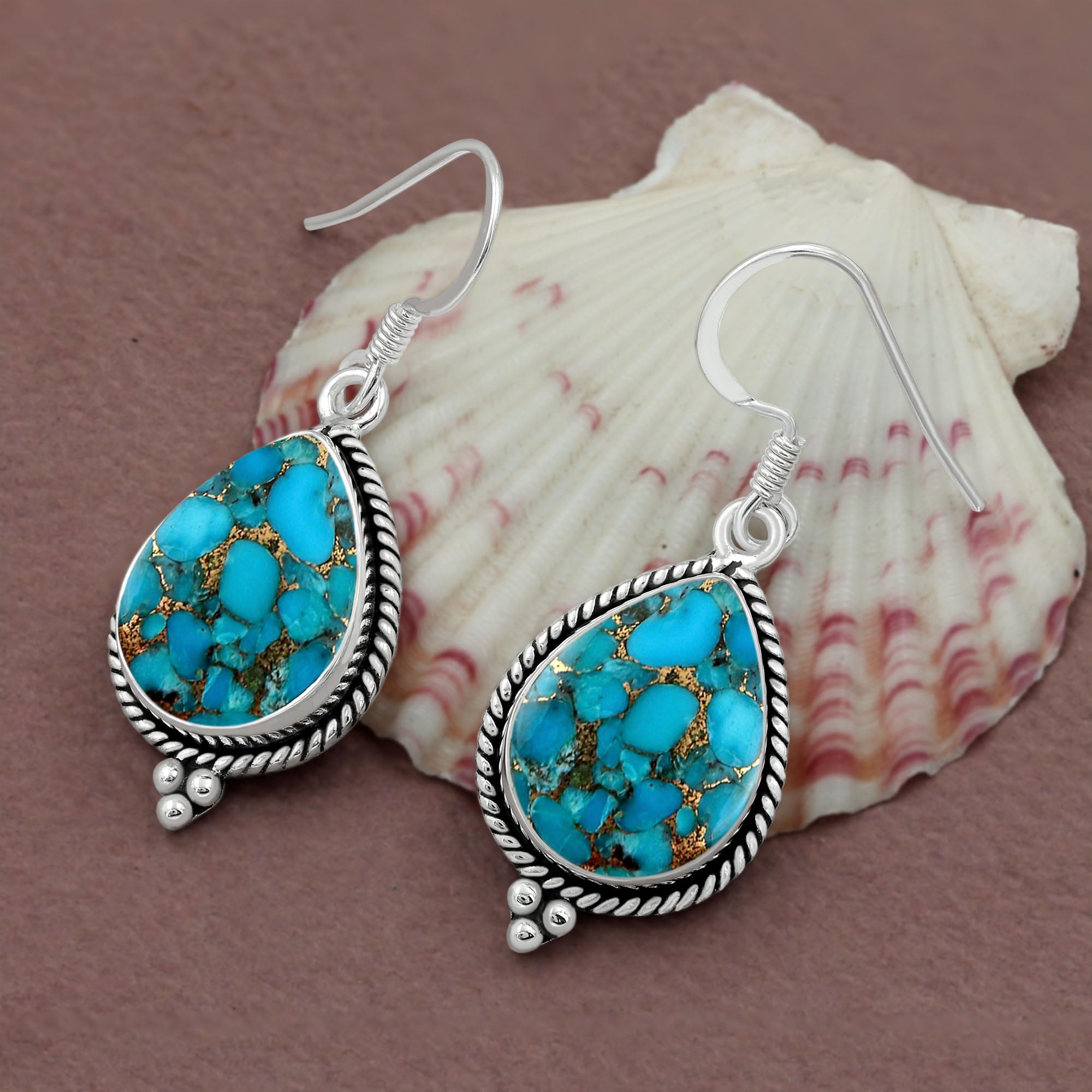 • Sterling Silver 12X16mm Blue Copper Turquoise Dangle Earrings: Silver Dangle Earrings Are Made Of Real 925 Sterling Silver Safe And Friendly To The Sensitive Ears And Never Turn Your Ears Blue Or Red. These Natural Blue Copper Turquoise Are Well Made Set Of Earrings And Will Let You Get Tons Of Compliments.