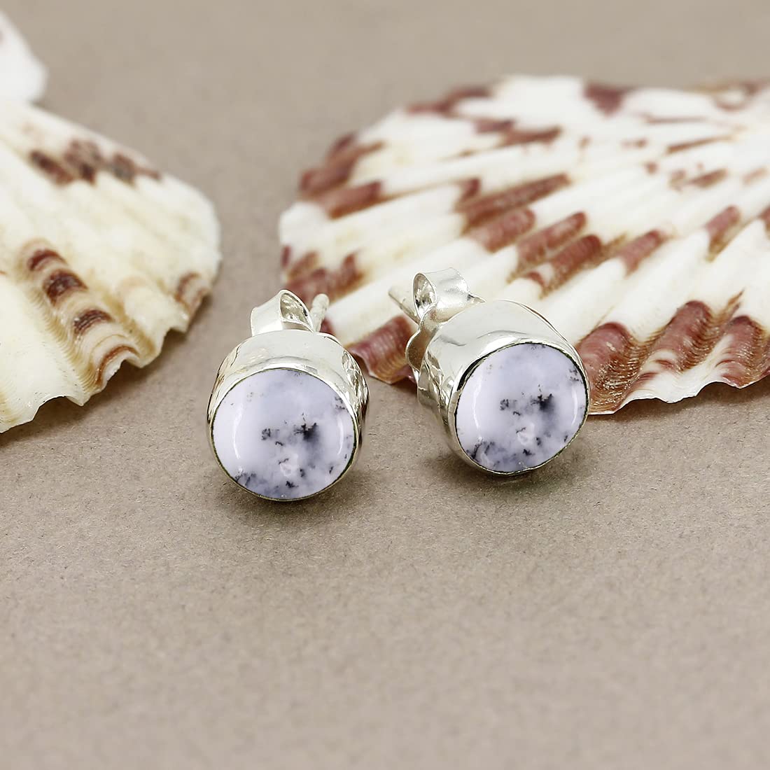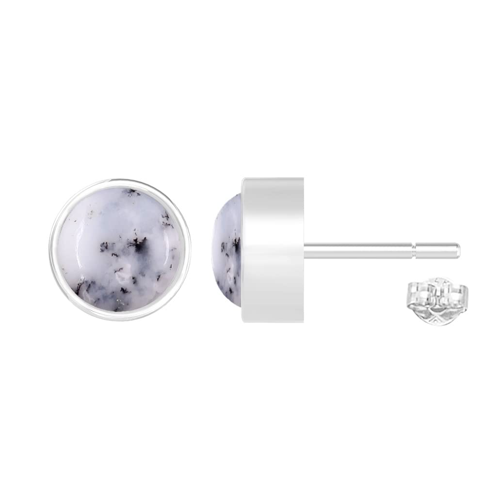 • Features/Specifications:: SKU No: HE121 | Metal: 925 STERLING SILVER | Finish: High Polish | Stone: Natural Dendrite Opal |Gemstone Size: 7 mm Rounds