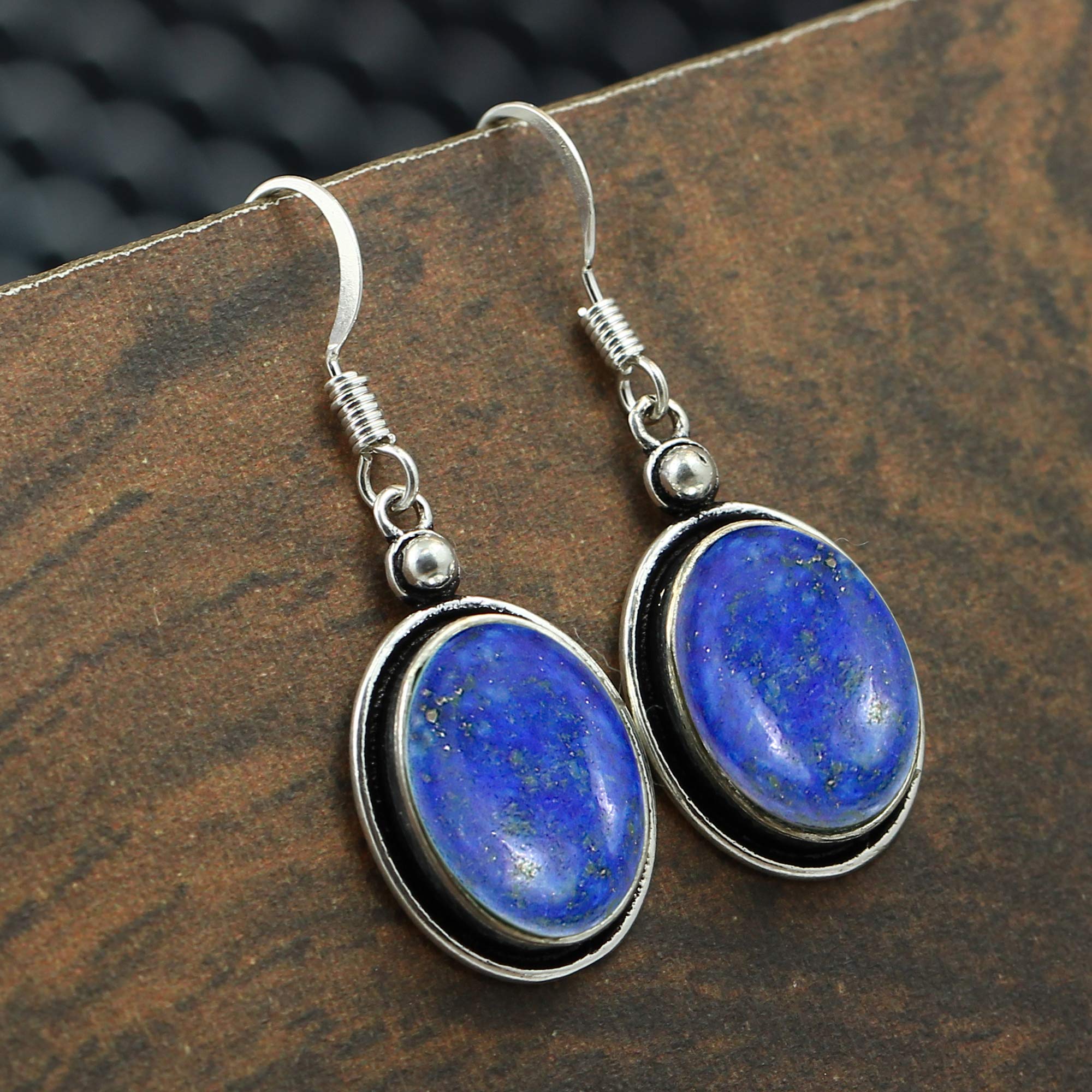 • Featured/Specifications Dimension of Earrings : 28mm X 12mm| Metal: Solid 925 Sterling Silver (925/1000) | Finish: High Polish | Stone: Natural Lapis Lazuli, | Stone Size: 10x14mm Oval