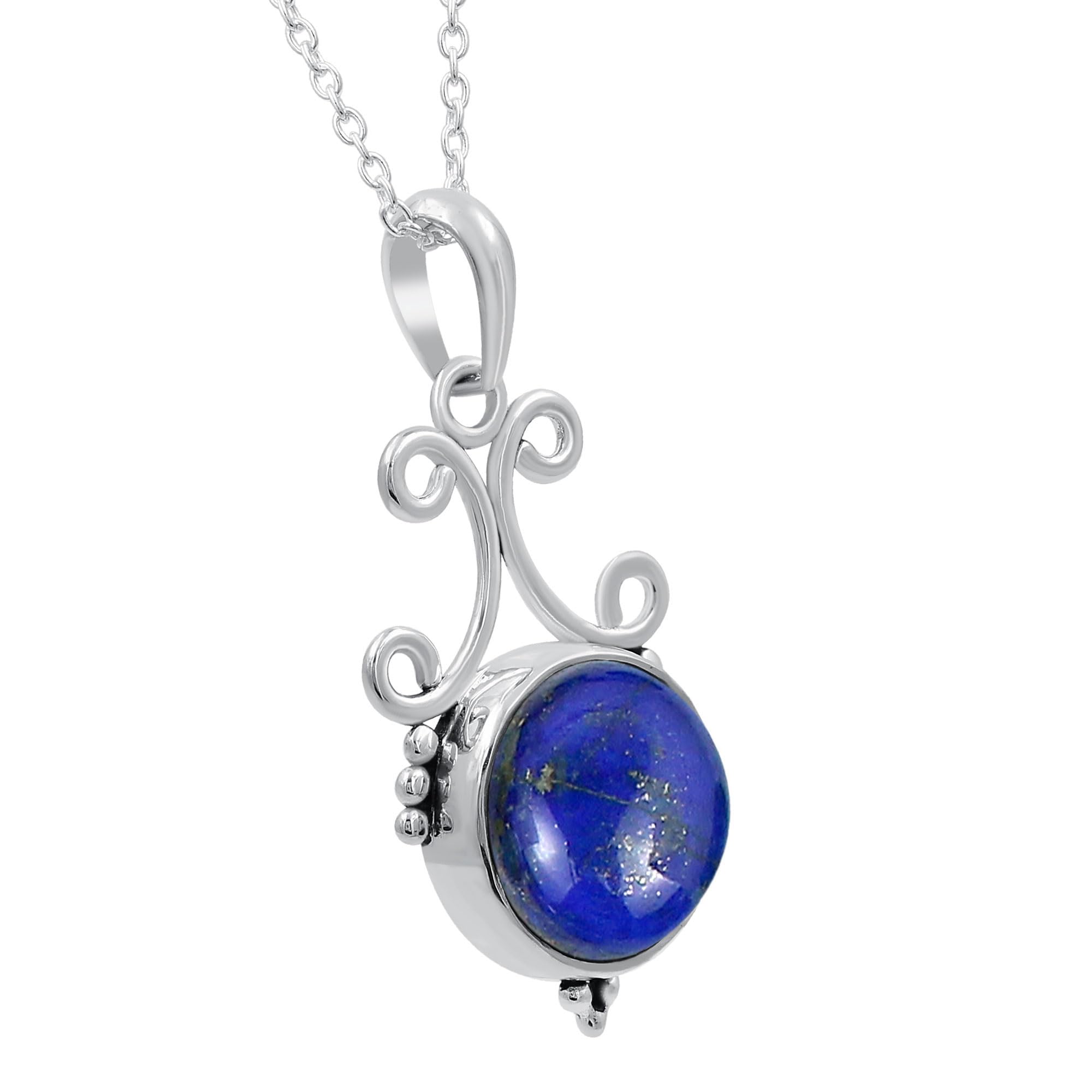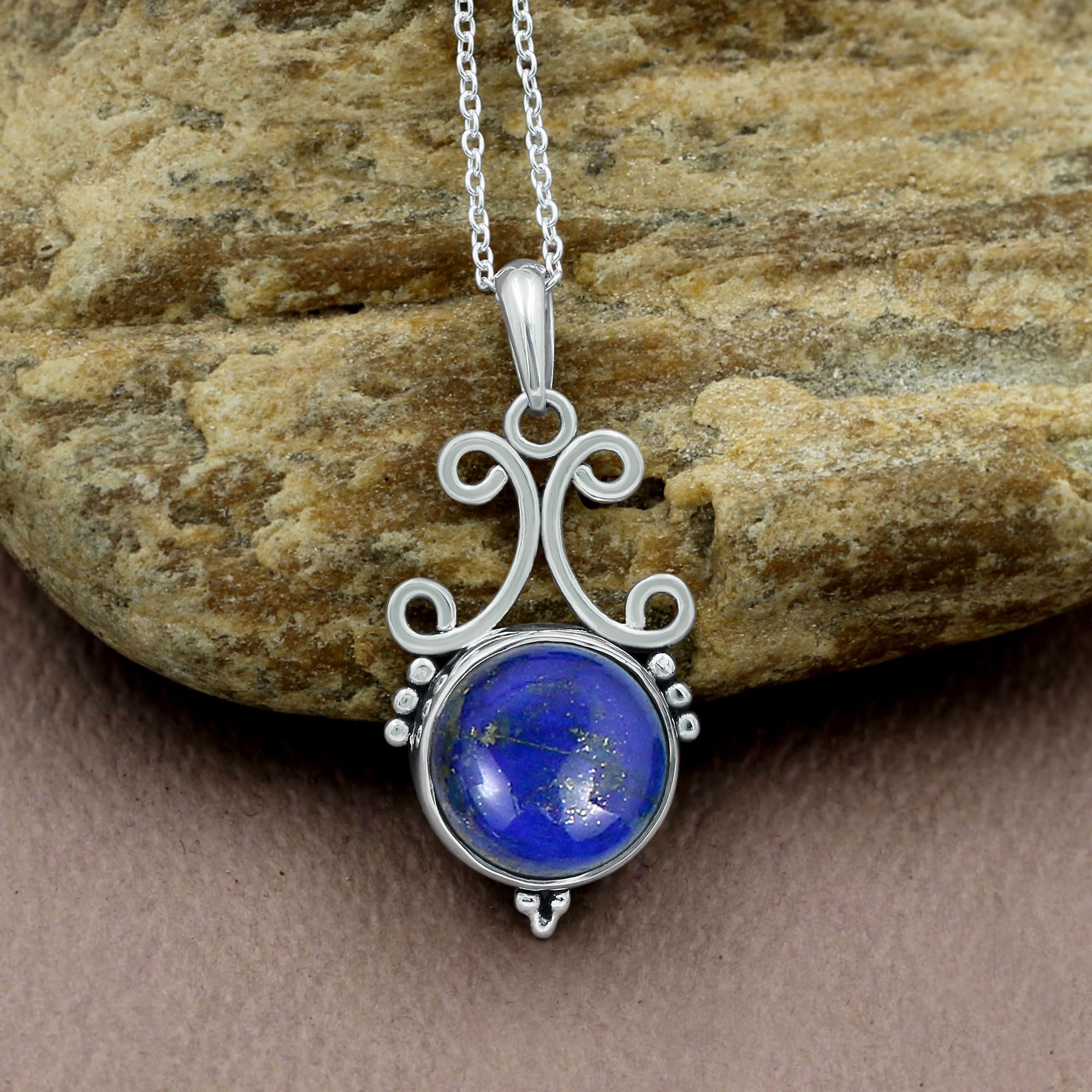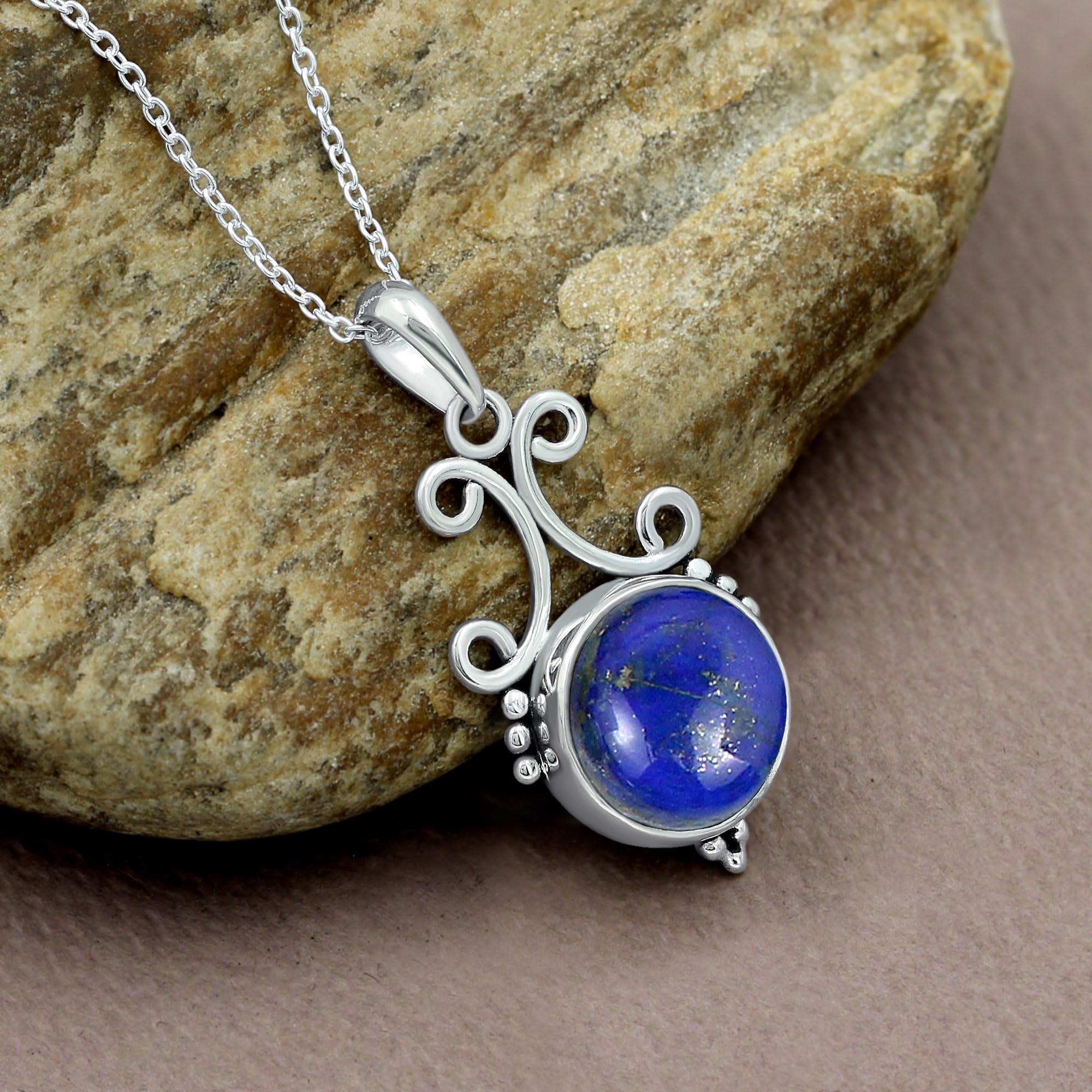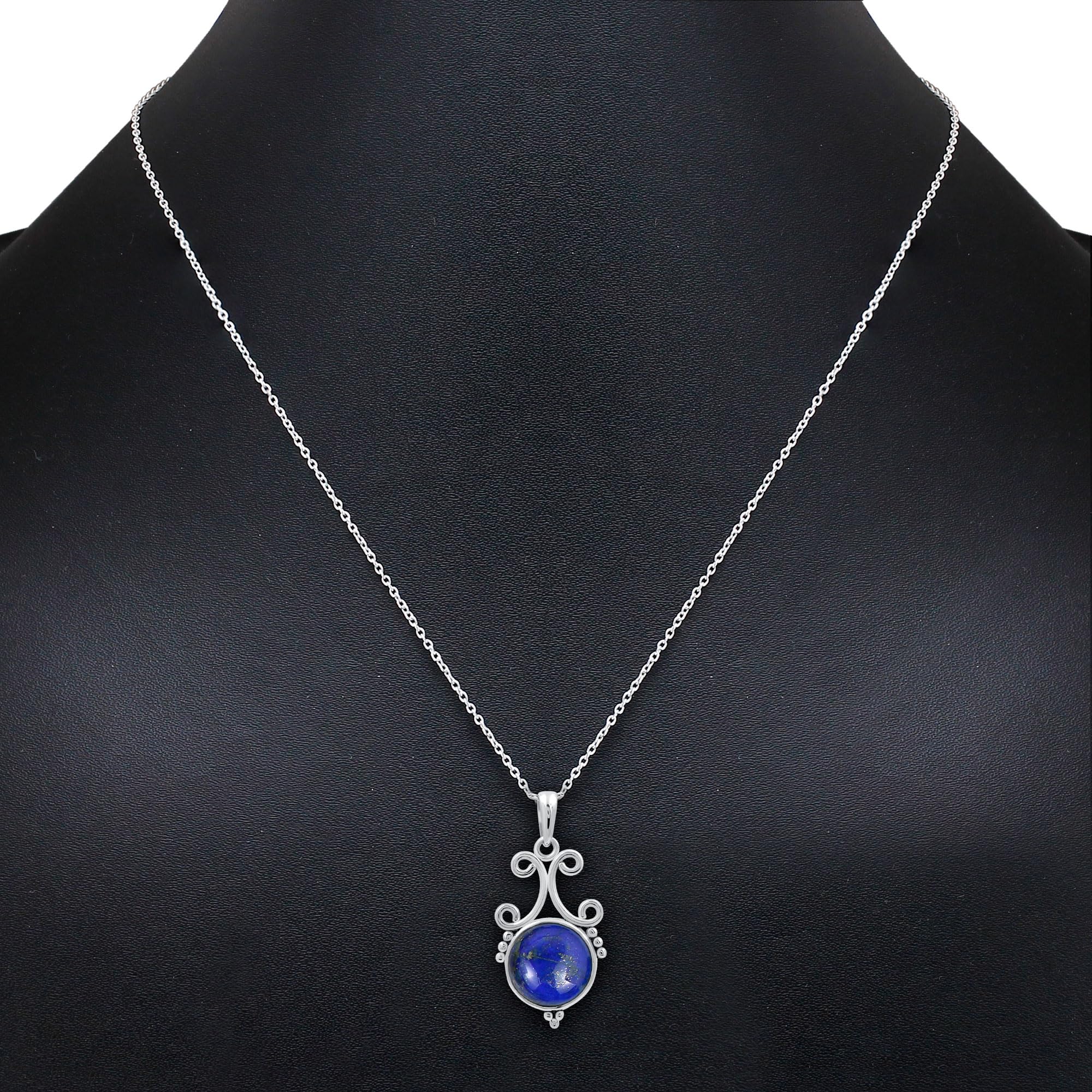 • Dimension of Pendant: 34 X 16 CM. Round Sterling Silver Solitaire Pendant Necklace for Women 18 Inch Chain This Beautiful Lapis Lazuli Stone Pendant is Made from the Fine Sterling Silver as Hallmarked with The 925 Metal Stamp. 925 Sterling Silver is Made From 92.5% Silver And 7.5% Copper. The Copper is Added to Stabilize the Silver So That It Can Hold Its Beautiful Shape and Anti Tarnish.