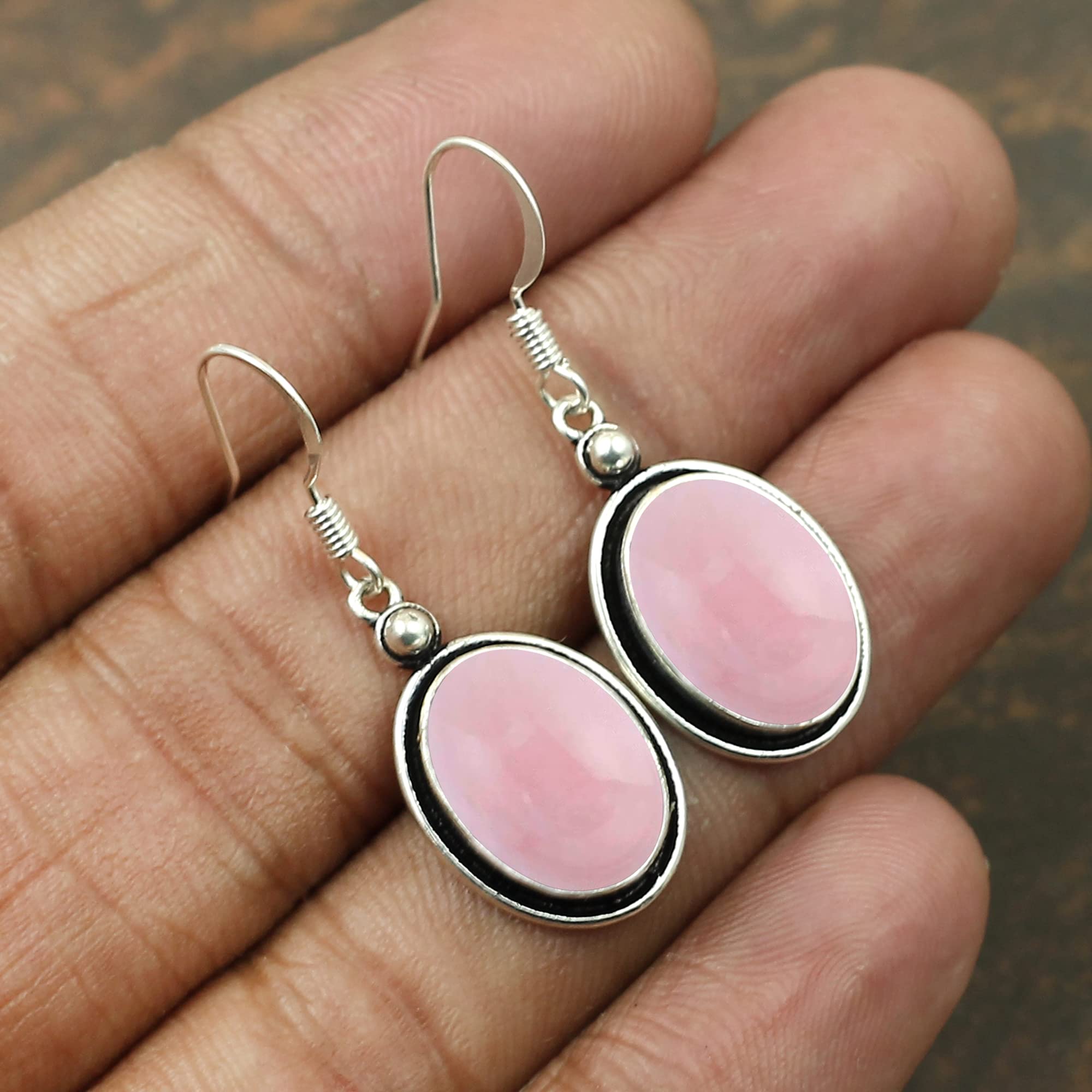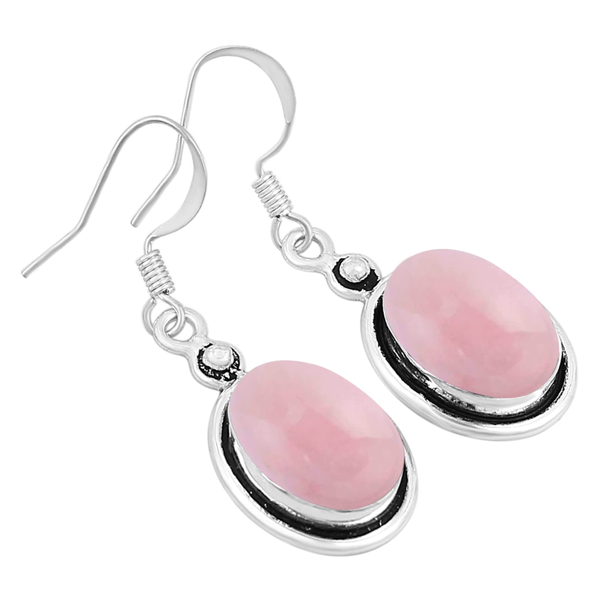 • Featured/Specifications Dimension of Earrings : 28mm X 12mm| Metal: Solid 925 Sterling Silver (925/1000) | Finish: High Polish | Stone: Natural Pink Opal, | Stone Size: 10x14mm Oval