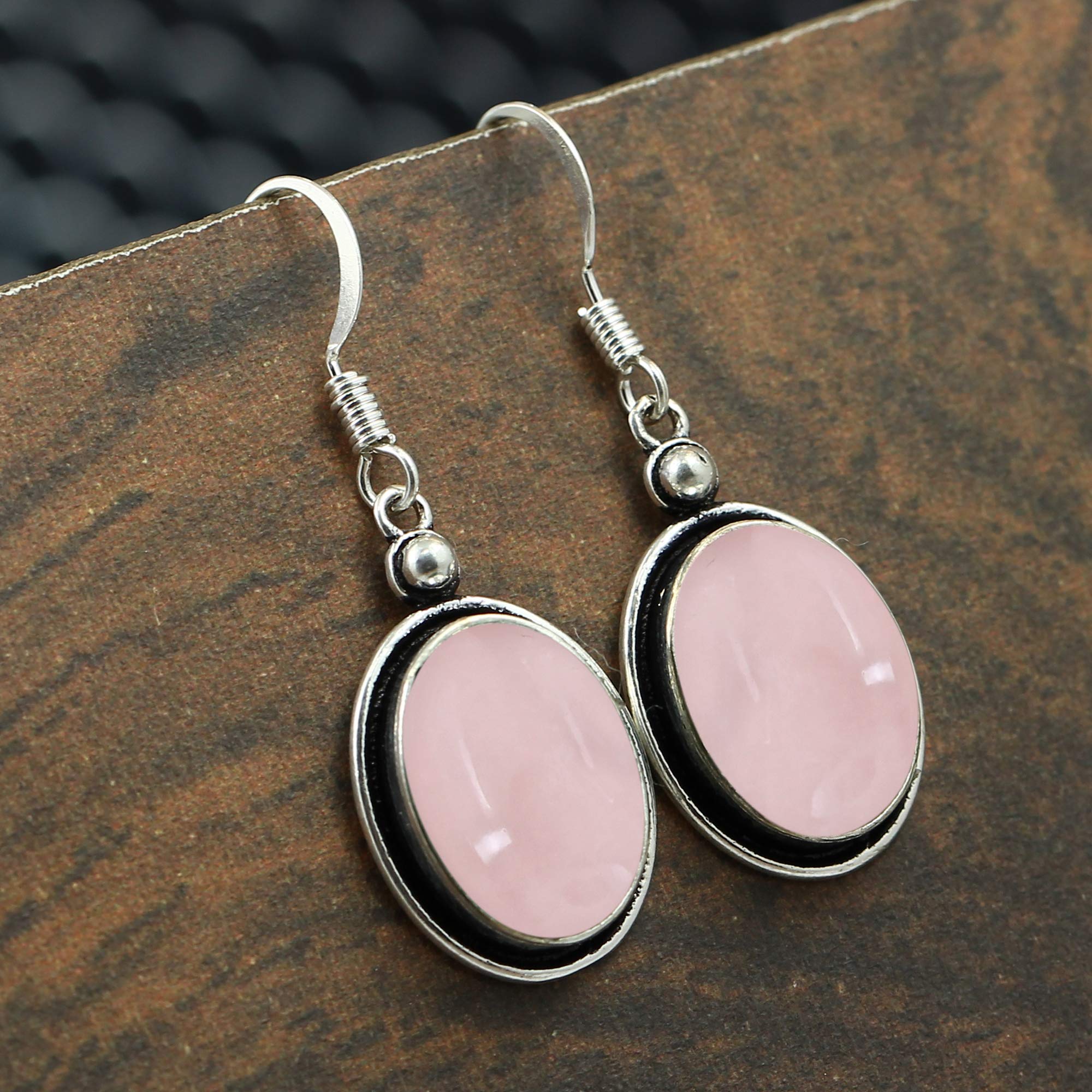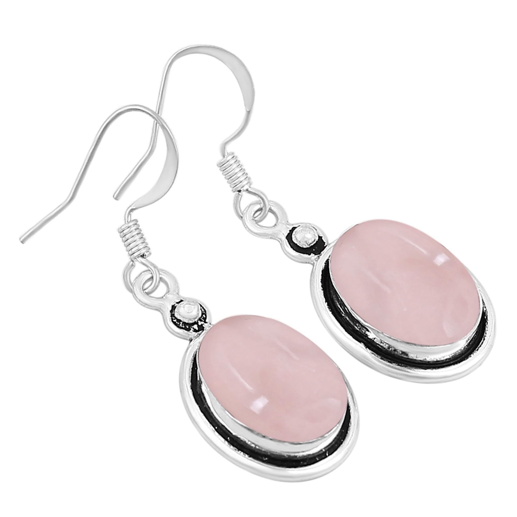 • Featured/Specifications Dimension of Earrings : 28mm X 12mm| Metal: Solid 925 Sterling Silver (925/1000) | Finish: High Polish | Stone: Natural Rose Quartz, | Stone Size: 10x14mm Oval