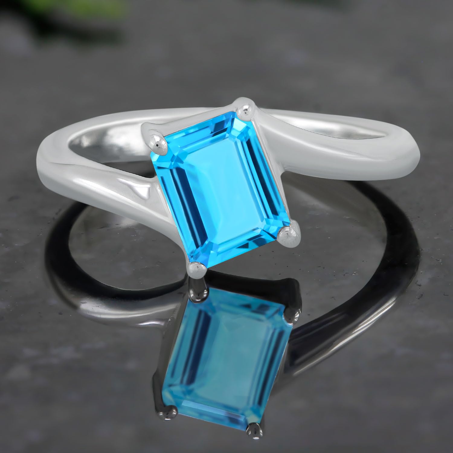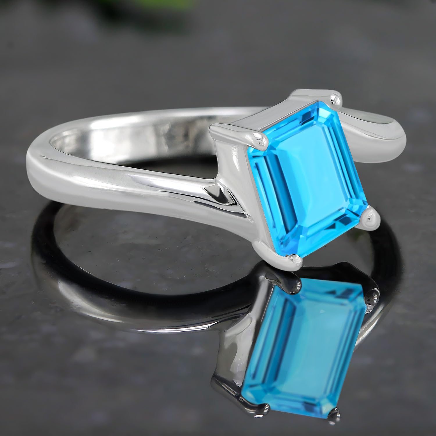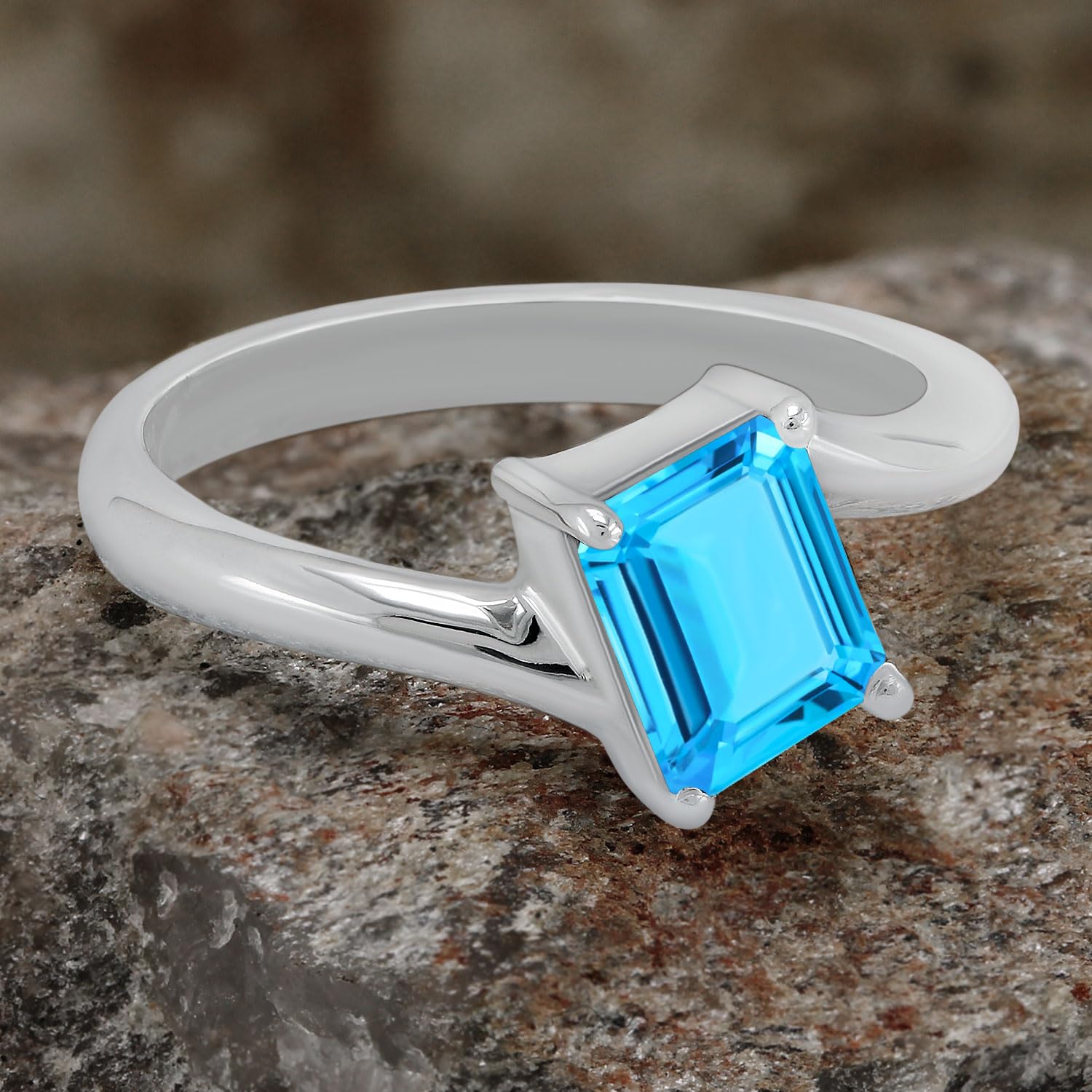 • Featured/Specifications Metal: Solid 925 Sterling Silver (925/1000) | Finish: High Polish | Stone: Natural Swiss Blue Topaz, | Stone Size: 6x8mm Octagon