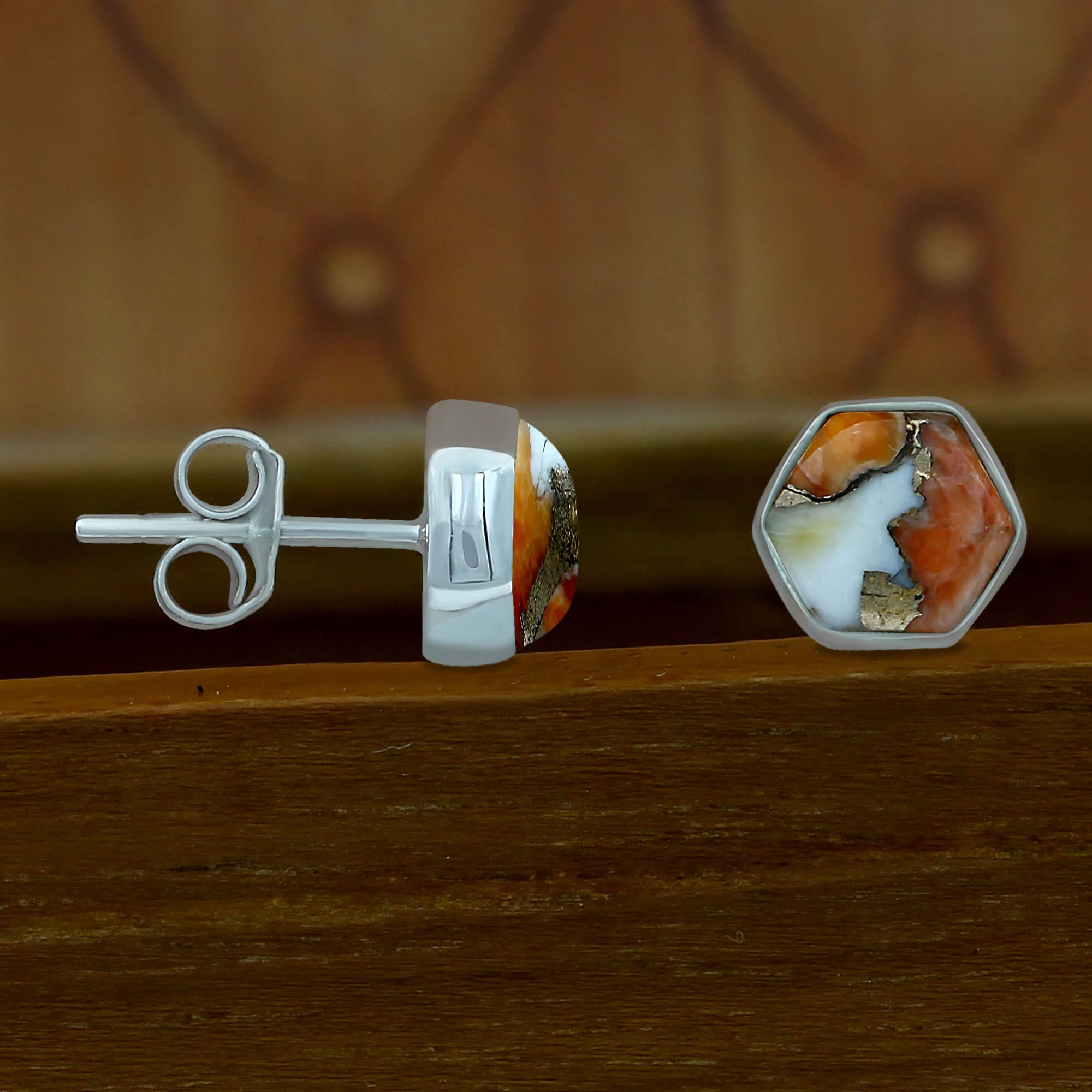 • Featured/Specifications Dimension of Earrings: 20mm x 11mm| Metal: Solid 925 Sterling Silver (925/1000) | Finish: High Polish | Stone: Oyster Copper Turquoise, | Stone Shape: Hexagon