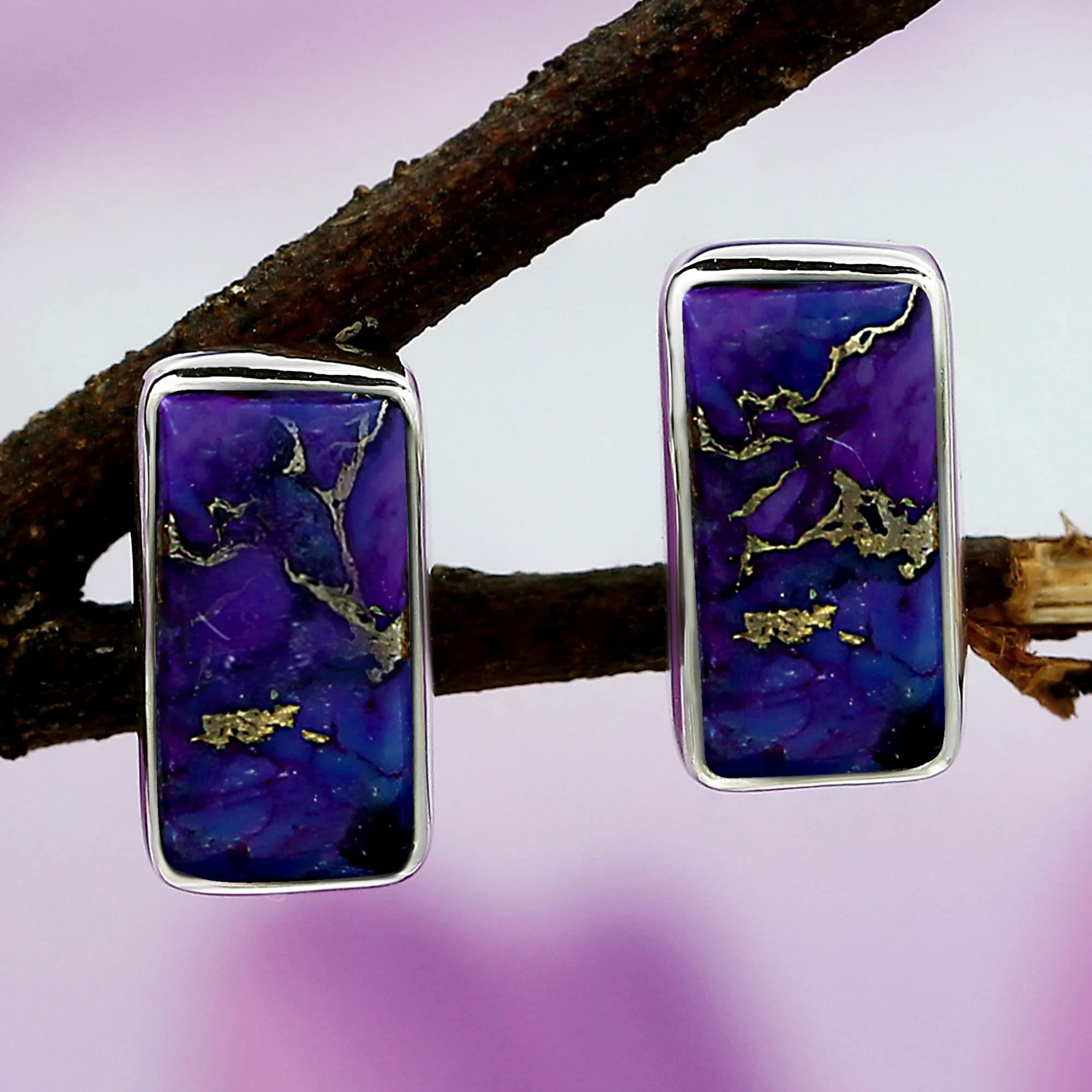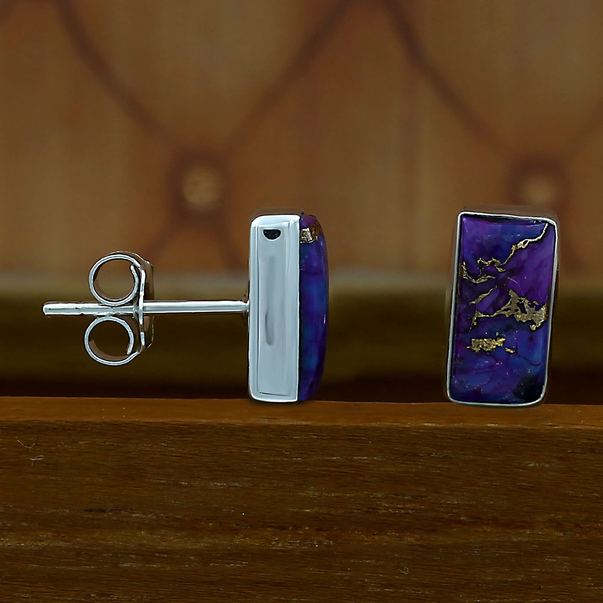• Featured/Specifications Dimension of Earrings: 20mm x 11mm| Metal: Solid 925 Sterling Silver (925/1000) | Finish: High Polish | Stone: Purple Copper Turquoise, | Stone Shape: Rectangle